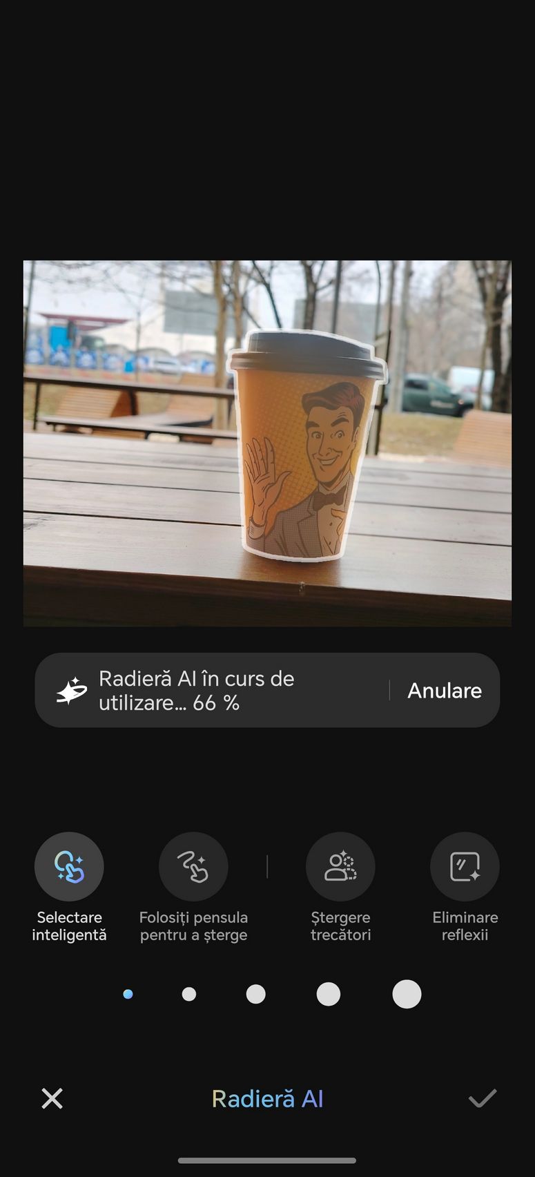 În testul meu, AI Eraser și Magic Text sunt cele mai utile. Am şters oameni din parc în poze şi am extras un număr de telefon dintr-o fotografie.