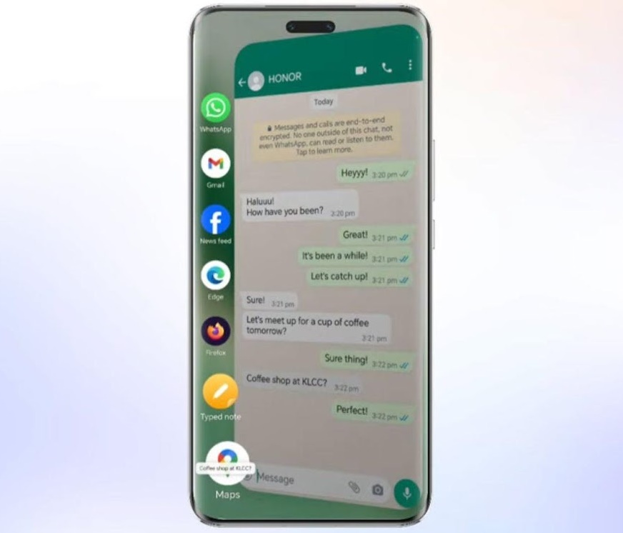 Intenţia ta devine acţiune şi scade numărul de paşi necesari. E vorba despre înţelegerea semantică şi contextuala a textului şi pozelor pe care AI-ul de pe telefonul HONOR le are în faţă. Suportă 100 de aplicaţii importante la nivel global. Puteţi să vă gândiţi că la un soi de majordom digital care va ajuta, un asistent dincolo de percepţia clasică a asistentului virtual.