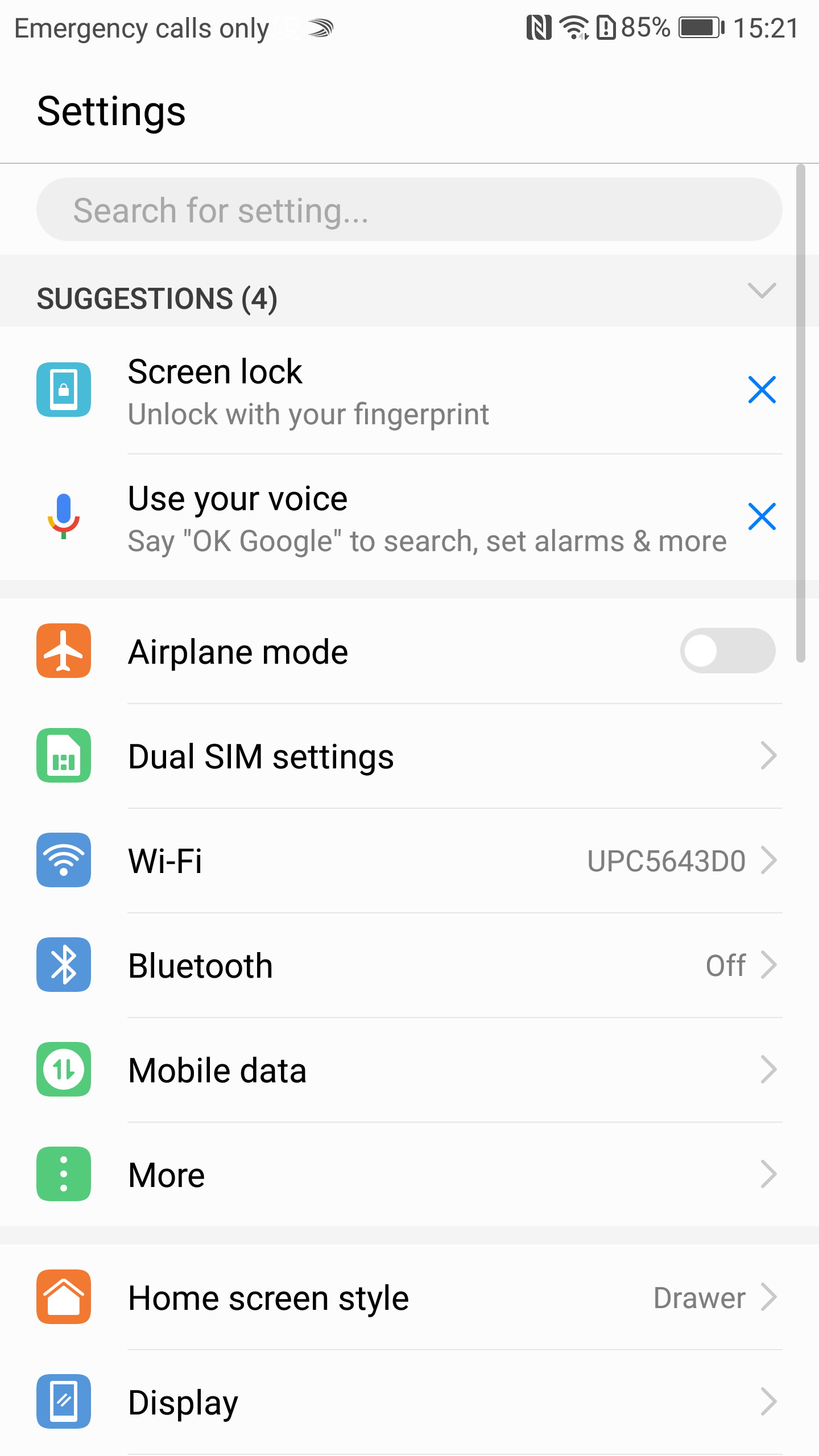 Multitasking-ul e pe bază de carusel şi avem şi opţiune split screen. Dacă ţinem apăsat pe homescreen accesăm zona de personalizare a interfeţei, care include widget-uri, wallpaper-uri, tranziţii şi setări speciale. Observ un upgrade al calităţii şi nivelului rezoluţiei iconurilor la fiecare release EMUI, ceea ce trebuie apreciat. Porţiunea dropdown include notificări şi Quick Settings, iar trecând la setări alegem aici stilul homescreen-ului, avem opţiuni pentru butoanele de navigare şi am ajuns şi la scannerul de amprente.