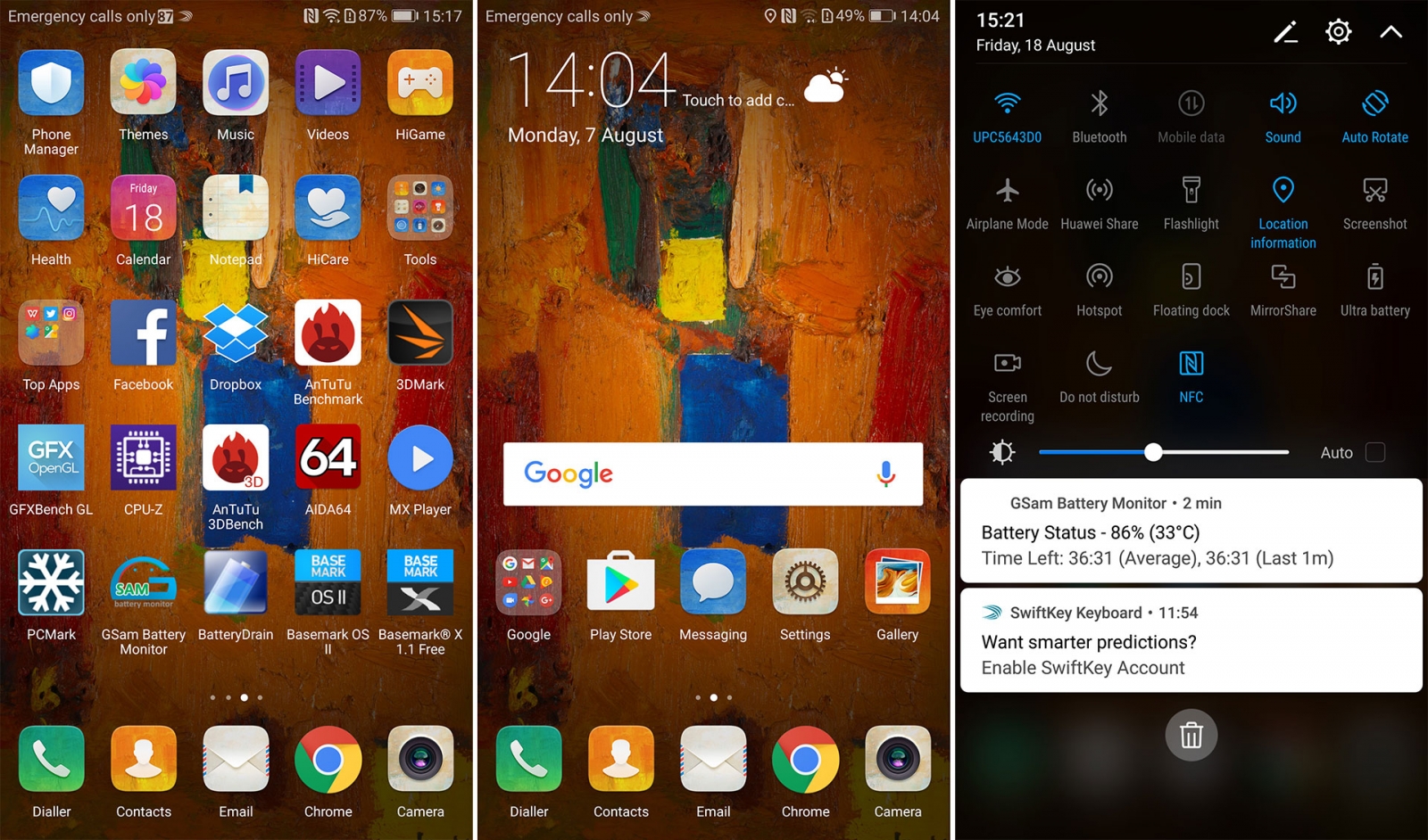 Primim câte un wallpaper diferit la fiecare activare a ecranului în lockscreen, iar tot în lockscreen avem şi un panou de shortcut-uri activat cu un mic swipe în sus. Acela include shortcut către calculator, lanternă, cronometru sau alte funcţii de bază. Putem alege dacă utilizăm interfaţă cu app drawer sau fără, cu toate aplicaţiile pe homescreen, cum era până acum de fapt pe EMUI.