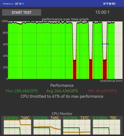 Din nou, chiar şi în cele mai intense benchmark-uri, temperatura nu s-a dus peste pragul de disconfort pentru degete. Fie că vorbim de CPU Throttle sau AnTuTu. GFXBench nu a rulat, ca să ştiţi.