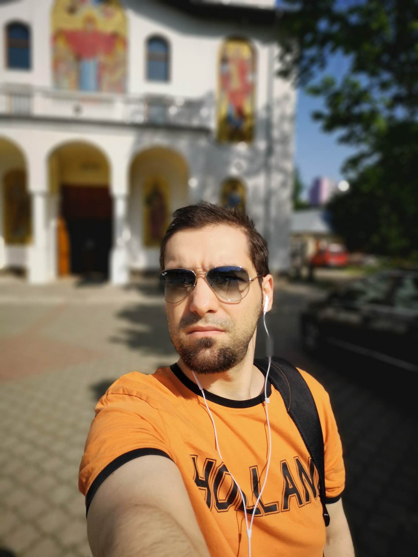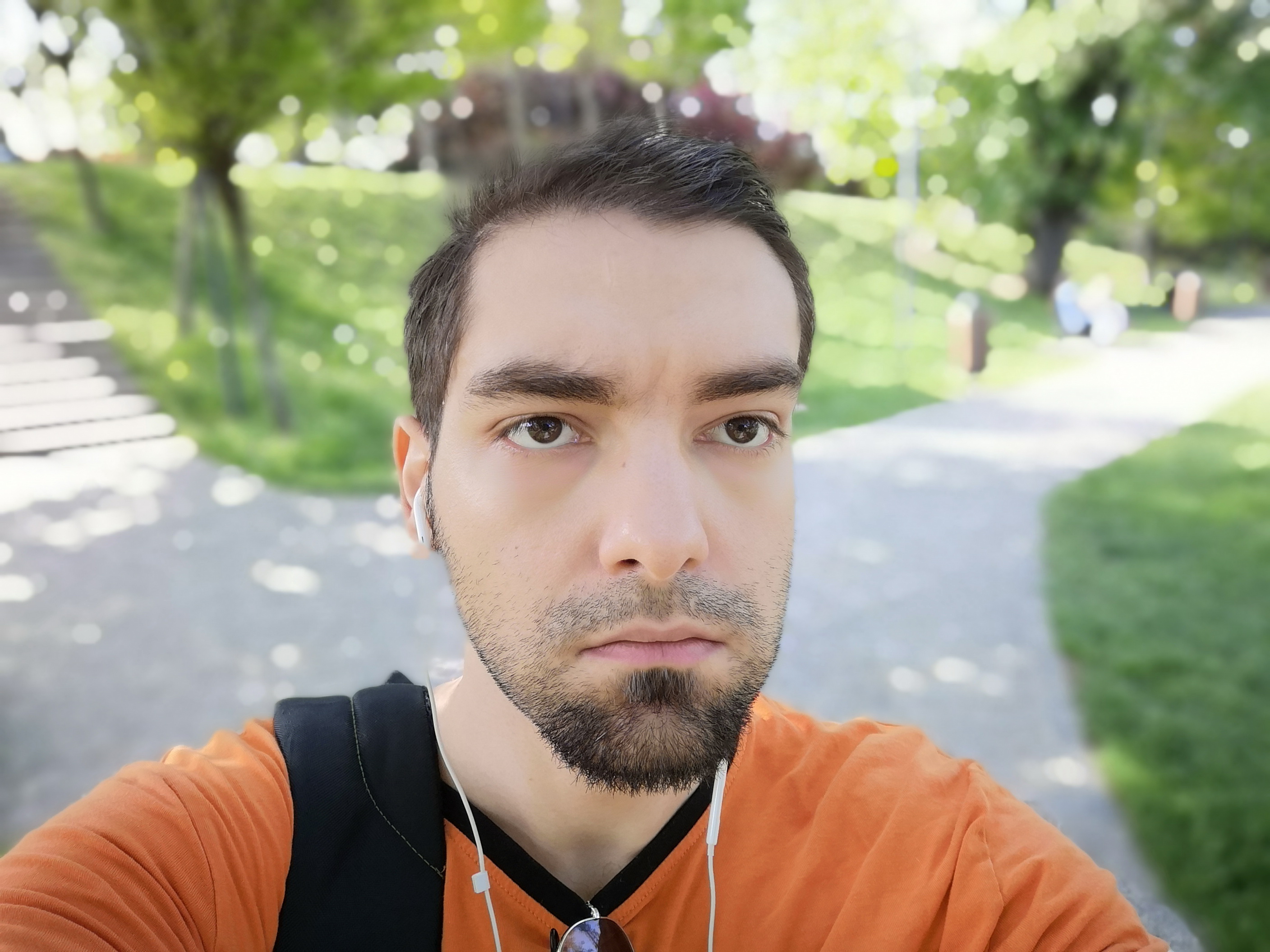 Am dat zoom in şi până la 10X şi tot am fost mulţumit de detalii. Avem o fotografie cu un corb cu un pufulete în clonţ, care e făcută la zoom hibrid 5X şi arăta extrem de clar. Focalizarea este excelentă, cu clase întregi peste ce oferea un Huawei P9 să zicem. Unul dintre cele mai bune Bokeh-uri de pe piaţa e prezent aici, iar selfie-urile Portrait sunt egale cu iPhone X fără îndoială, scoţând subiectul în evidenţă perfect.