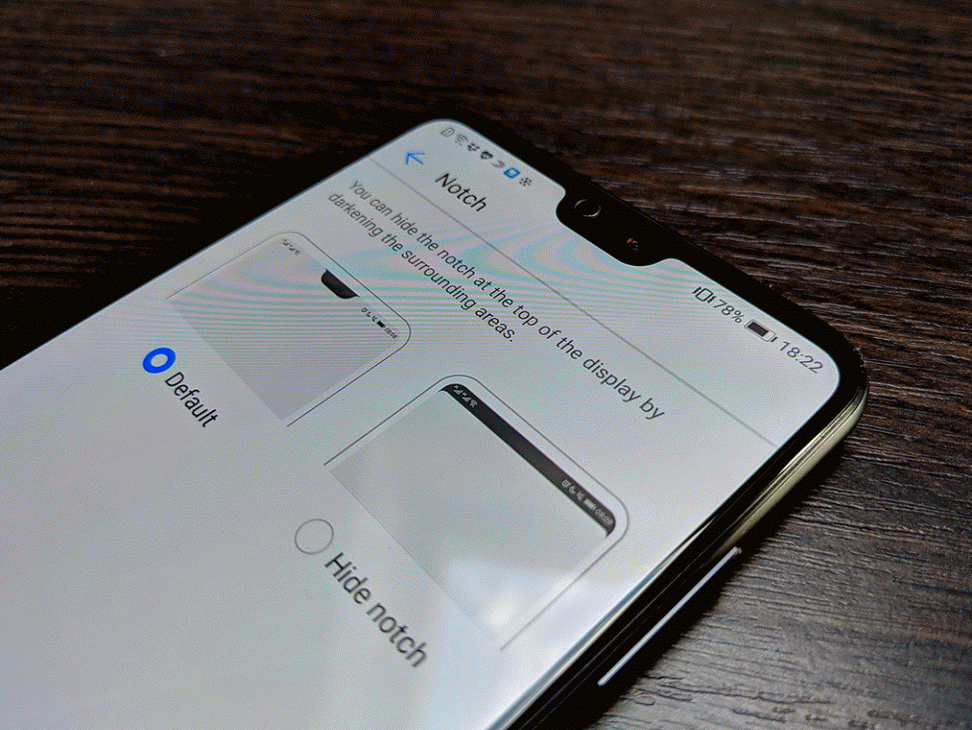 Totul se datorează unui panou AMOLED de 6.1 inch, cu rezoluţie de 2240 x 1080 pixeli şi aspect 18.7:9. Are densitate de 408 ppi, afişează 16.7 milioane de culori şi sincer să fiu decupajul/bretonul nu m-a deranjat deloc. E mult mai discret decât pe iPhone X sau Huawei P20 Lite, la drept vorbind. Şi apropo puteţi ascunde acel breton, făcând zonele care îl flanchează să afişeze un fundal negru şi mascând decupajul.