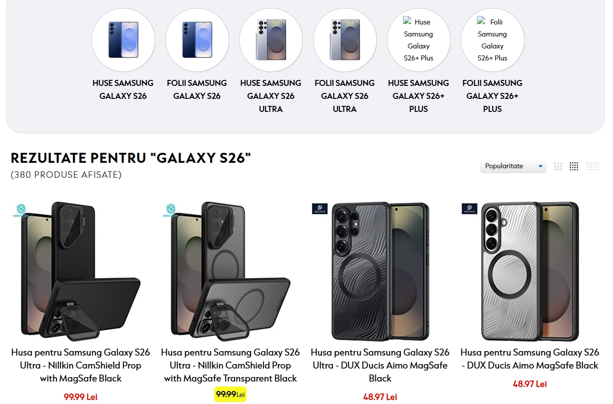 Iată link-uri către toate husele de S26, în funcție de modelul pe care vrei să îl cumperi: