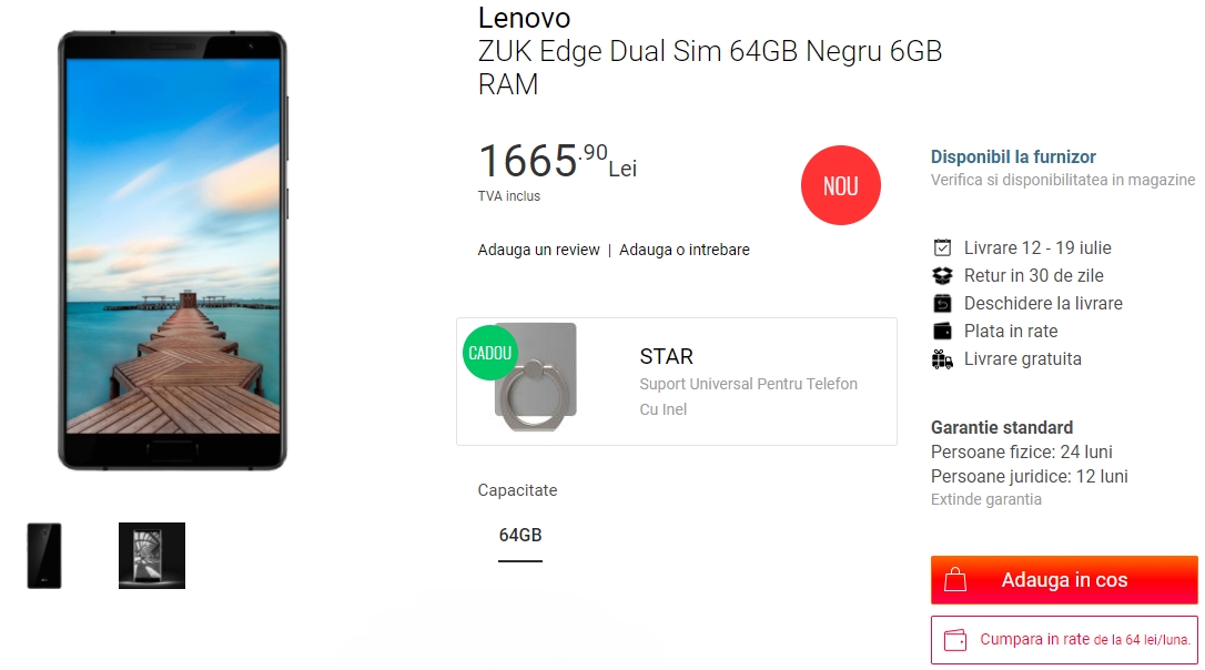 Descoperim astăzi o ofertă tare atractivă la QuickMobile, retailer ce comercializează smartphone-ul Lenovo ZUK Edge la prețul de doar 1.665 lei. Pentru această sumă plătită beneficiem de un smartphone cu display aproape edge-to-edge și cu 6 GB memorie RAM la bord pentru un sistem de multitasking eficient. Avem mai multe puncte forte pe care le veți afla în rândurile următoare.