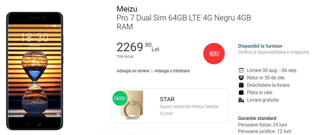 În spate se mai află și camera duală de 12 megapixeli cu PDAF și deschidere f/2.0, în vreme ce pentru captura selfie avem la dispoziție un senzor de 16 megapixeli cu aceeași diafragmă f/2.0. Meizu Pro 7 aduce jack audio, port USB Type-C, scanner de amprente și o baterie de 3000 mAh cu suport pentru încărcare rapidă mCharge 3.0.