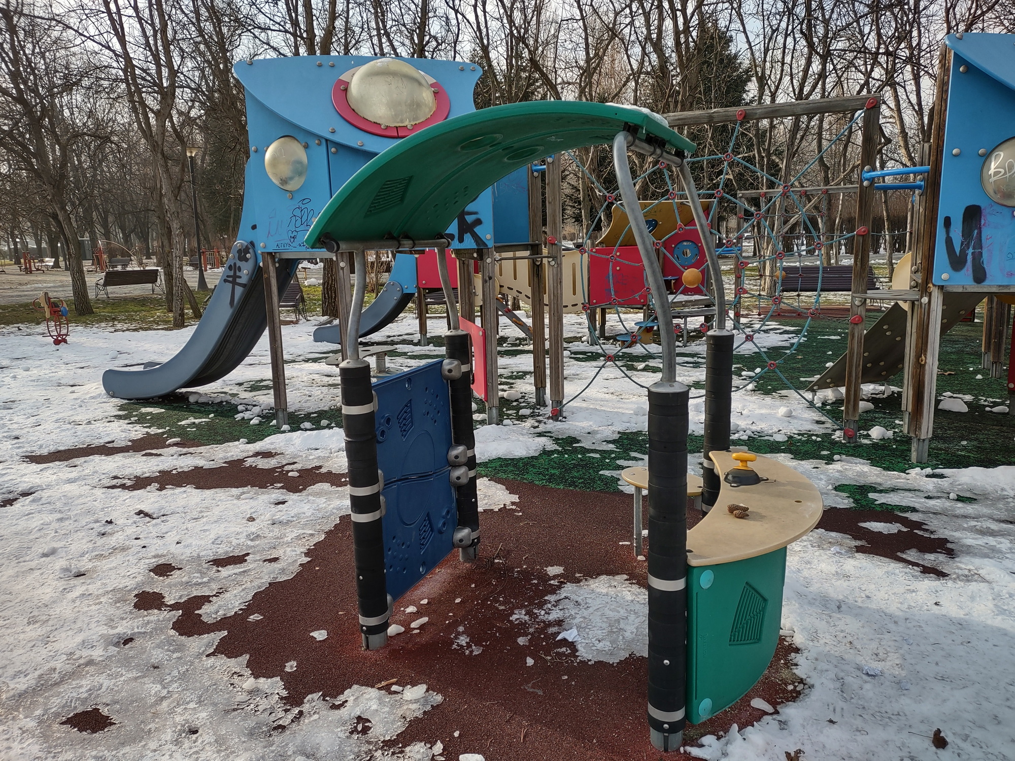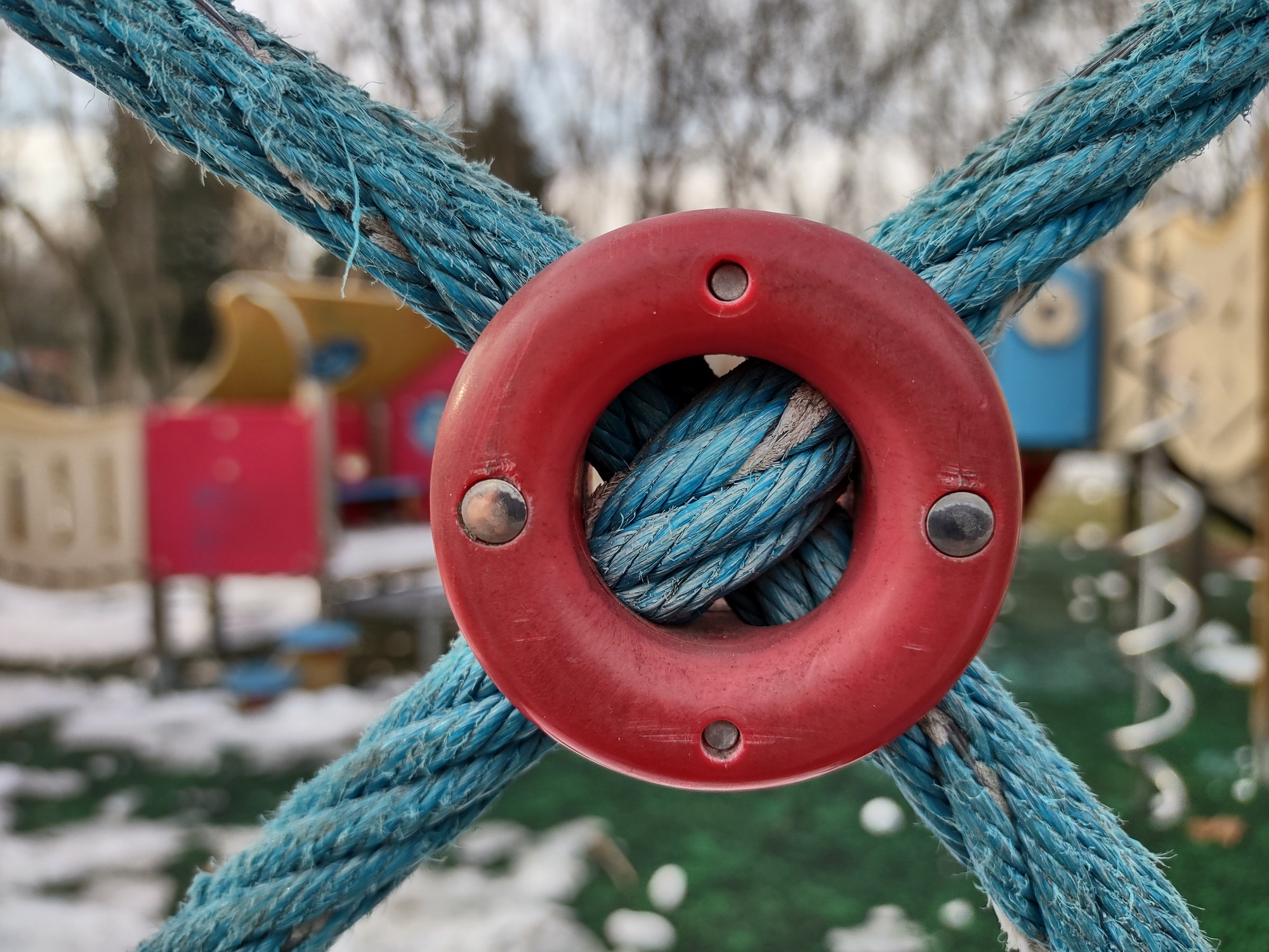 A ieşit puţin şi soarele, cât să capturăm jucăriile colorate ale acelui părculeţ pentru copii. Verde corect, albastru corect, detalii suficiente la arbori în zona coroanei. Prefer closeup-urile acelor conuri parcă în varianta realizată de camera principală, nu cea Macro. Un reper în galerie e şi acel prim plan cu nodul de frânghii de la locul de joacă, cu blur aplicat natural. Detaliile fibrei textile sunt impresionante.