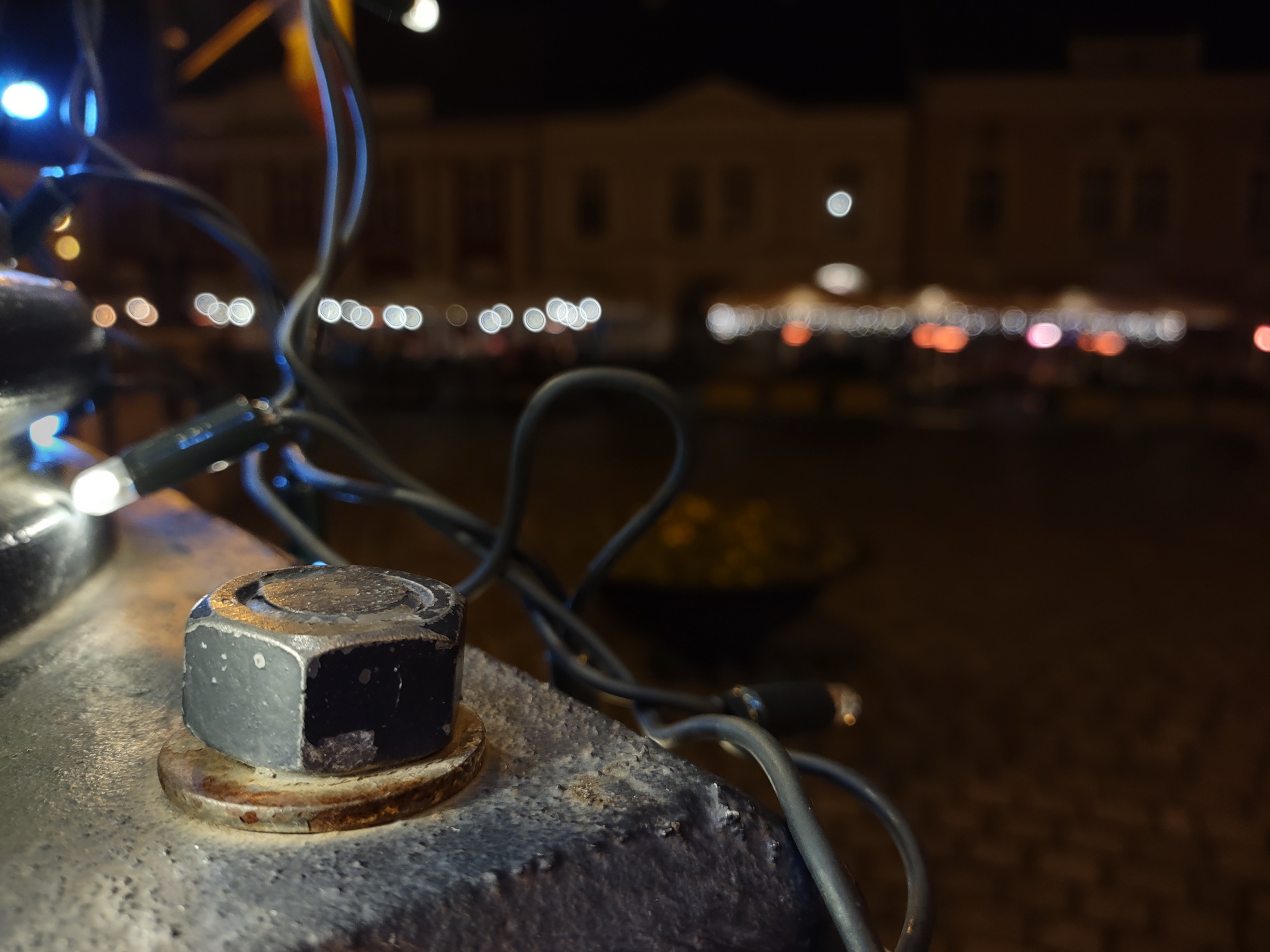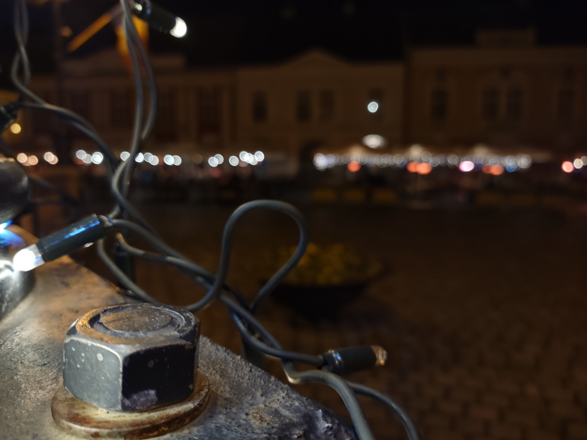 Filmarea nocturnă amplifică prea mult ghirlandele luminoase de sărbători, are mult zgomot şi nu se descurcă la zoom. E multă ceaţă şi neclaritate, nu poţi posta aşa ceva în social media. Doar cu o sursă de lumină de intensitate medie poţi eventual să păstrezi filmarea pentru tine.