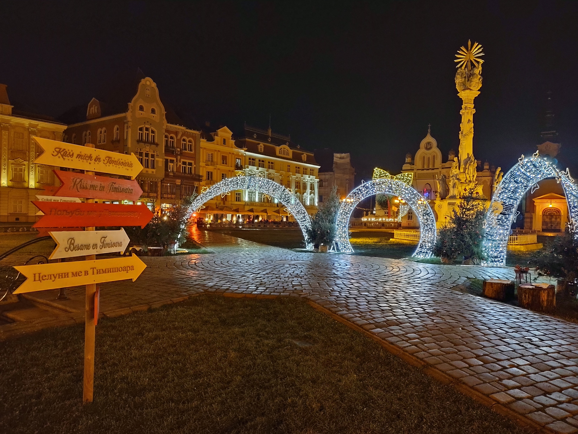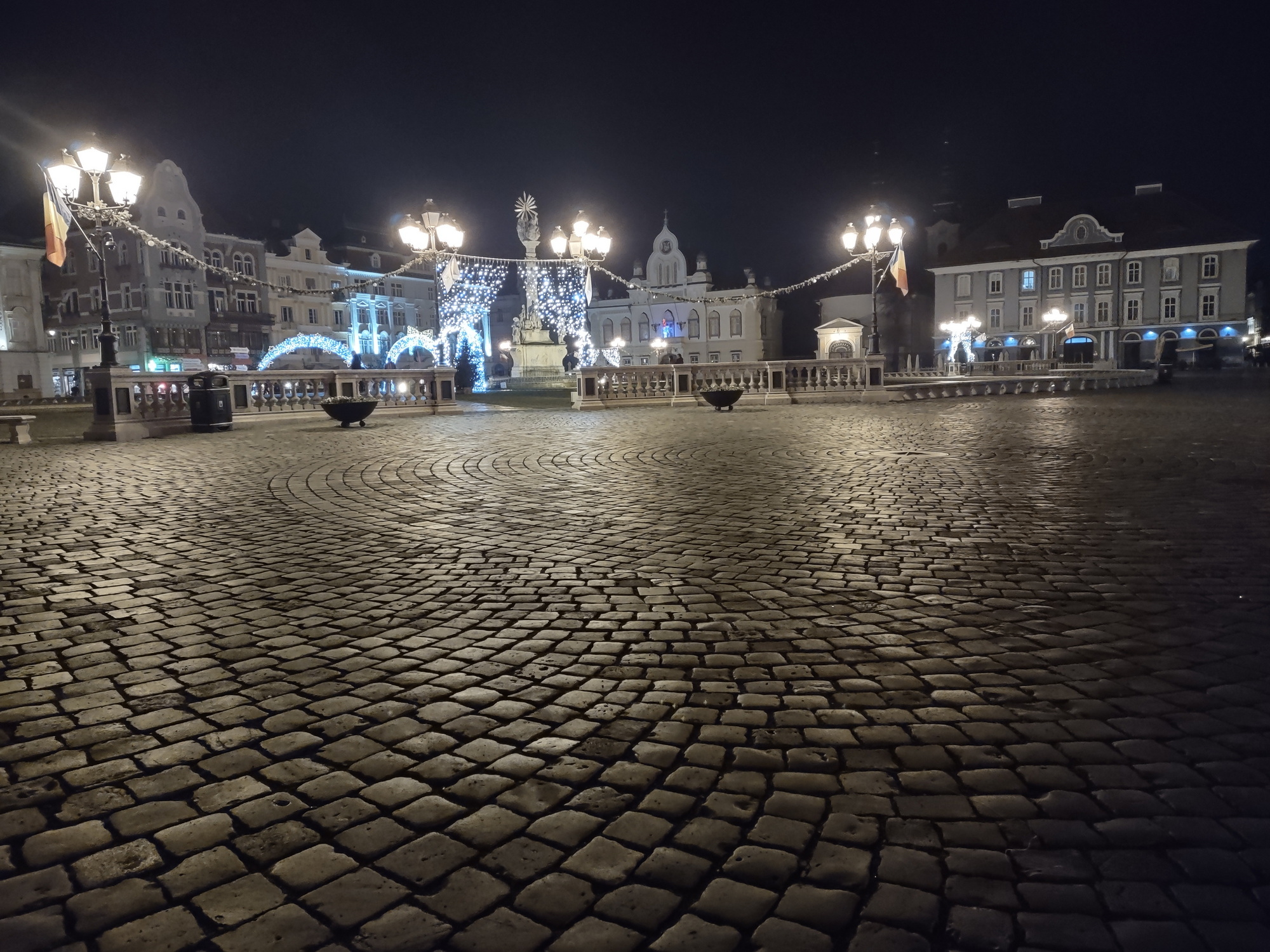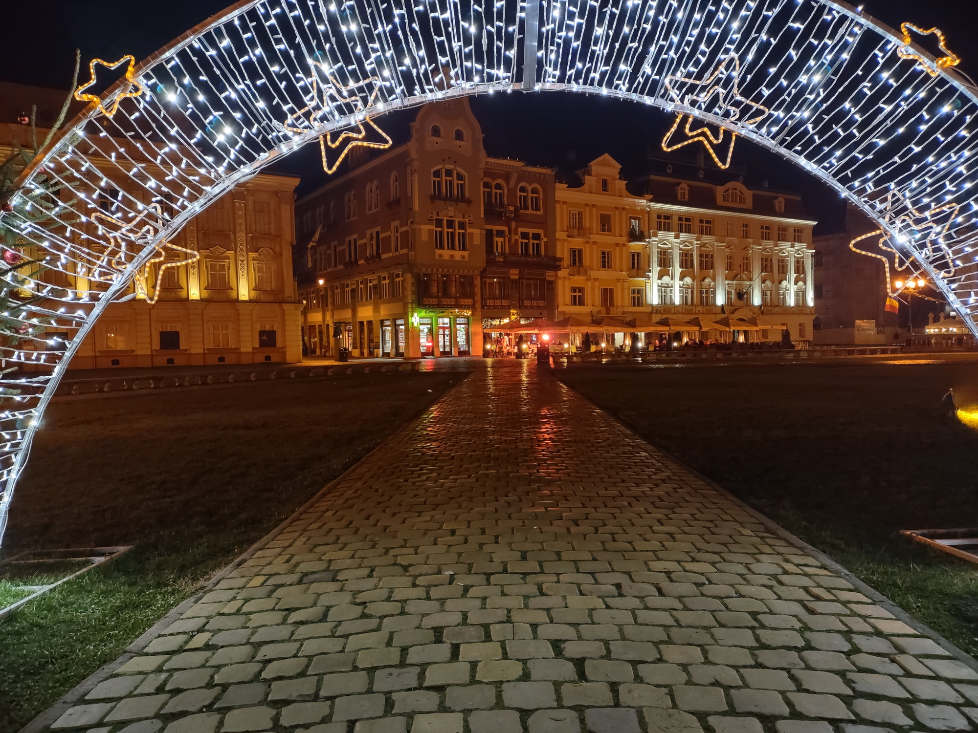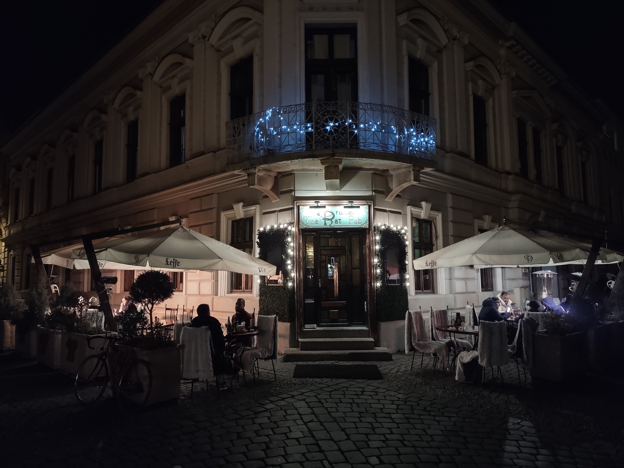Pentru captura foto nocturnă ne mutăm la Timişoara. Aici recomand să nu faceţi prea multe poze ultrawide, pentru că ies gri, întunecate, amplifica prea mult luminile şi au zgomot. Şi camera principală tinde să amplifice luminiţele de la terasele din Timişoara. Detaliile arată OK, dar la distanţă văd zgomot şi un soi de uşoara ceaţă peste imagine. Sunt şi poze cam albaştrii, iar Night Mode injectează prea multă luminozitate în cadru, făcându-l albicios. Mai luminos nu înseamnă şi mai clar!