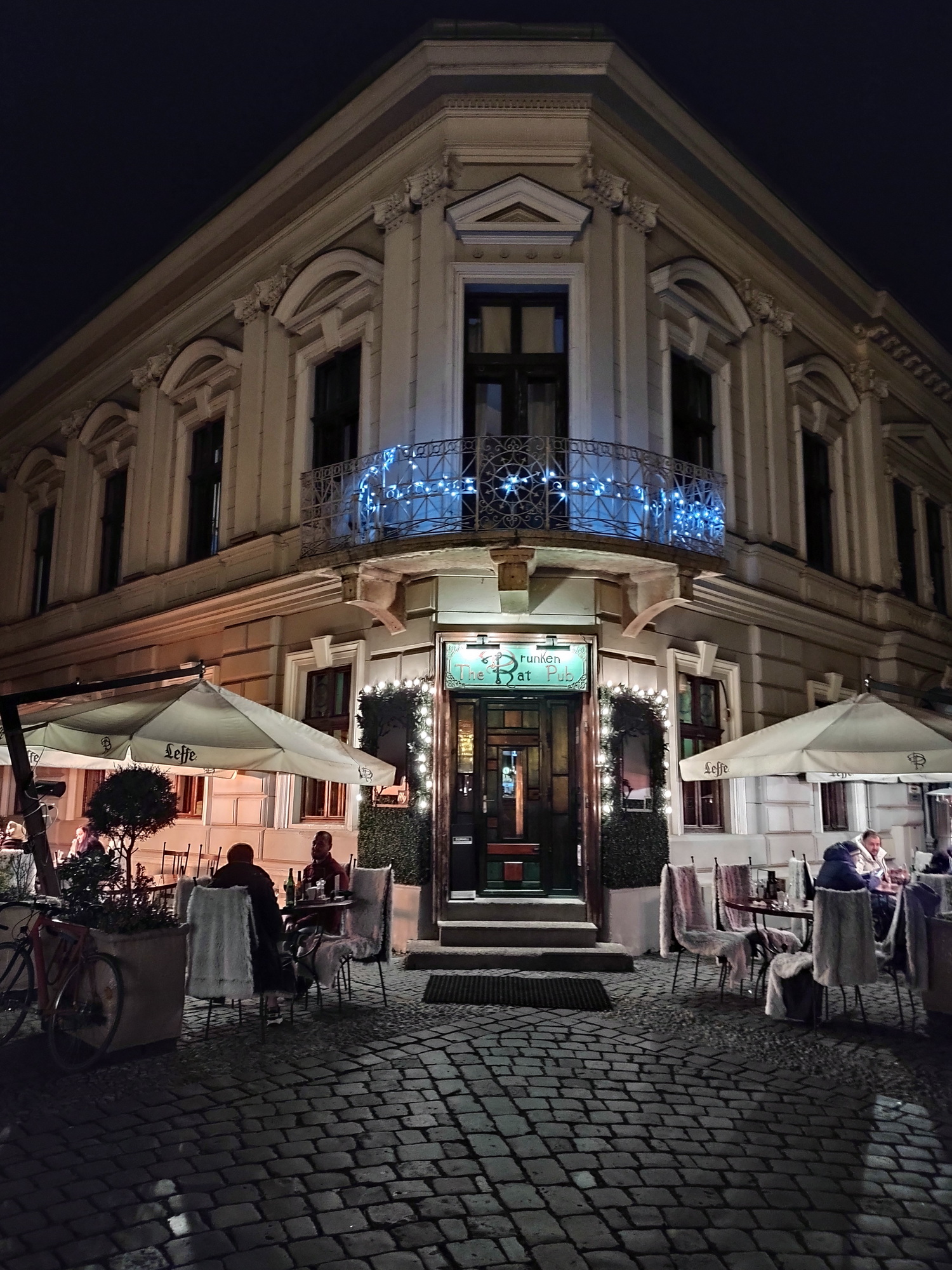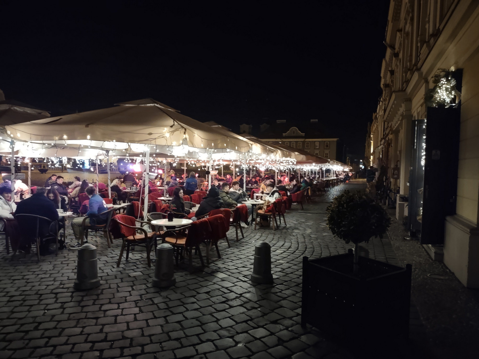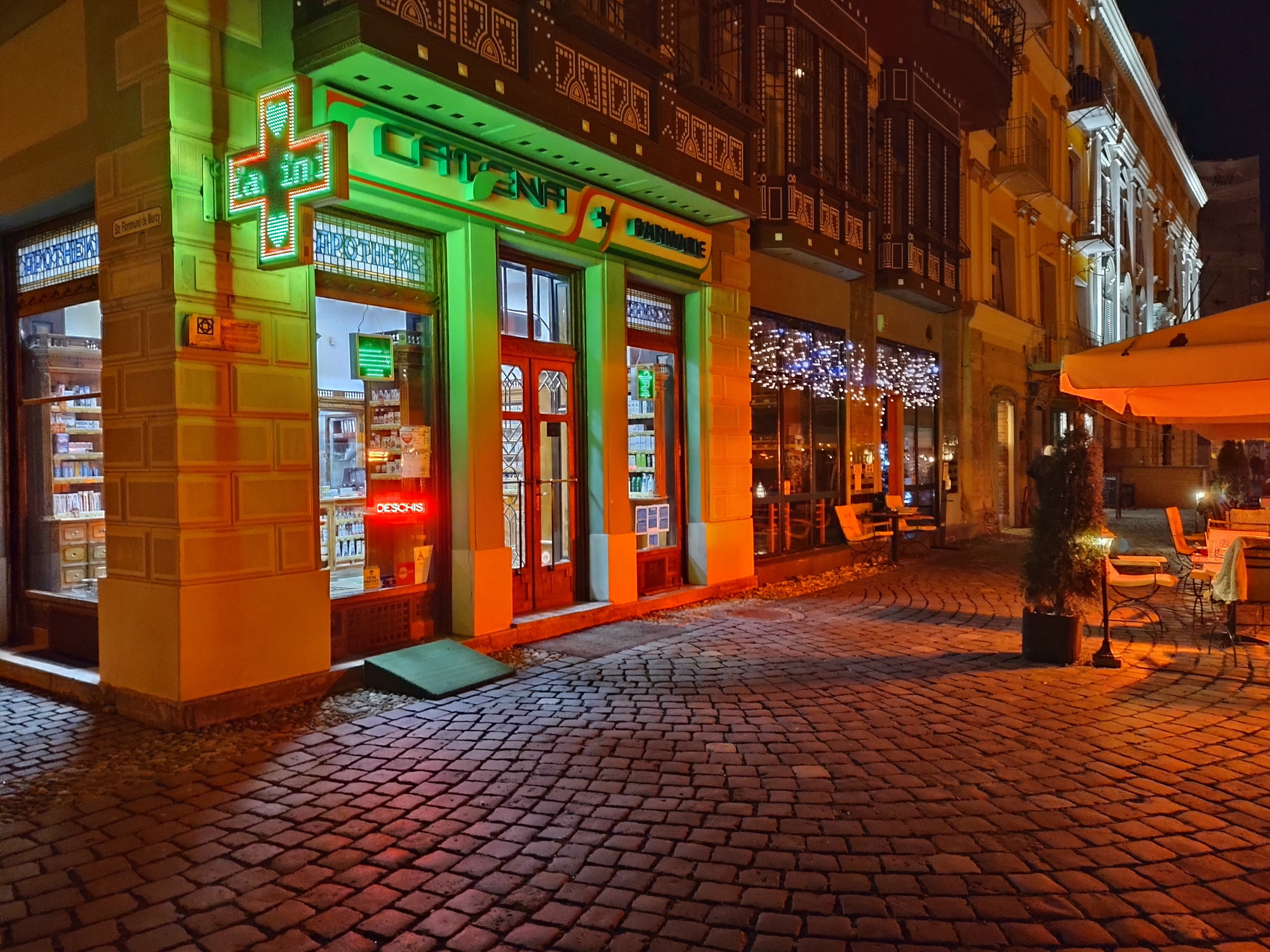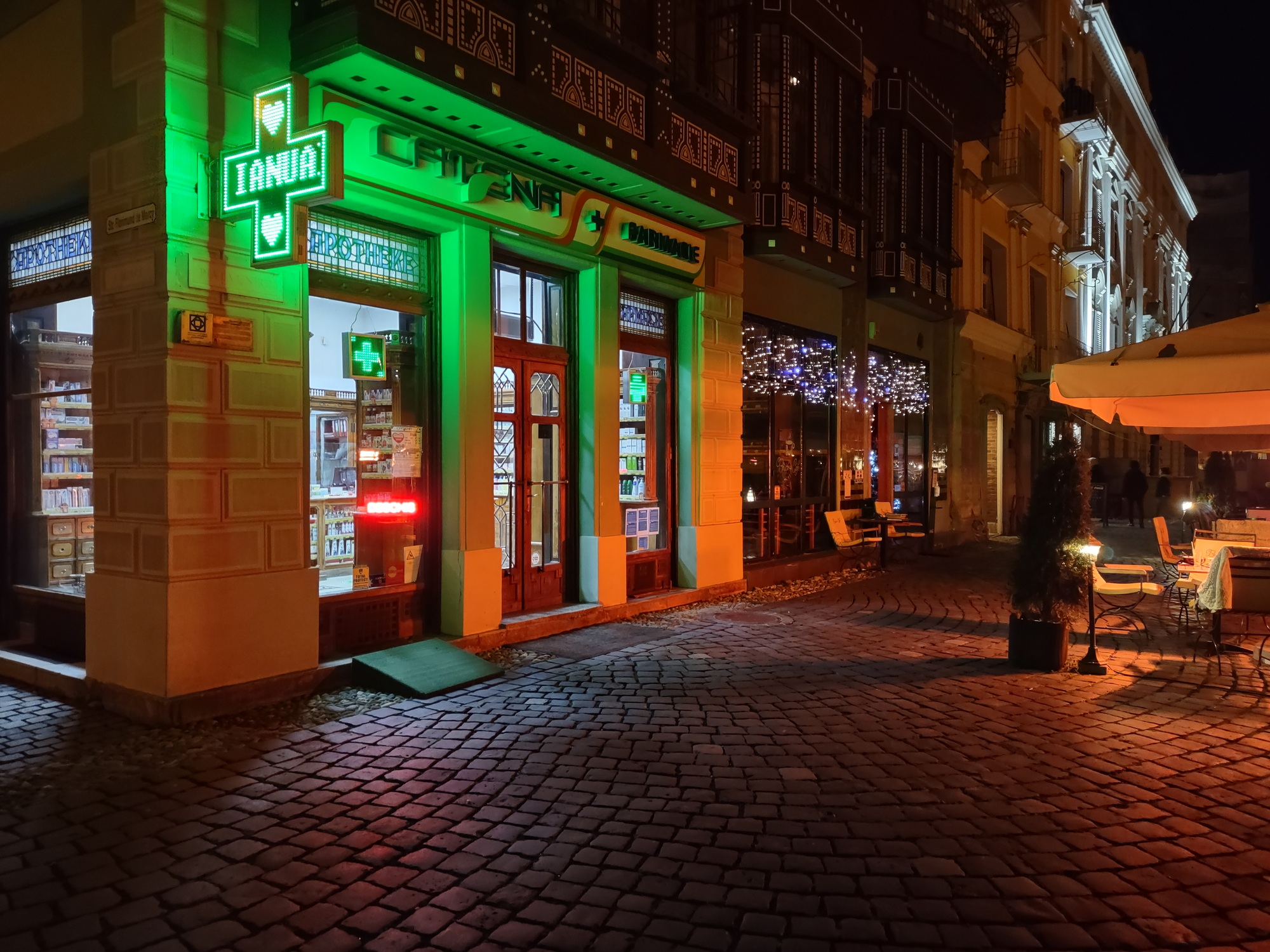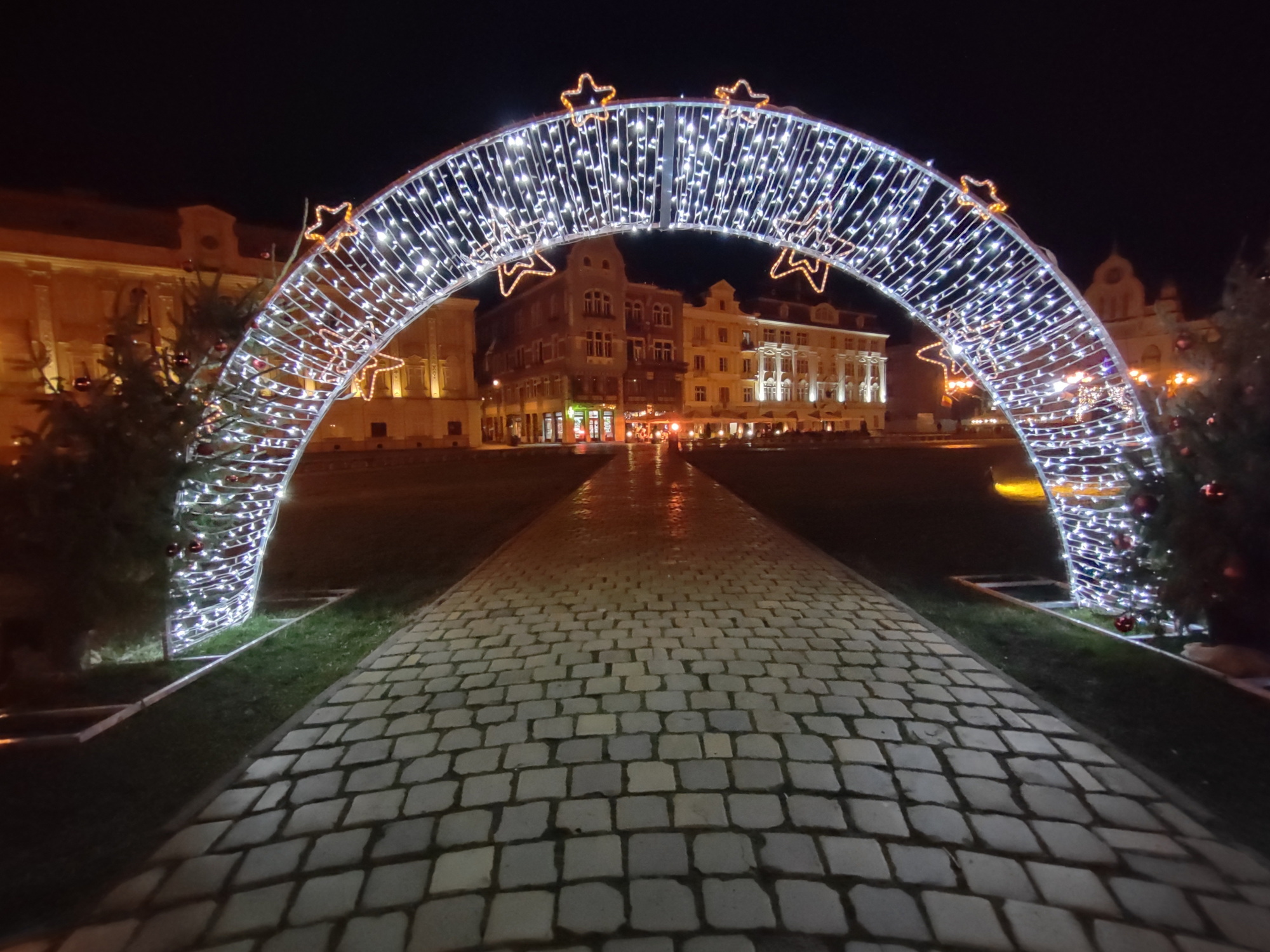 Pentru captura foto nocturnă ne mutăm la Timişoara. Aici recomand să nu faceţi prea multe poze ultrawide, pentru că ies gri, întunecate, amplifica prea mult luminile şi au zgomot. Şi camera principală tinde să amplifice luminiţele de la terasele din Timişoara. Detaliile arată OK, dar la distanţă văd zgomot şi un soi de uşoara ceaţă peste imagine. Sunt şi poze cam albaştrii, iar Night Mode injectează prea multă luminozitate în cadru, făcându-l albicios. Mai luminos nu înseamnă şi mai clar!