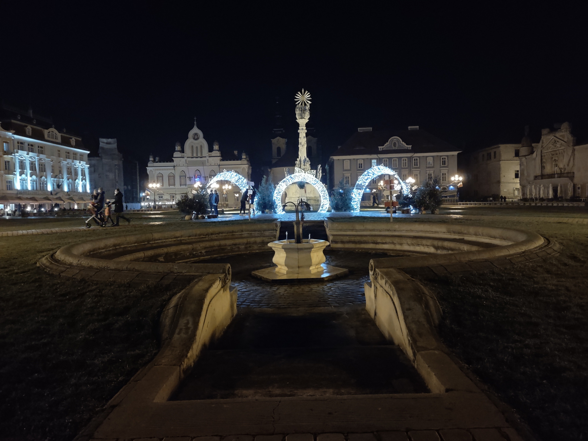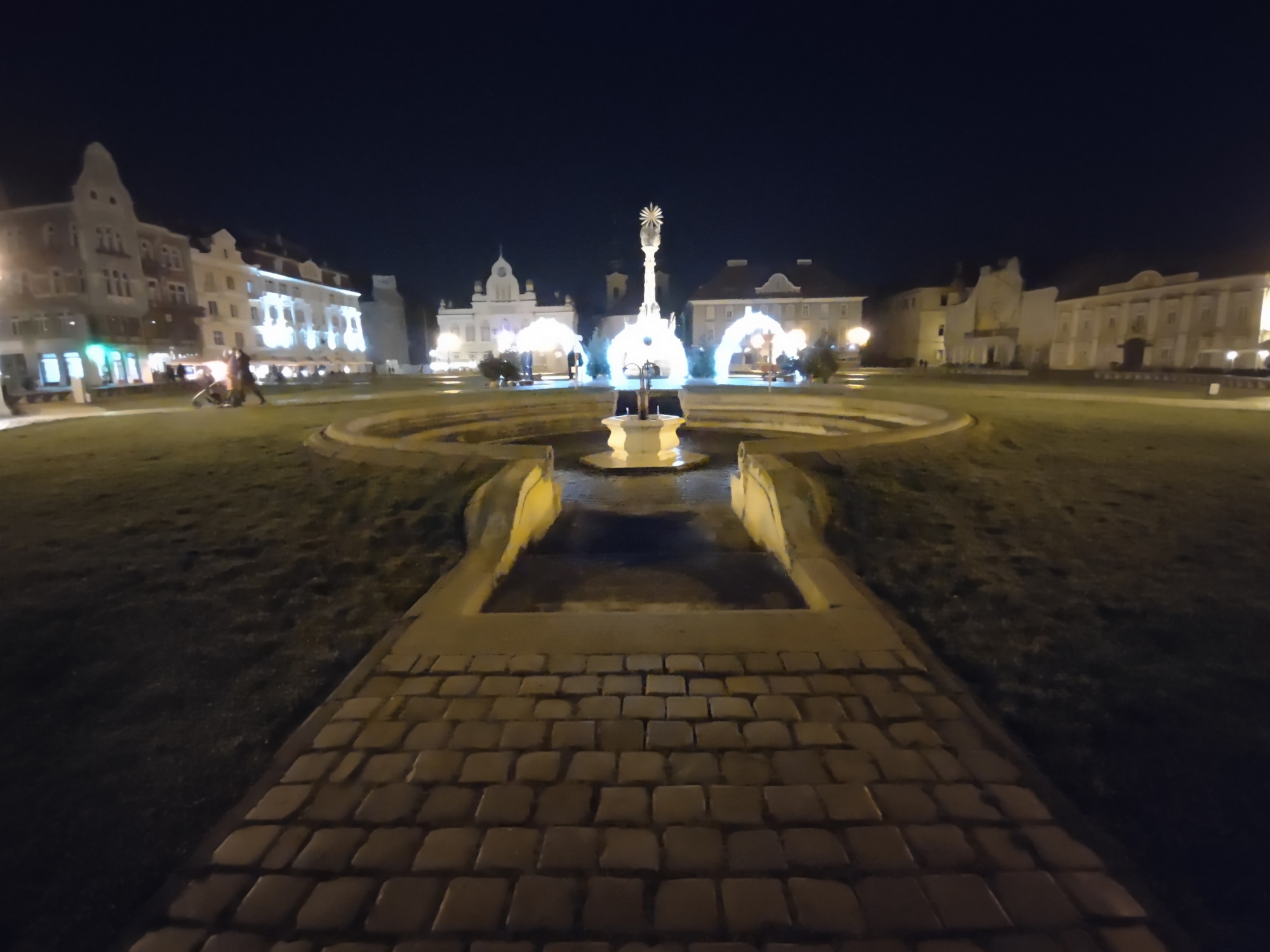 Abia pozele de la columna încep să arate ceva mai bine, cu acele arcade în formă de globuri de Crăciun corect redate, mai ales cu Night Mode. Poza mea preferată e cea de mai sus, care vine imediat după una întunecată şi scoate la lumina cele două cupole ale bisericii, ce aproape nu se văd în cadrul precedent. Capturile Catena sunt un pic mai întunecate decât de obicei şi injectate cu nuanţa roşie. E o cameră cel mult OK la captura nocturnă, dar am văzut Moto descurcându-se şi mai bine de atât.