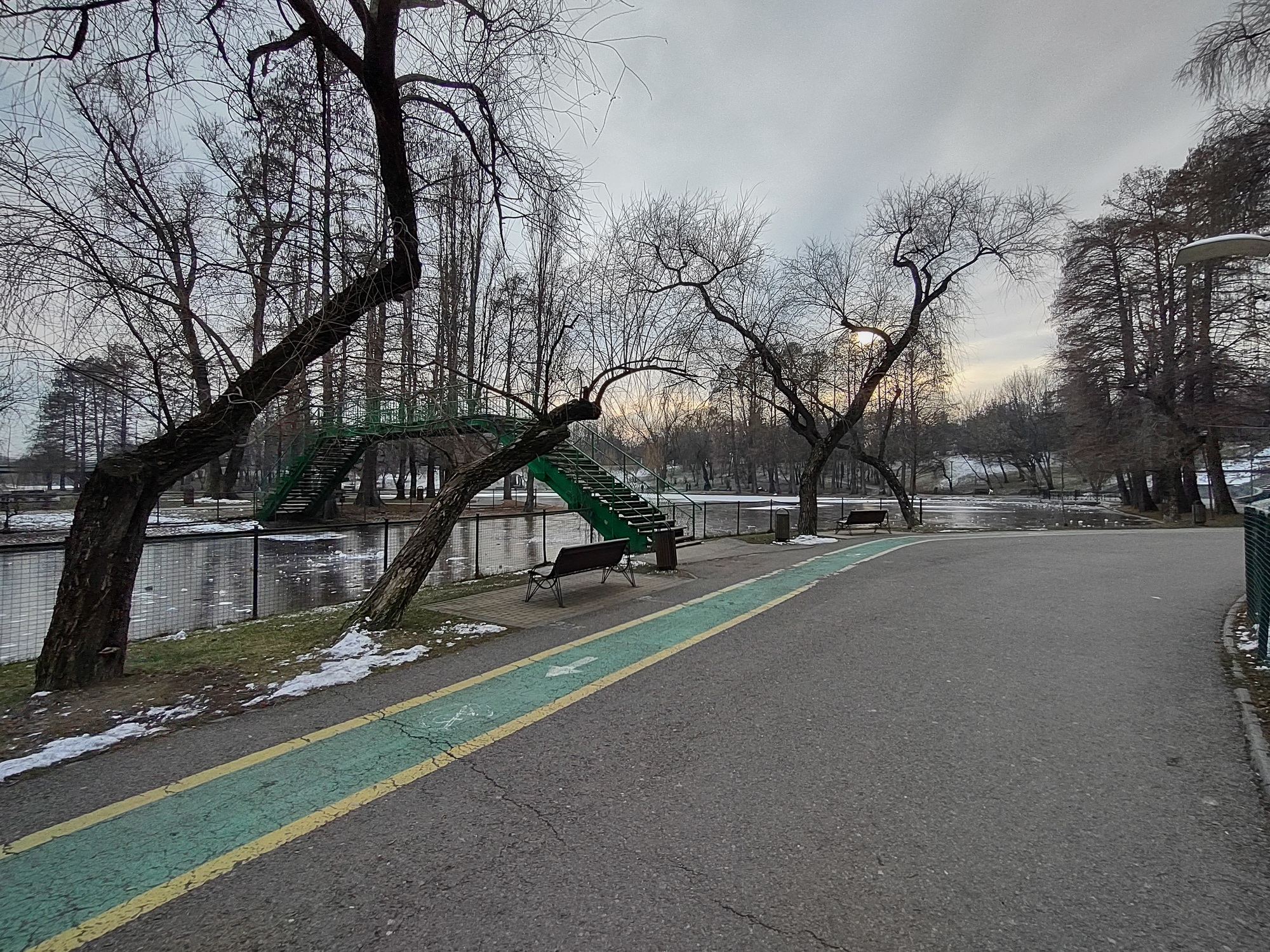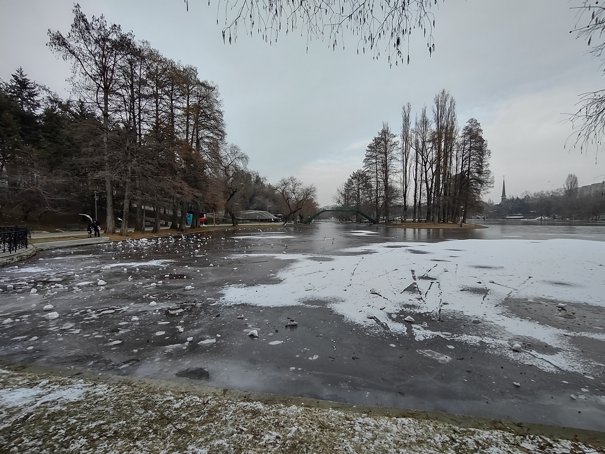 Pozele sunt realizate într-o zi mai întunecată de 19 ianuarie, când încă era zăpadă şi gheaţă pe jos şi cerul era înnegurat. Culorile sunt mai degrabă reci, peisajele gri, dar camera principală stă bine la claritate şi detalii. Cea ultrawide pierde detalii la distanţă şi pe lateral, dar păstrează o nuanţă plăcută a cerului. Primul Macro cu bucată de gheaţă e cam neinspirat, cam gri, nu are suflet. Rezoluţia de 1600 x 1200 pixeli clar nu e flatanta. Al doilea Macro arată puțin mai bine şi am prins o reflexie drăguţă de lumină în vârful gheţii.