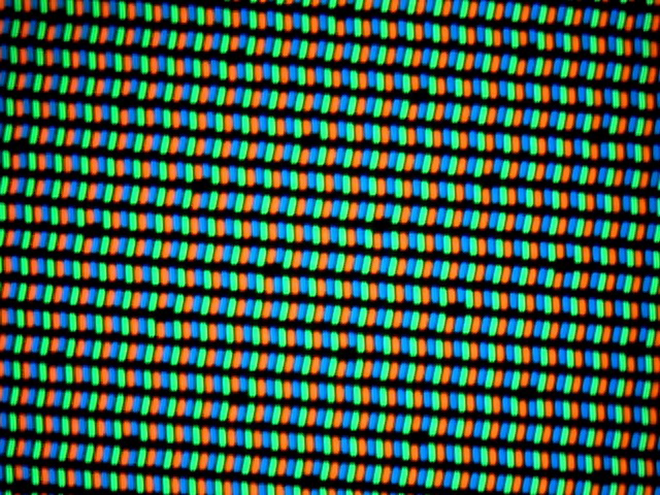 Are muchii groase, panoul e uşor curbat (2.5D), iar experienţa de vizualizare ne-a adus o luminozitate ridicată, unghiuri largi de vizualizare şi contrast solid în bătaia soarelui. Pe de altă parte am simţit că imaginea include prea mult alb (dacă e privit din lateral), un strat albicios, care face culorile să plească. Pixelii au aranjament RGB Stripes conform microscopului nostru.