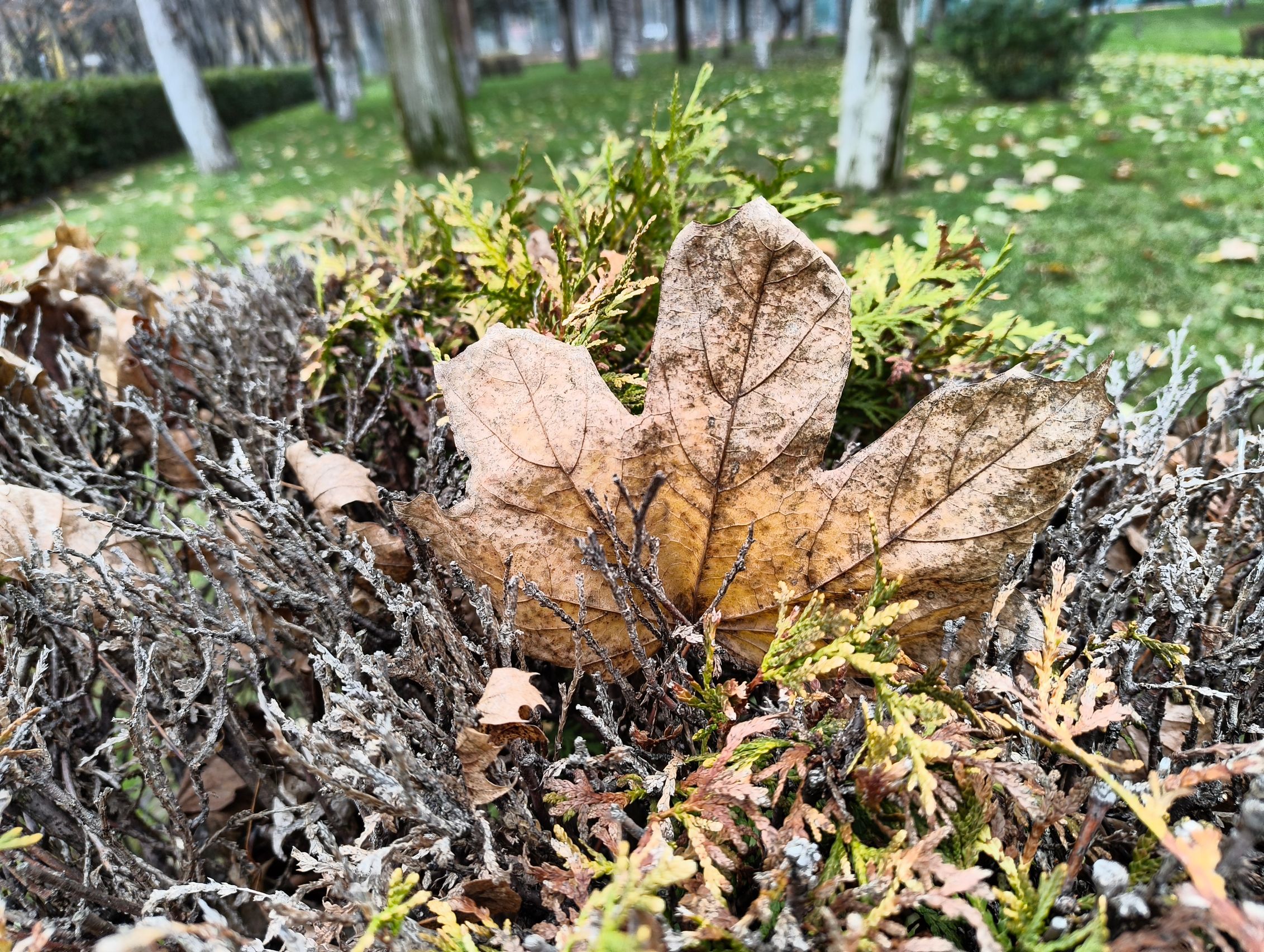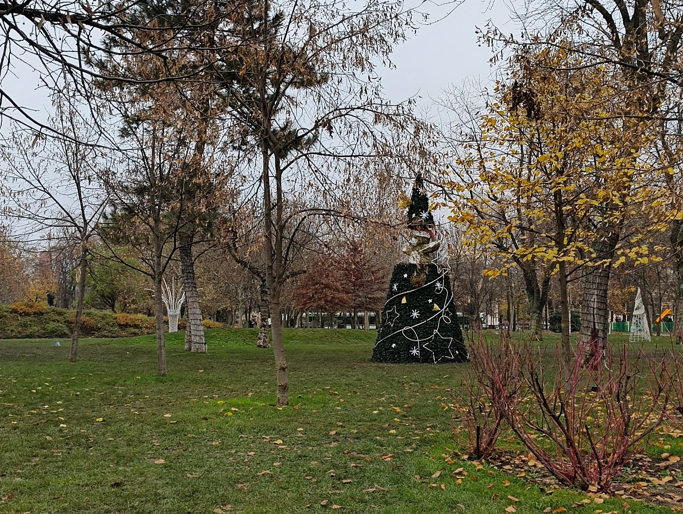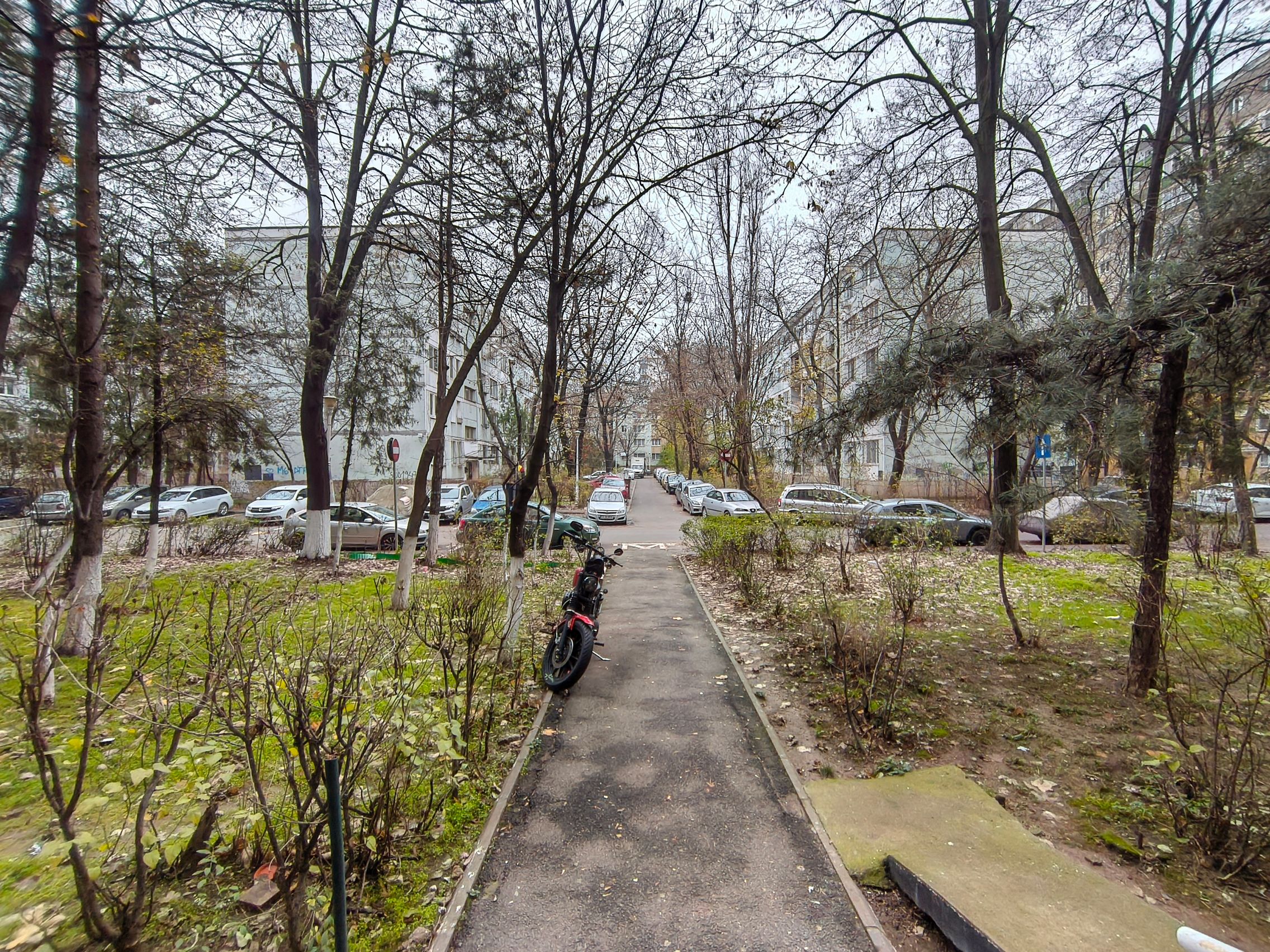 Pe timp de zi primul detaliu pe care l-am remarcat este că sunt diferențe de culoare între wide și ultra-wide, cu mai multă vibranță pentru vegetație pe ultra-wide, nuanțe nu tocmai demne de luna decembrie. Roșul fructelor de tip măceșe este pierdut în pixeli, iar macro-ul nu prea face față, cu o cameră de doar 2 mpx care pare pusă doar pentru a fi la număr. Ar fi fost bună una ultra-wide cu AF, dar..