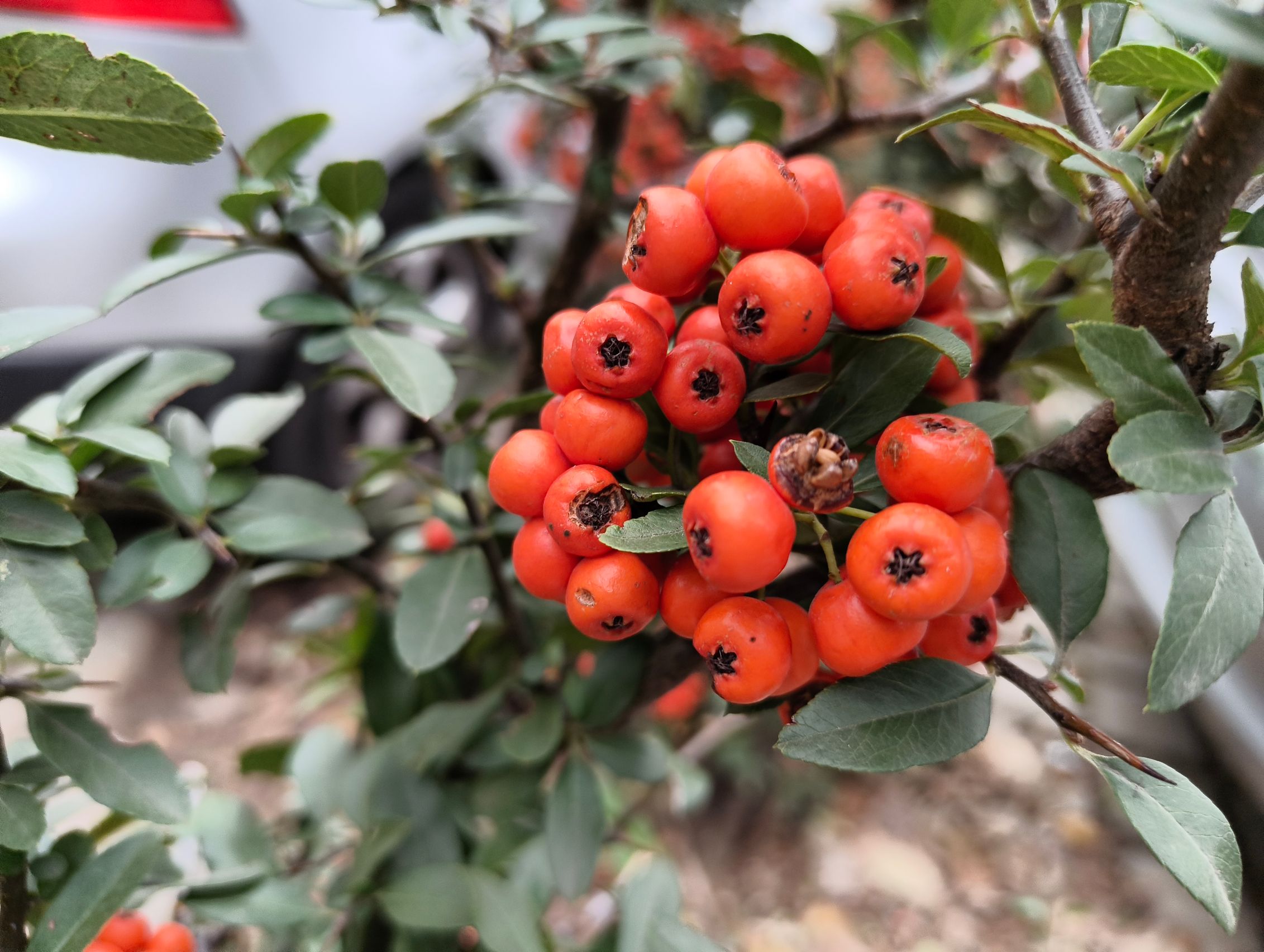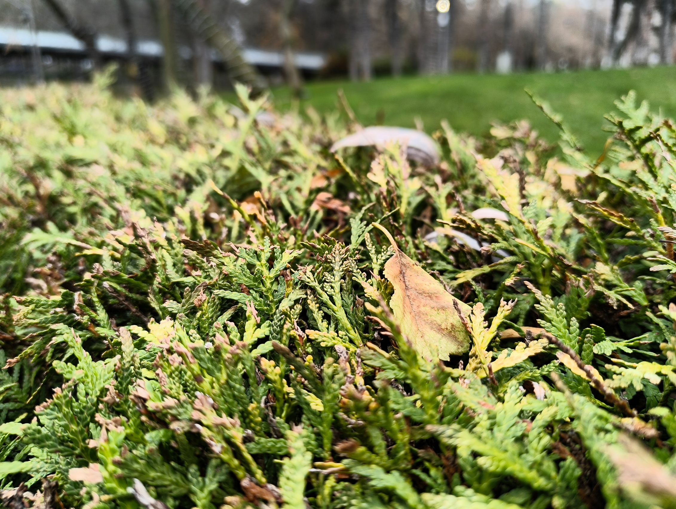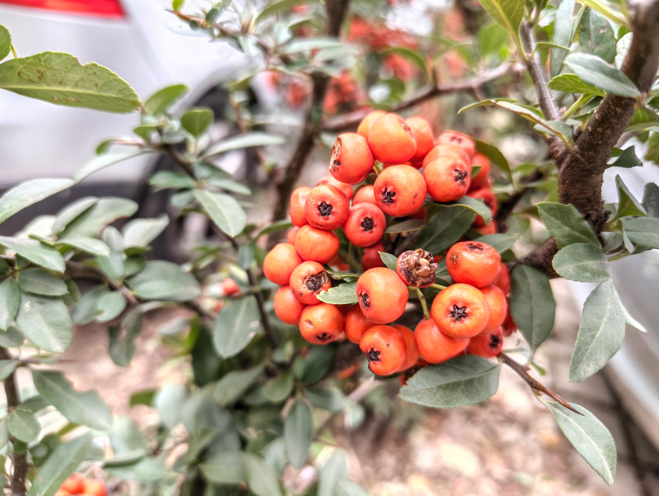Pe timp de zi primul detaliu pe care l-am remarcat este că sunt diferențe de culoare între wide și ultra-wide, cu mai multă vibranță pentru vegetație pe ultra-wide, nuanțe nu tocmai demne de luna decembrie. Roșul fructelor de tip măceșe este pierdut în pixeli, iar macro-ul nu prea face față, cu o cameră de doar 2 mpx care pare pusă doar pentru a fi la număr. Ar fi fost bună una ultra-wide cu AF, dar..