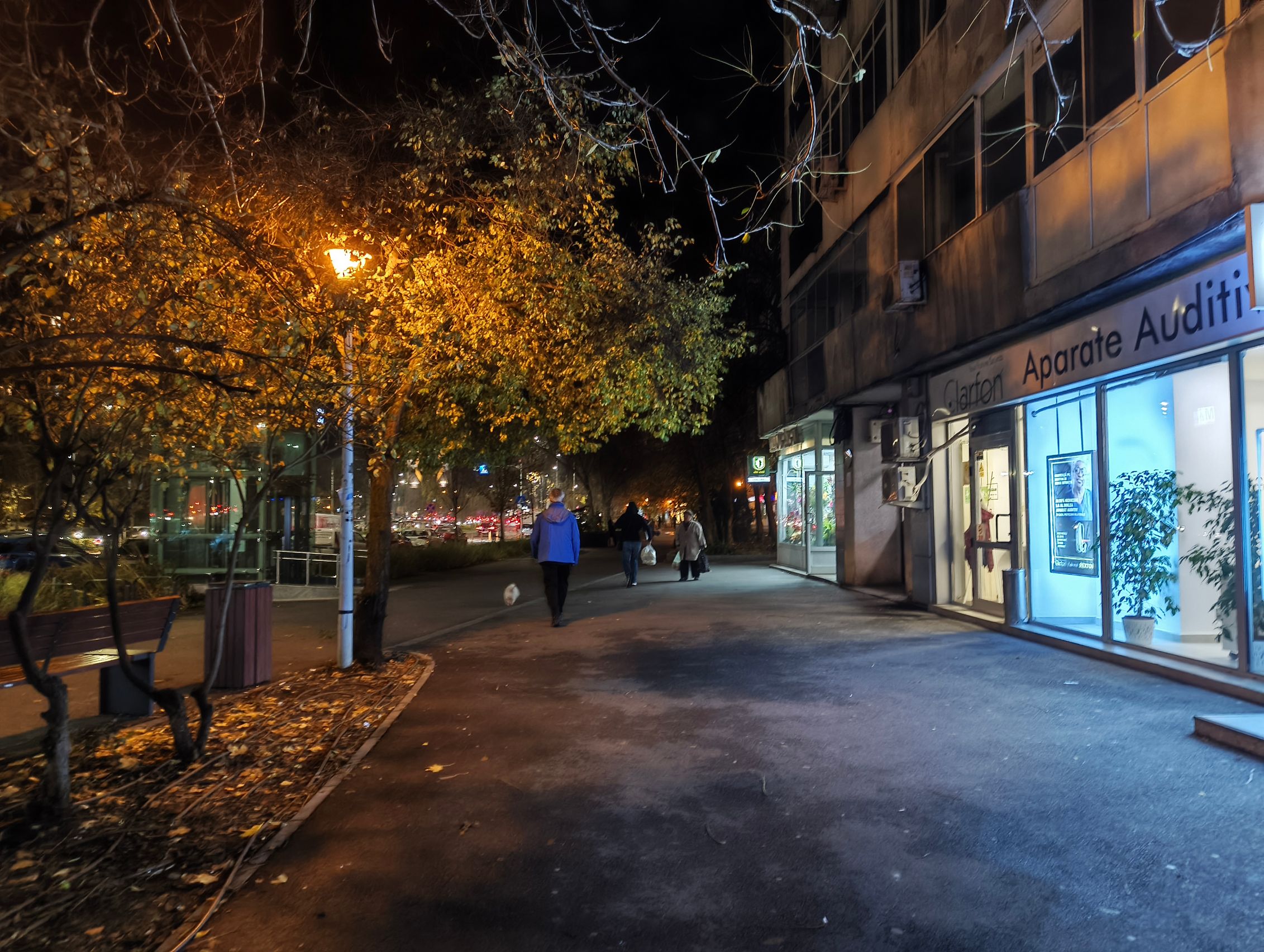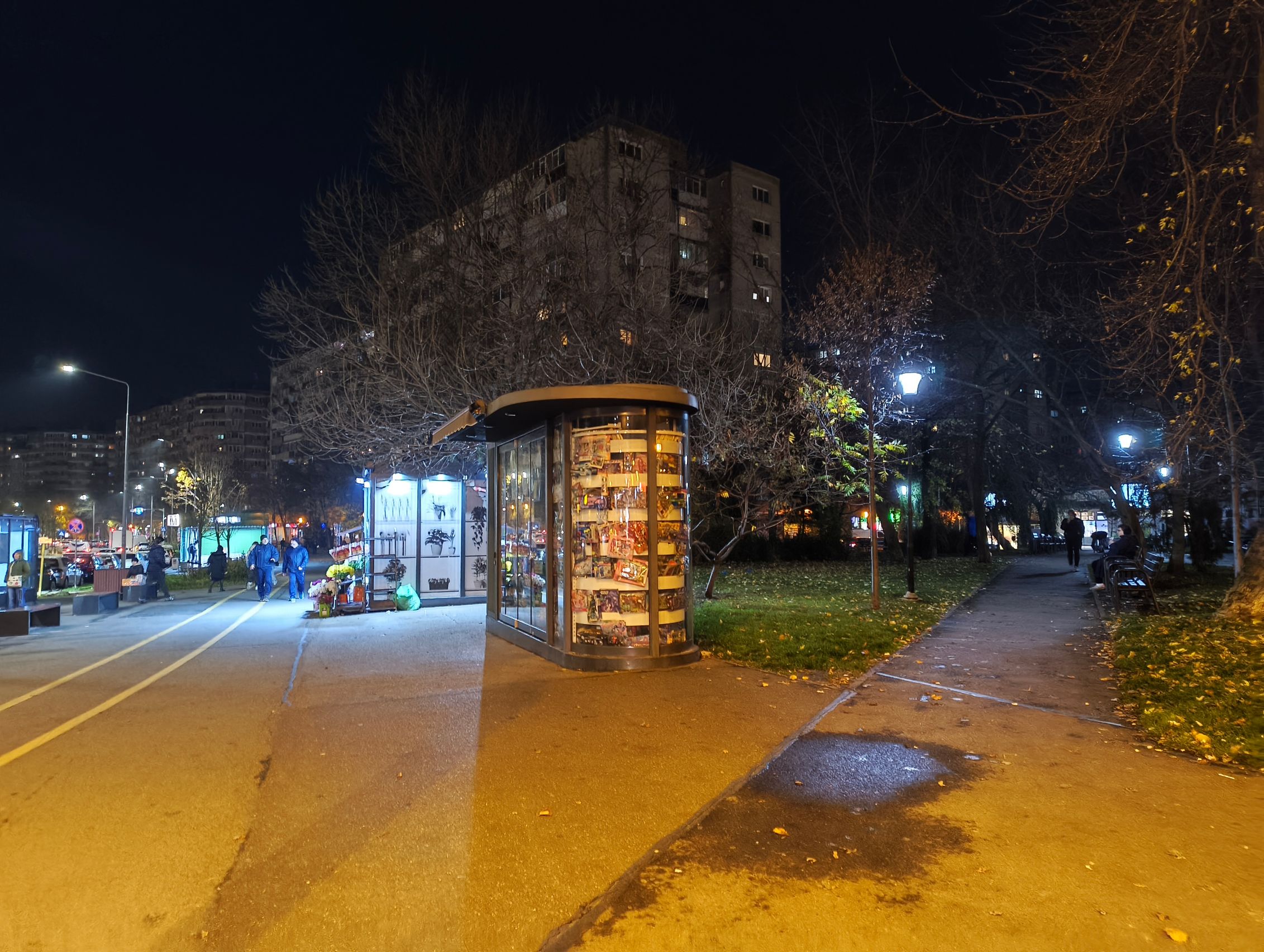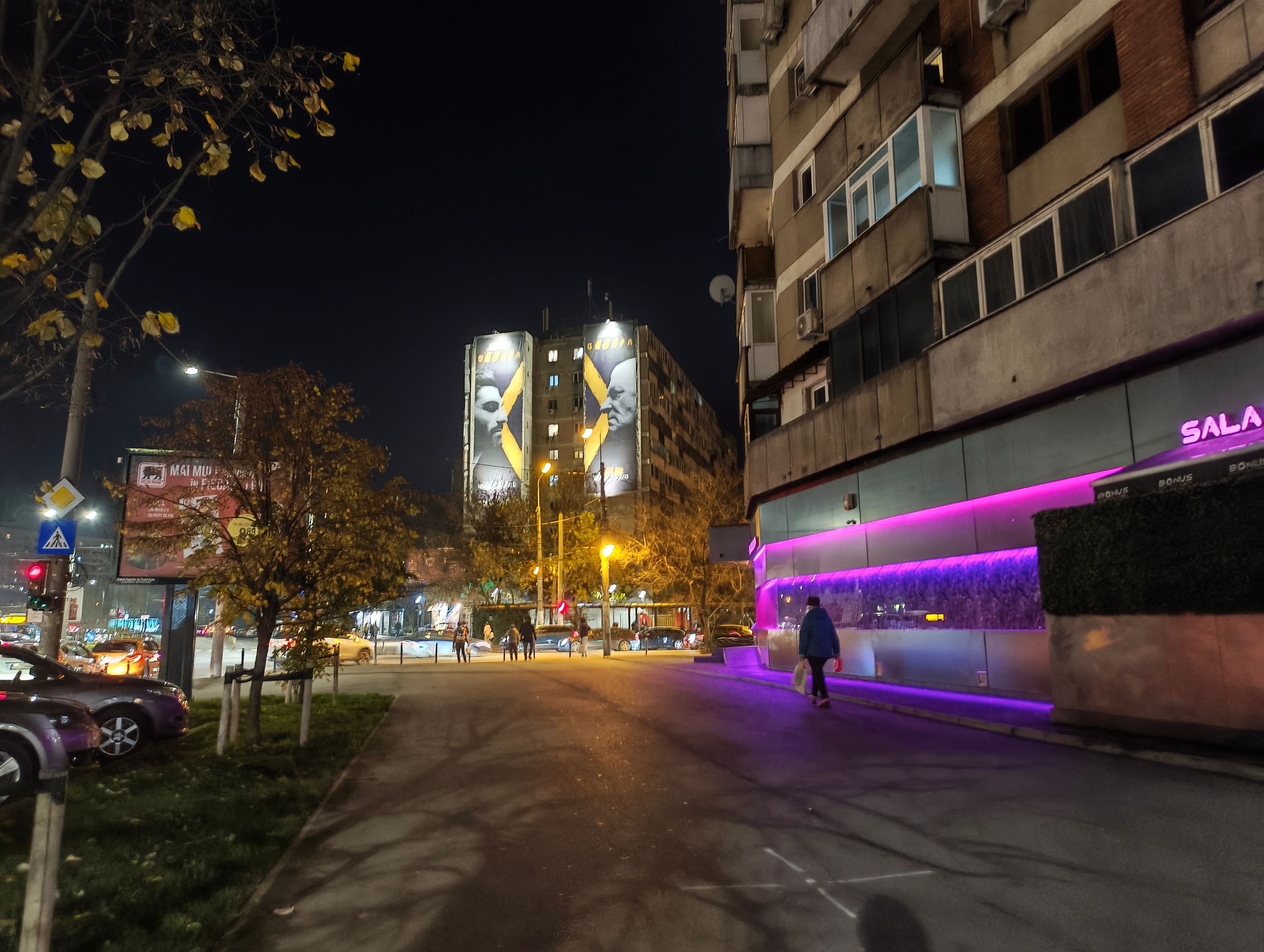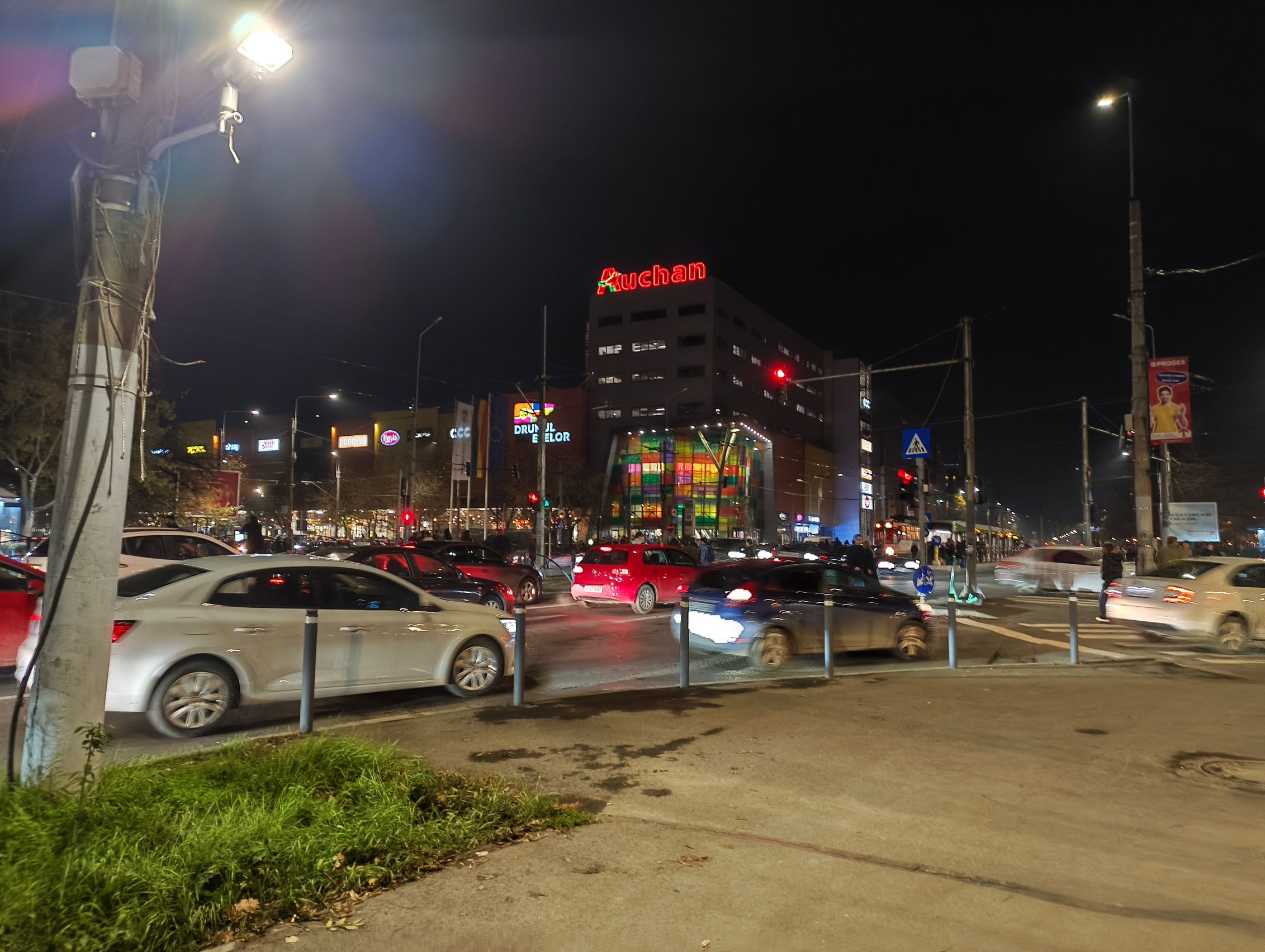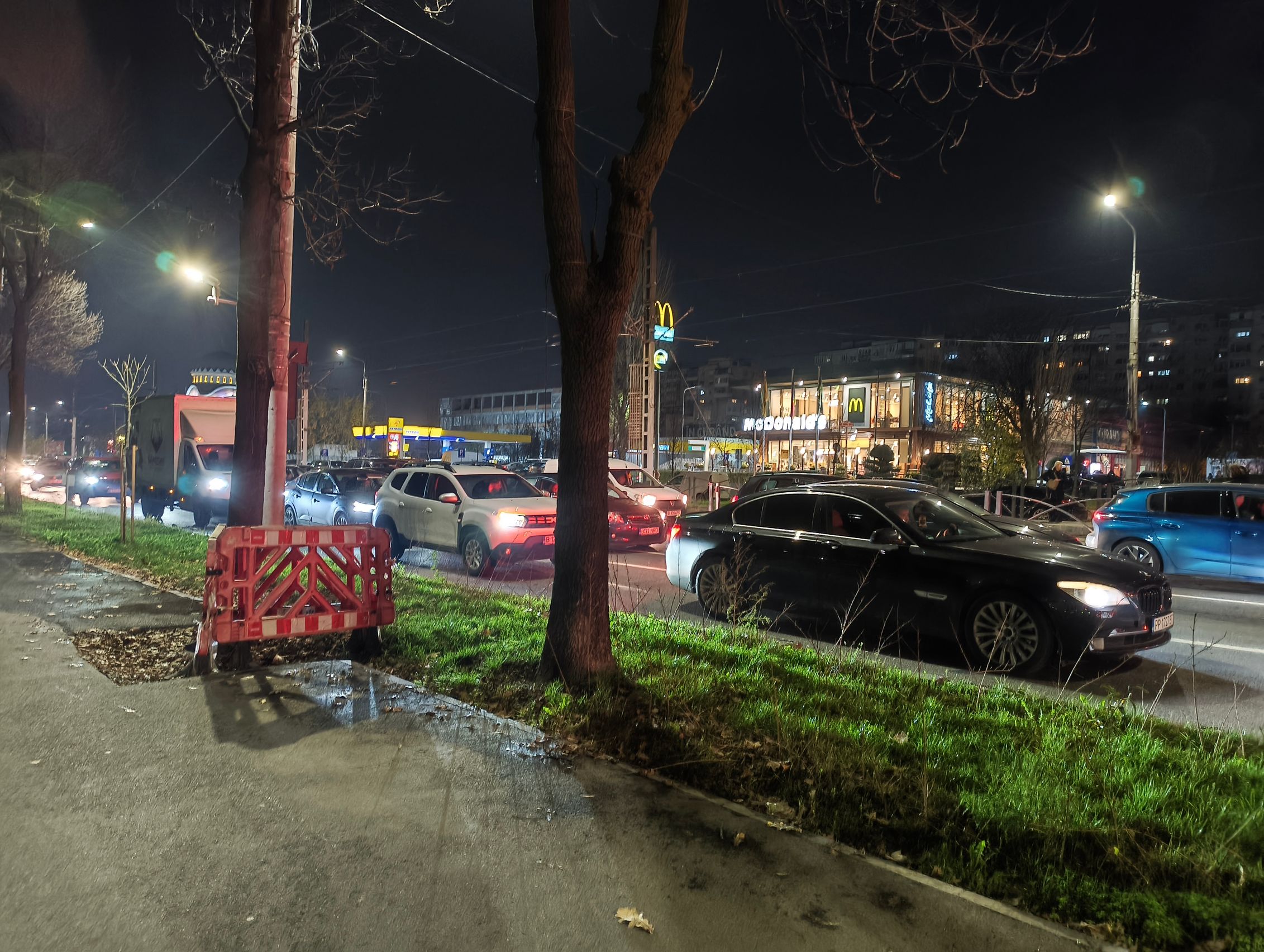 Pe timp de noapte calitatea scade sesizabil și nu prea e de selfie-uri, poate doar să ai foarte multă lumină în jur și să ai multă răbdare să nu te miști. Trecând la camera din spate, galbenul acaparează peisajul, sunt și raze mari de la luminile de pe stâlp, roșul acelor tufe nu mai este deloc roșu și se pierde printre verdele vegetației de la stradă. Camera cere multă răbdare de la tine. Cel mai mult îmi plac cadrele bokeh de pe noapte, în rest e cam lite.