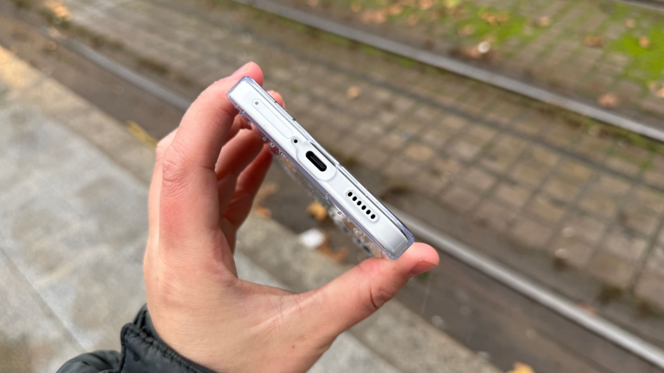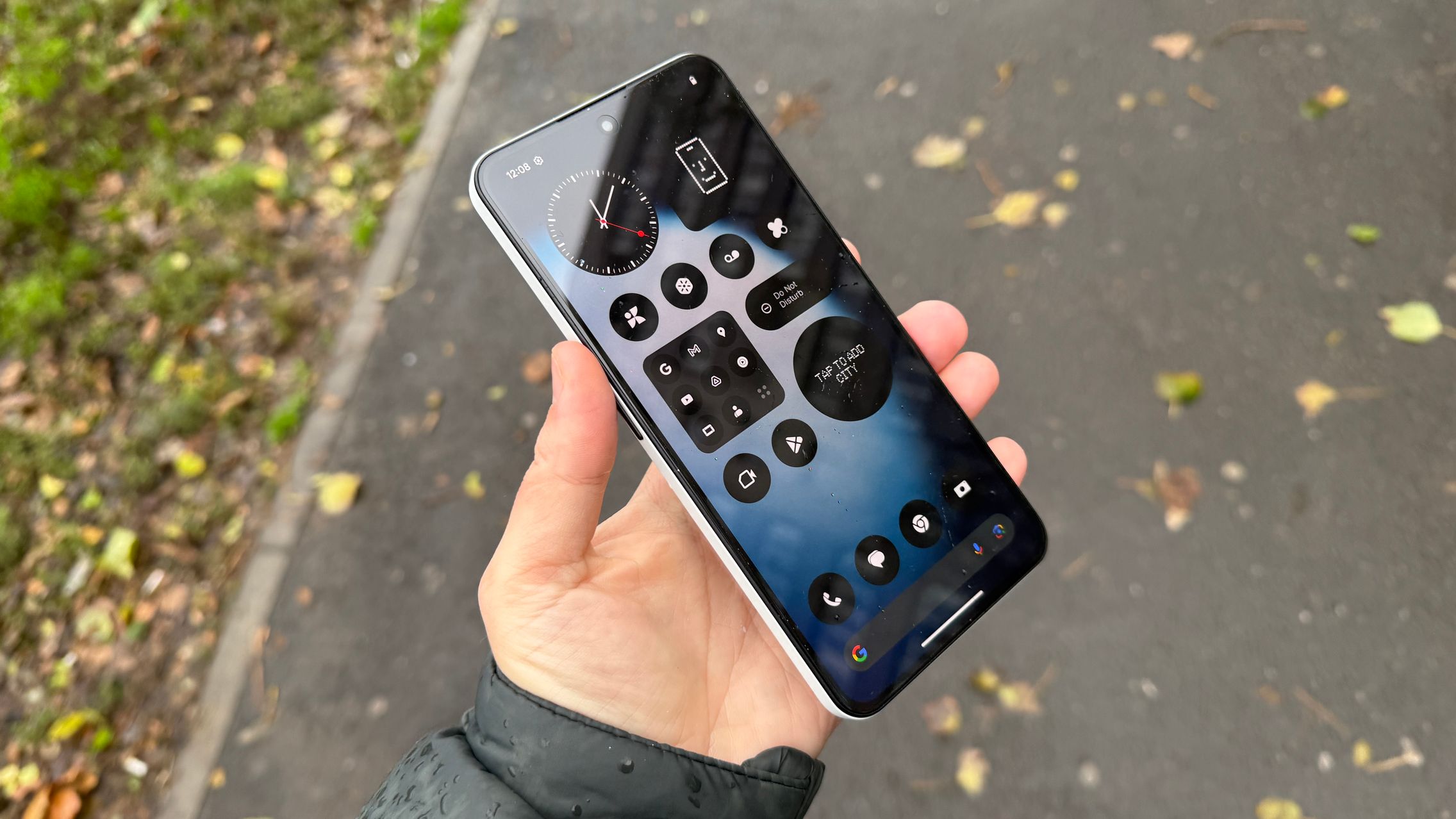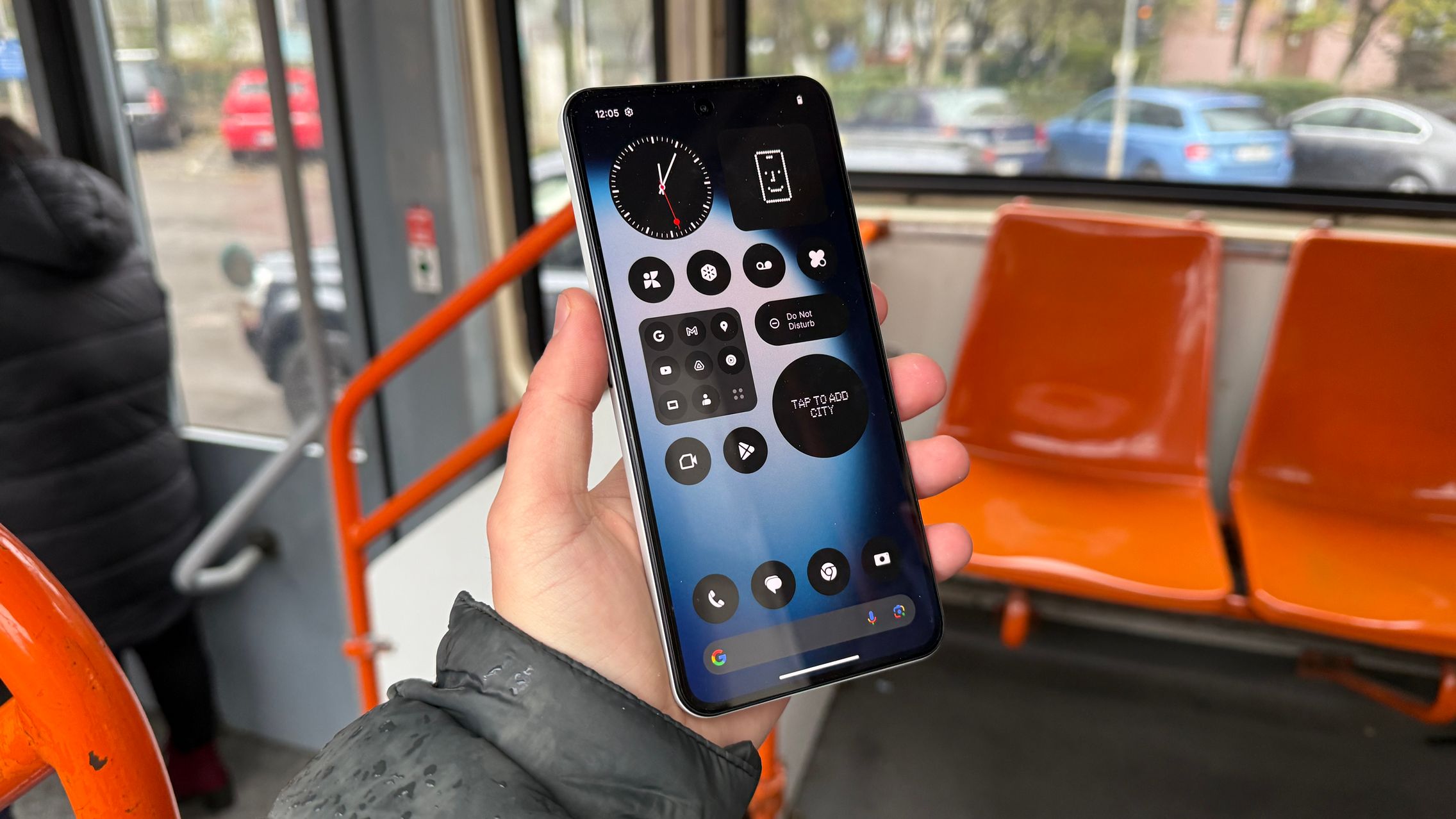 Are spate transaprent sub care se văd doar părți care acoperă componentele și jos de tot în colțul din dreapta apare micul beculeț LED Glyph, doar atât! E un telefon mare, dar care se simte mai ușor decât este, greutatea de 199 grame fiind bine echilibrată. Îmi amintește de fostele "phablet-uri" prin dimensiunile sale și ca dimensiuni, acesta are 8.3 mm grosime și 199 grame.