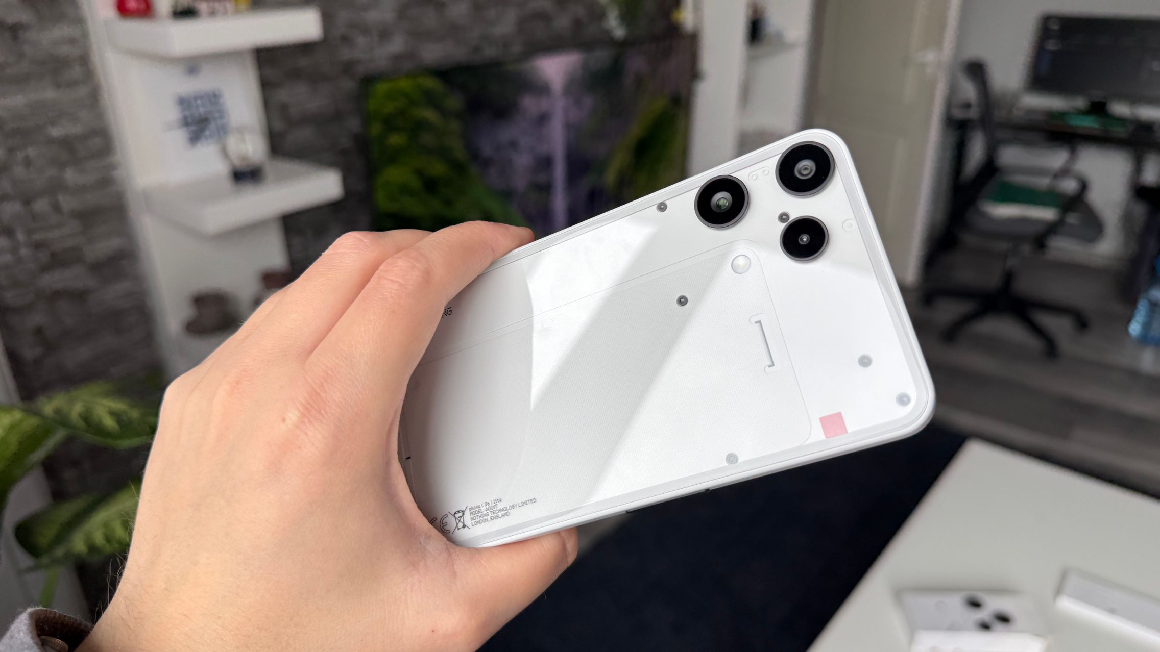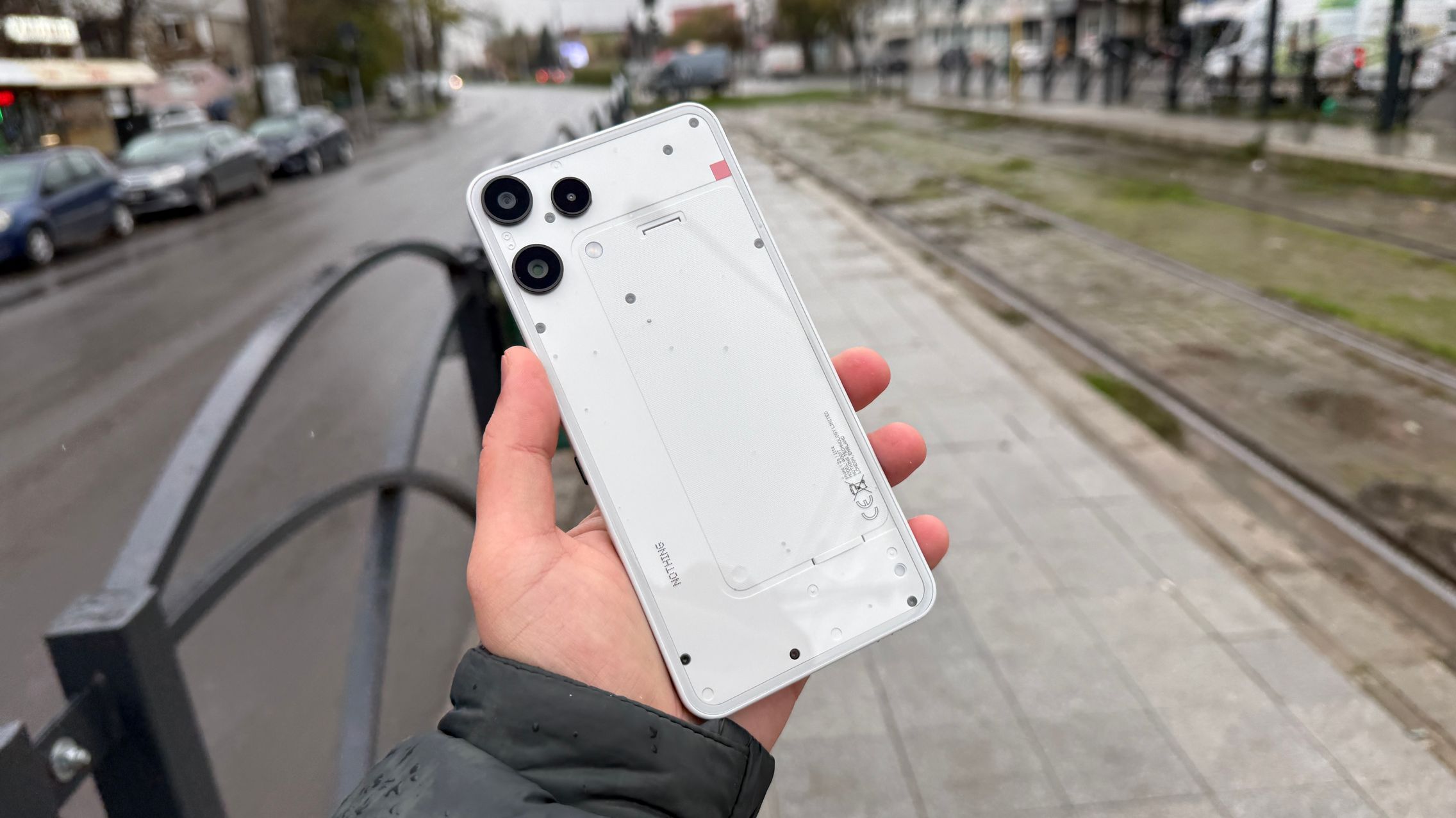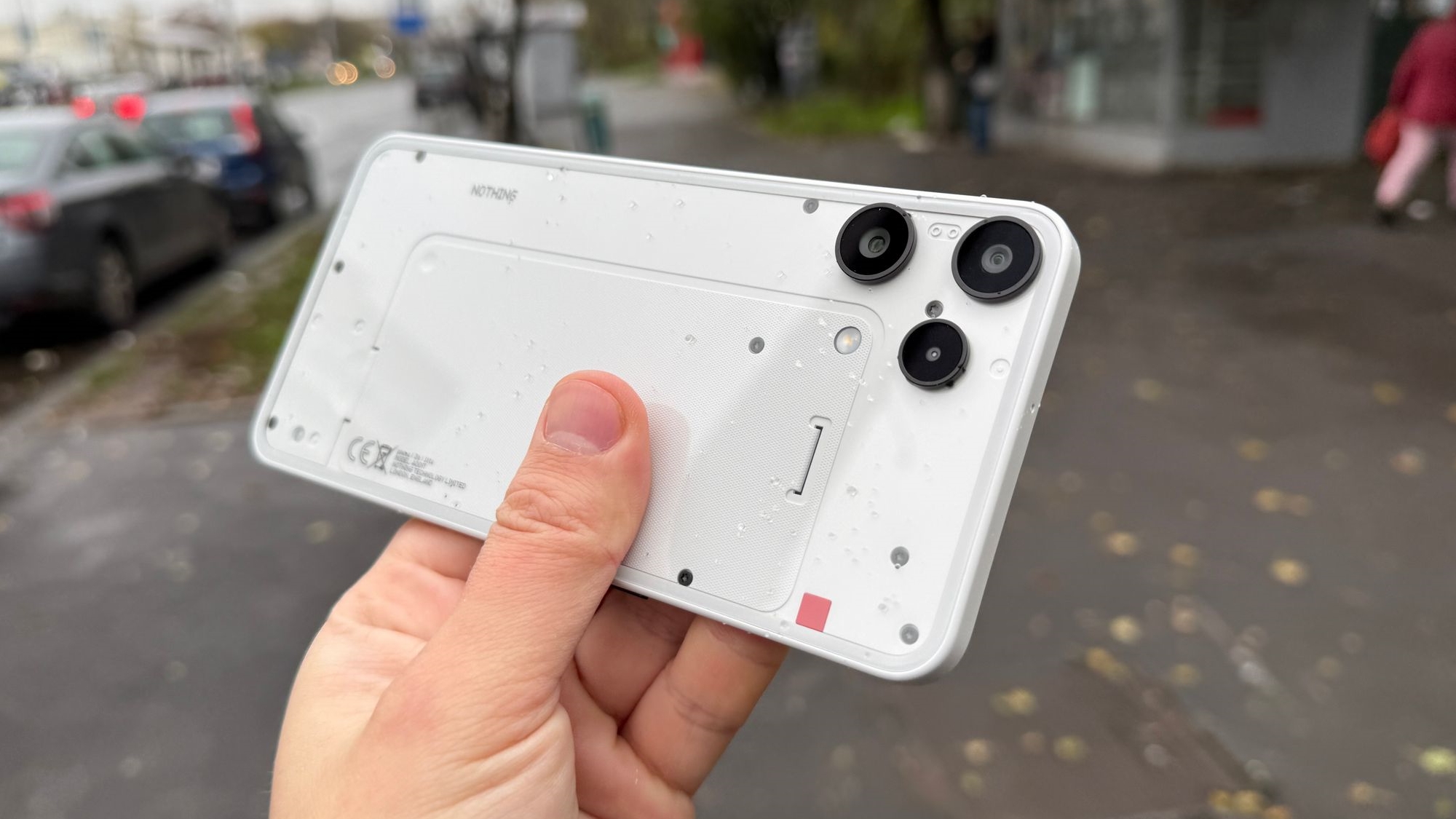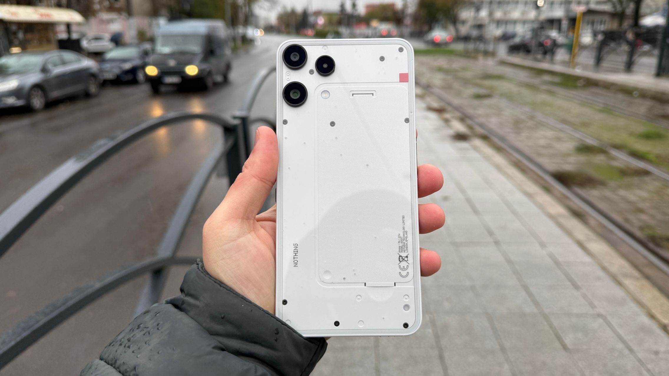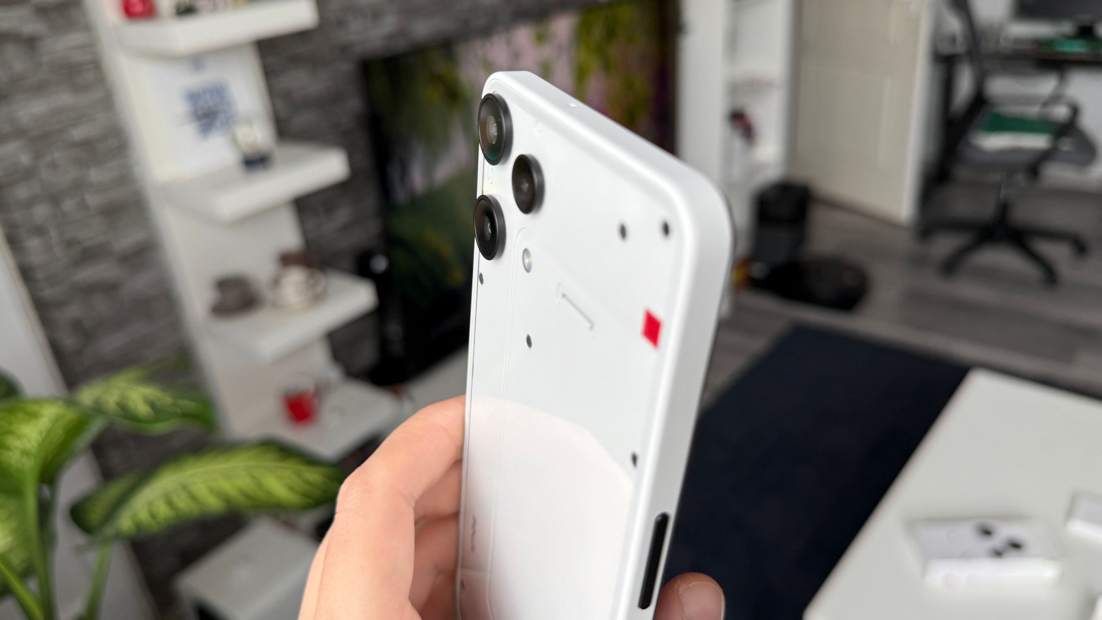 Chiar dacă vorbim despre o serie de telefoane, Phone (3a) Lite se diferențiază vizual față de celelalte modele din jurul său și mă refer aici la Phone (3a) și la Phone (3a) Pro. Are un modul diferit de cameră, sau mai bine zis pune camerele direct în spate, fără un modul aferent. Sunt plasate în colțul din stânga sus spate, asimetrice.