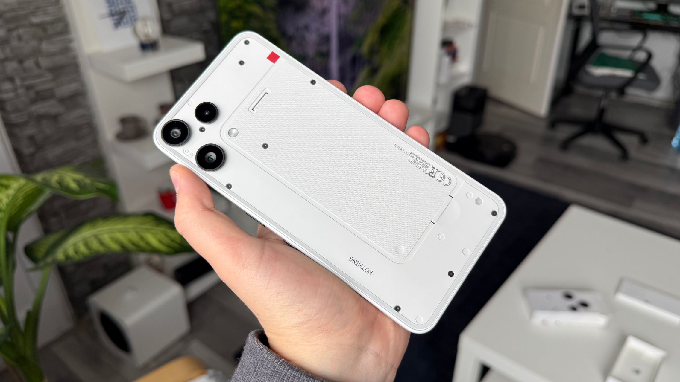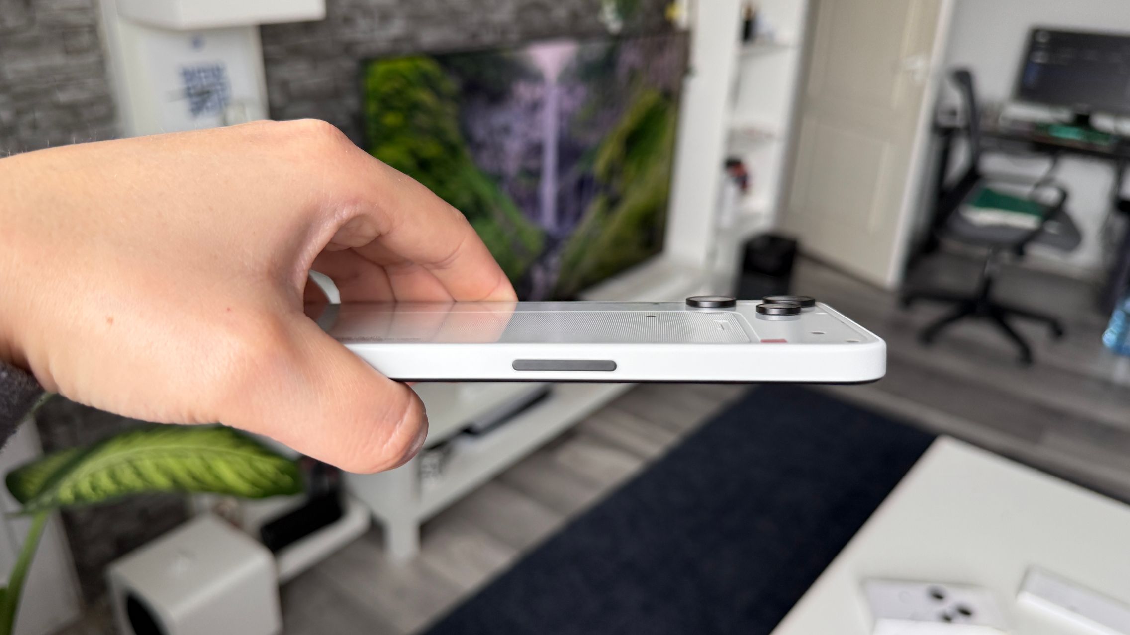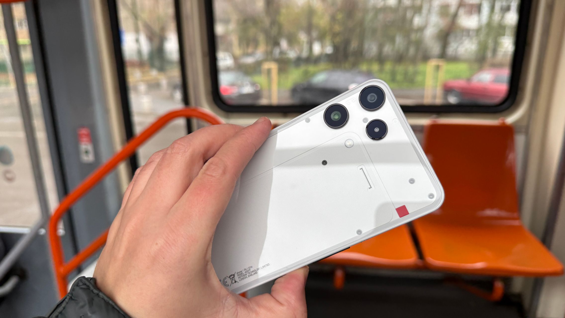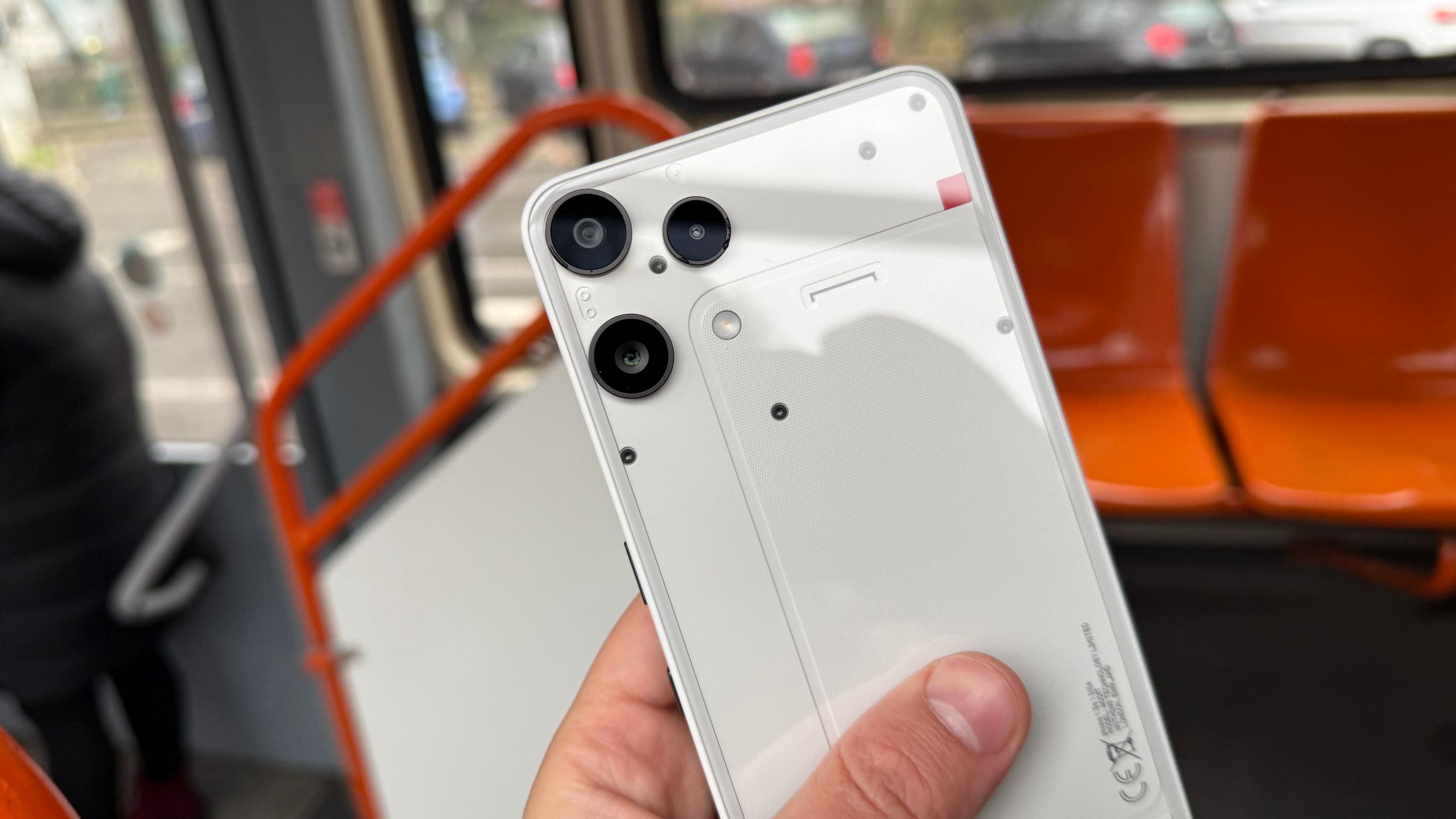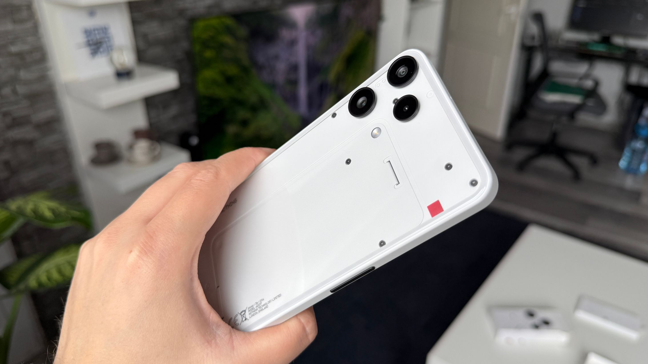 Chiar dacă vorbim despre o serie de telefoane, Phone (3a) Lite se diferențiază vizual față de celelalte modele din jurul său și mă refer aici la Phone (3a) și la Phone (3a) Pro. Are un modul diferit de cameră, sau mai bine zis pune camerele direct în spate, fără un modul aferent. Sunt plasate în colțul din stânga sus spate, asimetrice.
