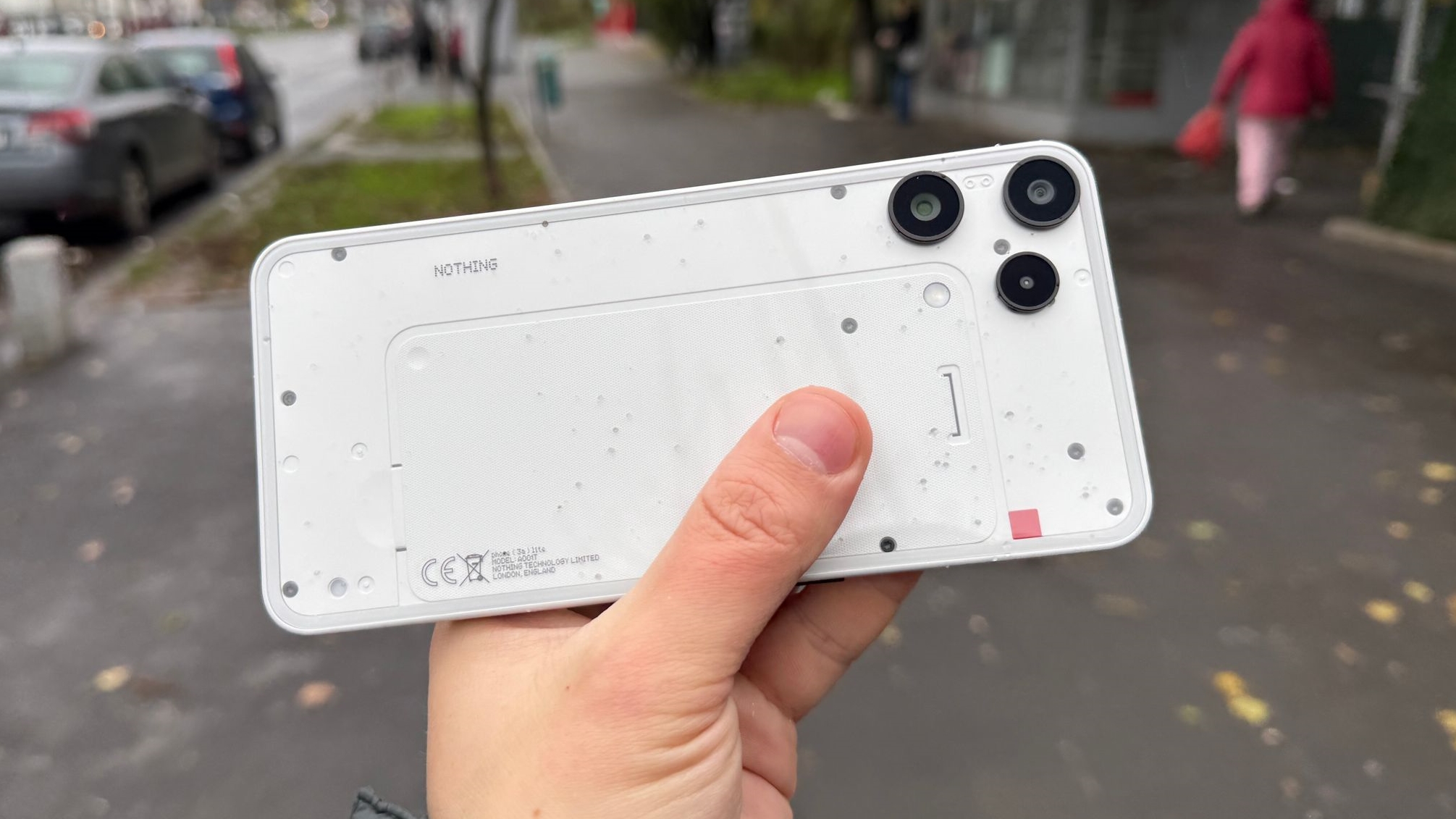 Este cu 14 grame mai greu decât fratele său CMF Phone 2 Pro și cu 0.5mm mai gros, iar vina pare a fi pusă pe seama panoului spate din sticlă. Nothing Phone (3a) Lite are ramă din plastic, iar sticla din spate folosește protecție Panda Glass, la fel și pe față. Bifăm aici certificare IP54.