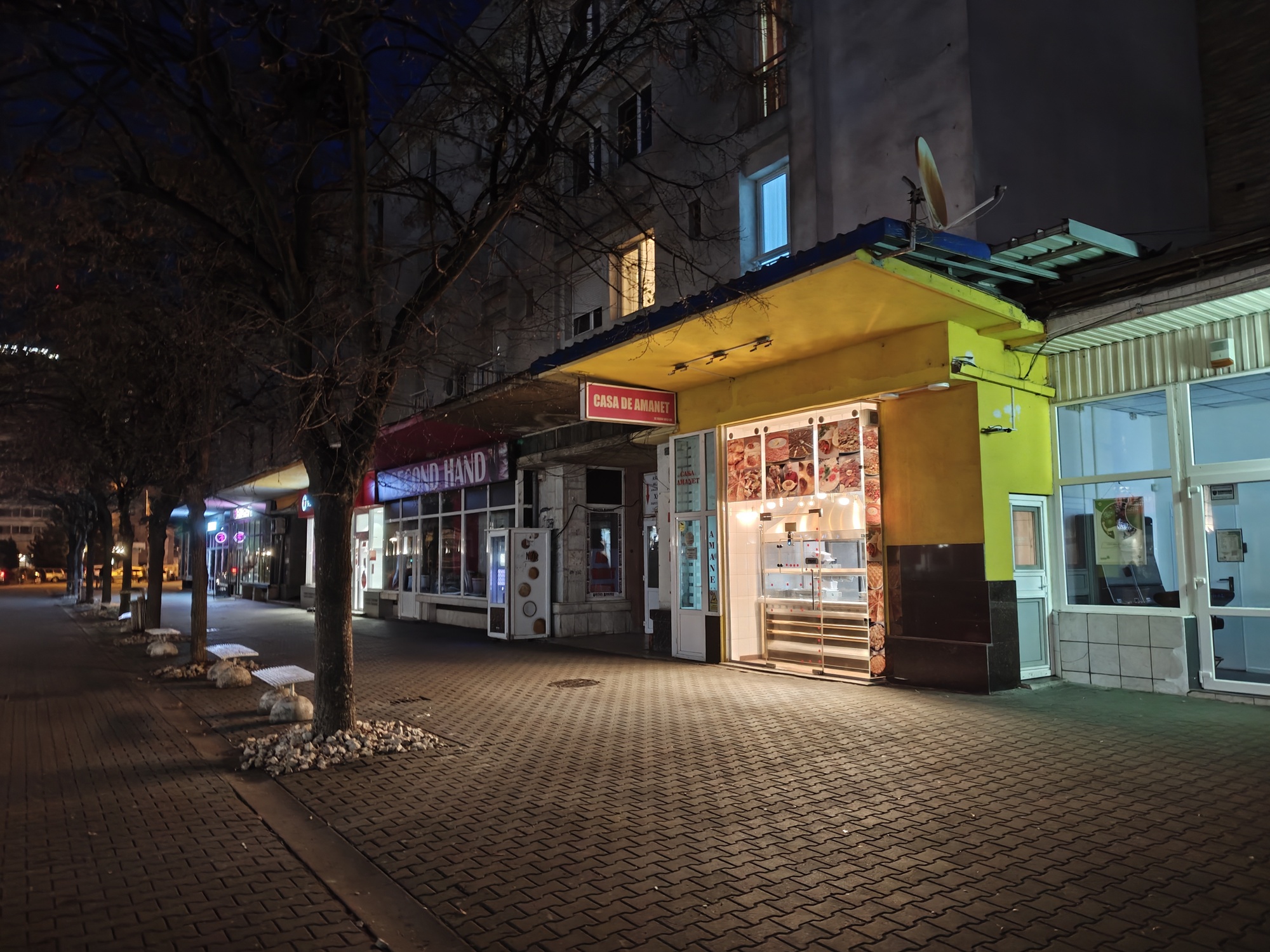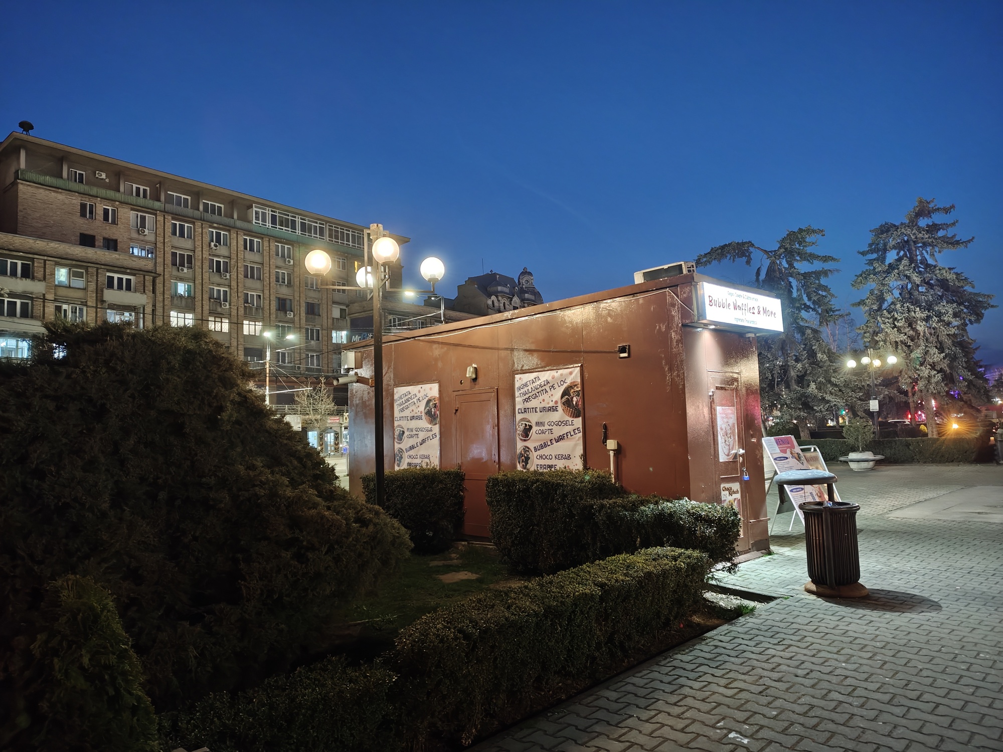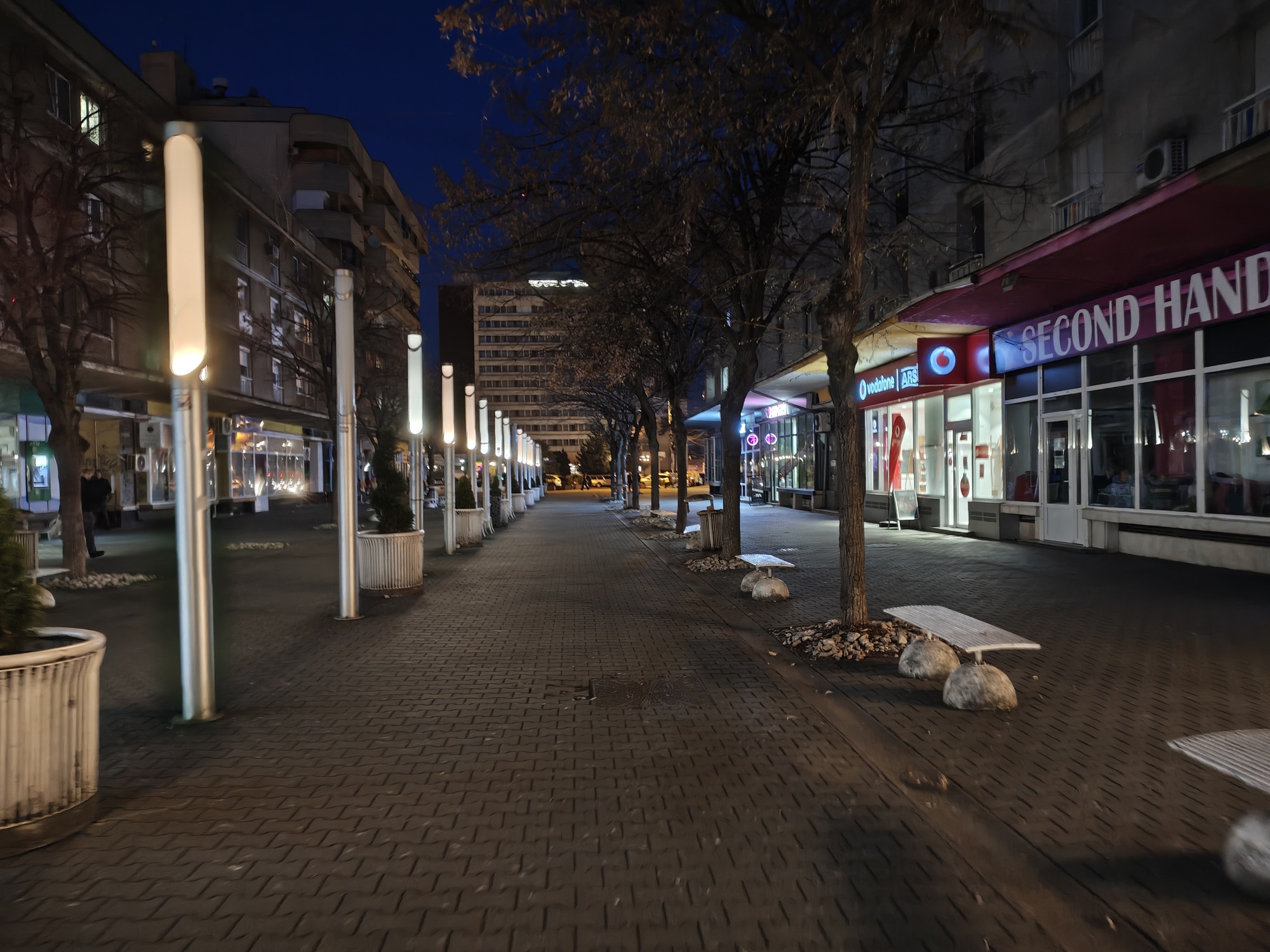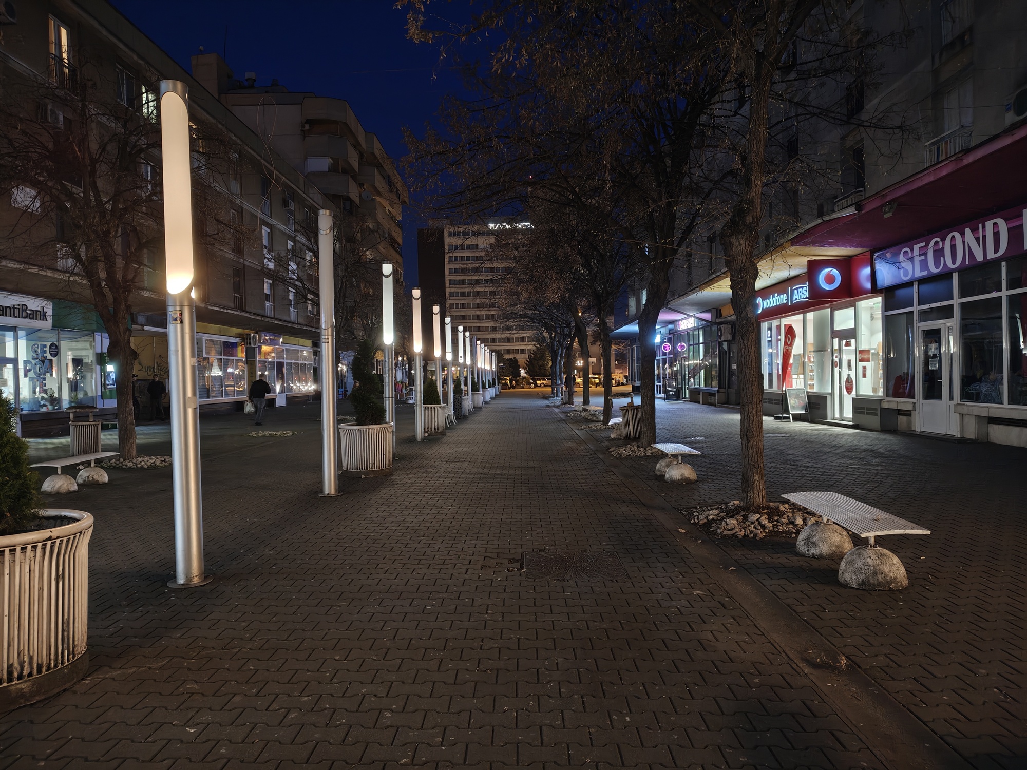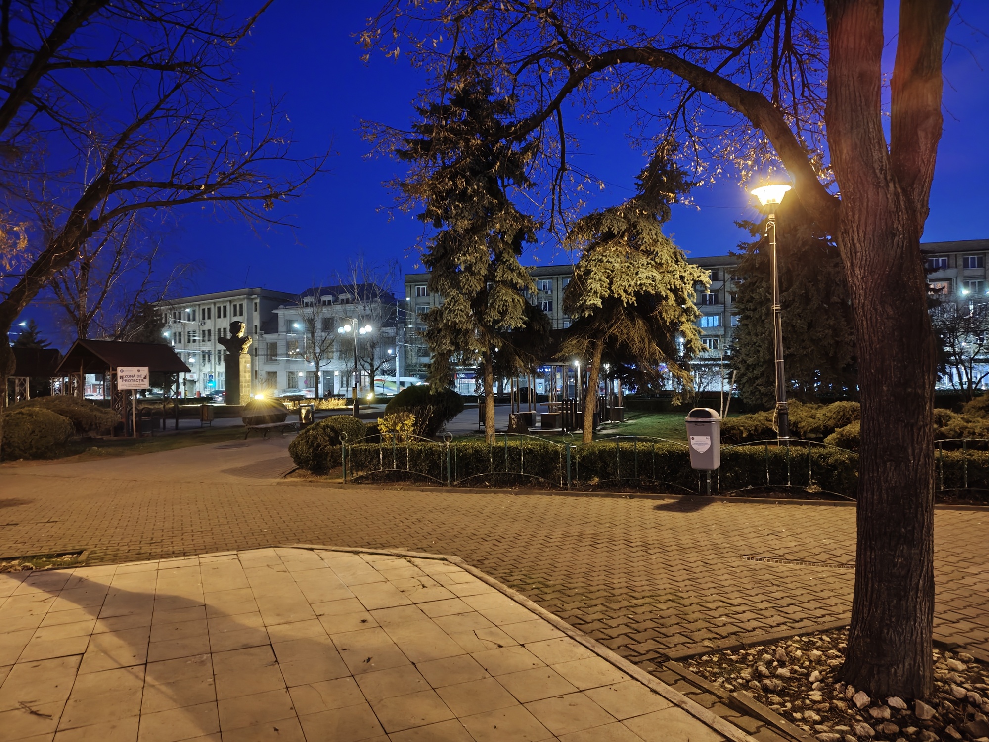 Pe timp de noapte lucrurile se schimbă puțin. Night Mode-ul nu e dus la extrem, dar am remacat că e mult mai rapid decât în cazul altor telefoane de buget. Trebuie să stai nemișcat doar 1-2 secunde până ce captura cu Night Mode e gata. În schimb, apar halo-uri în jurul surselor de iluminare și avem mult Lens Flare în special spre extremități (tot din cauza surselor excesive de iluminare).