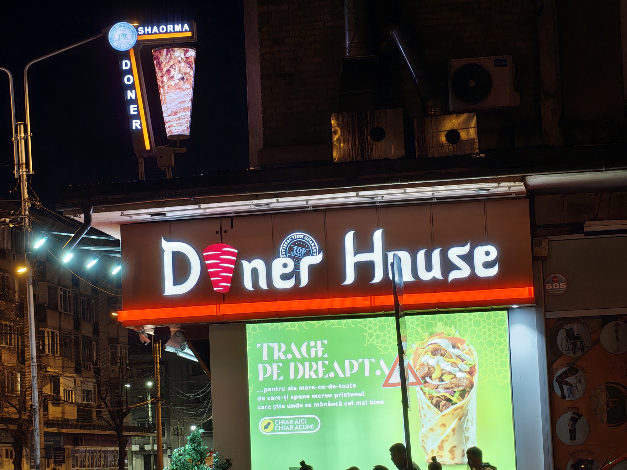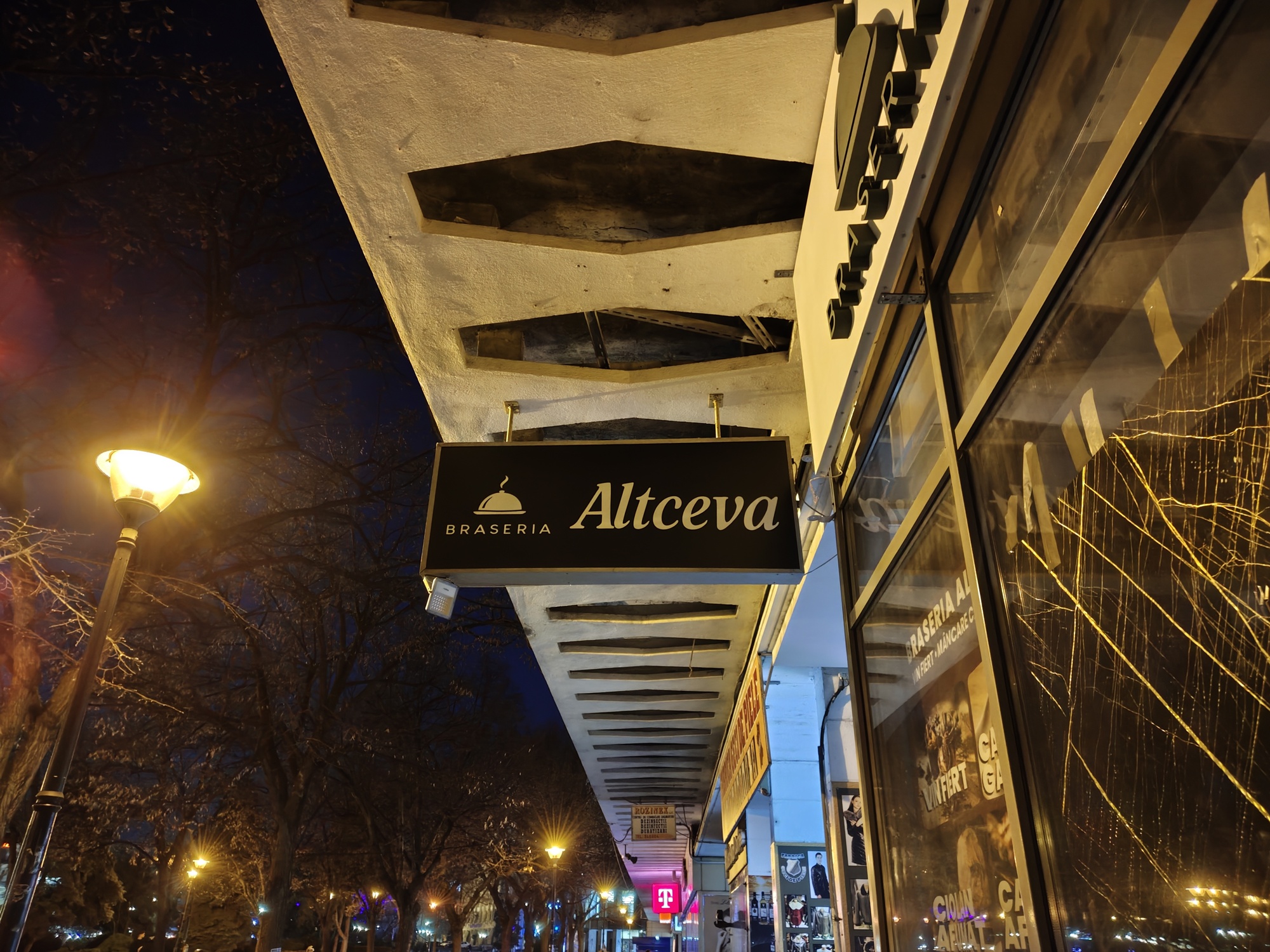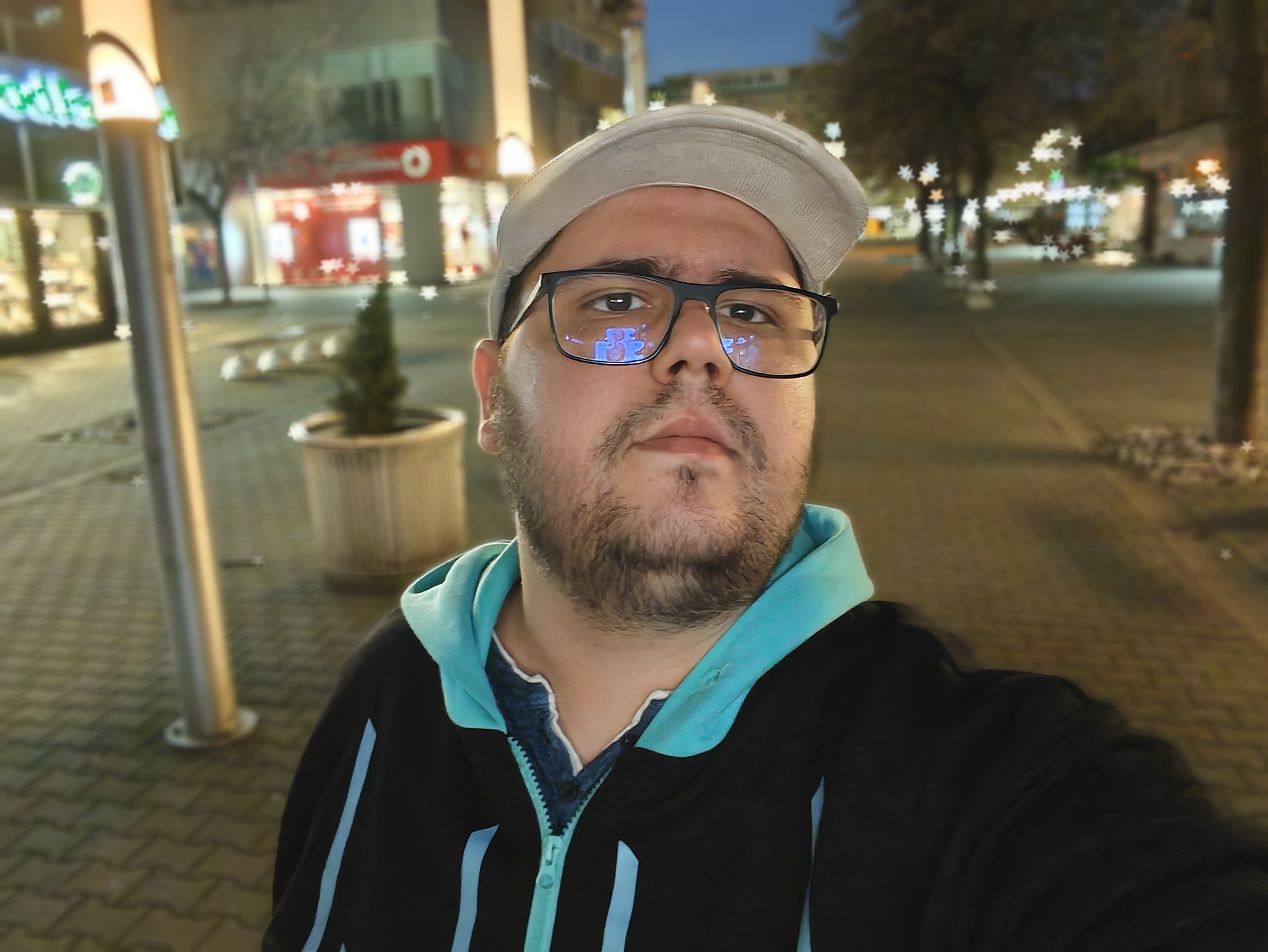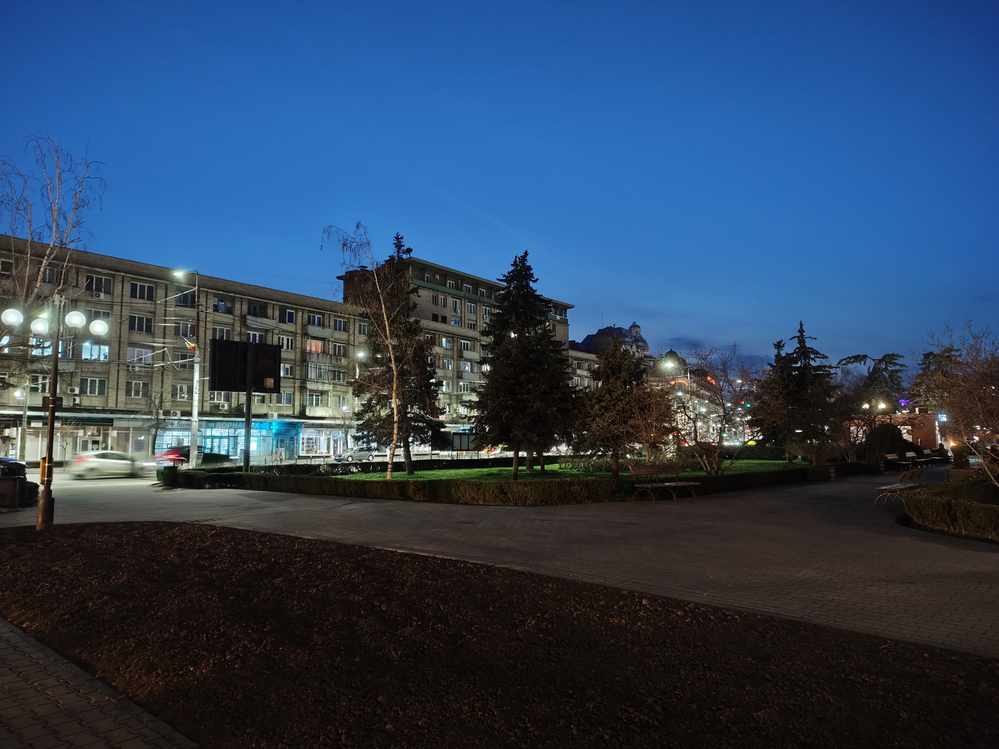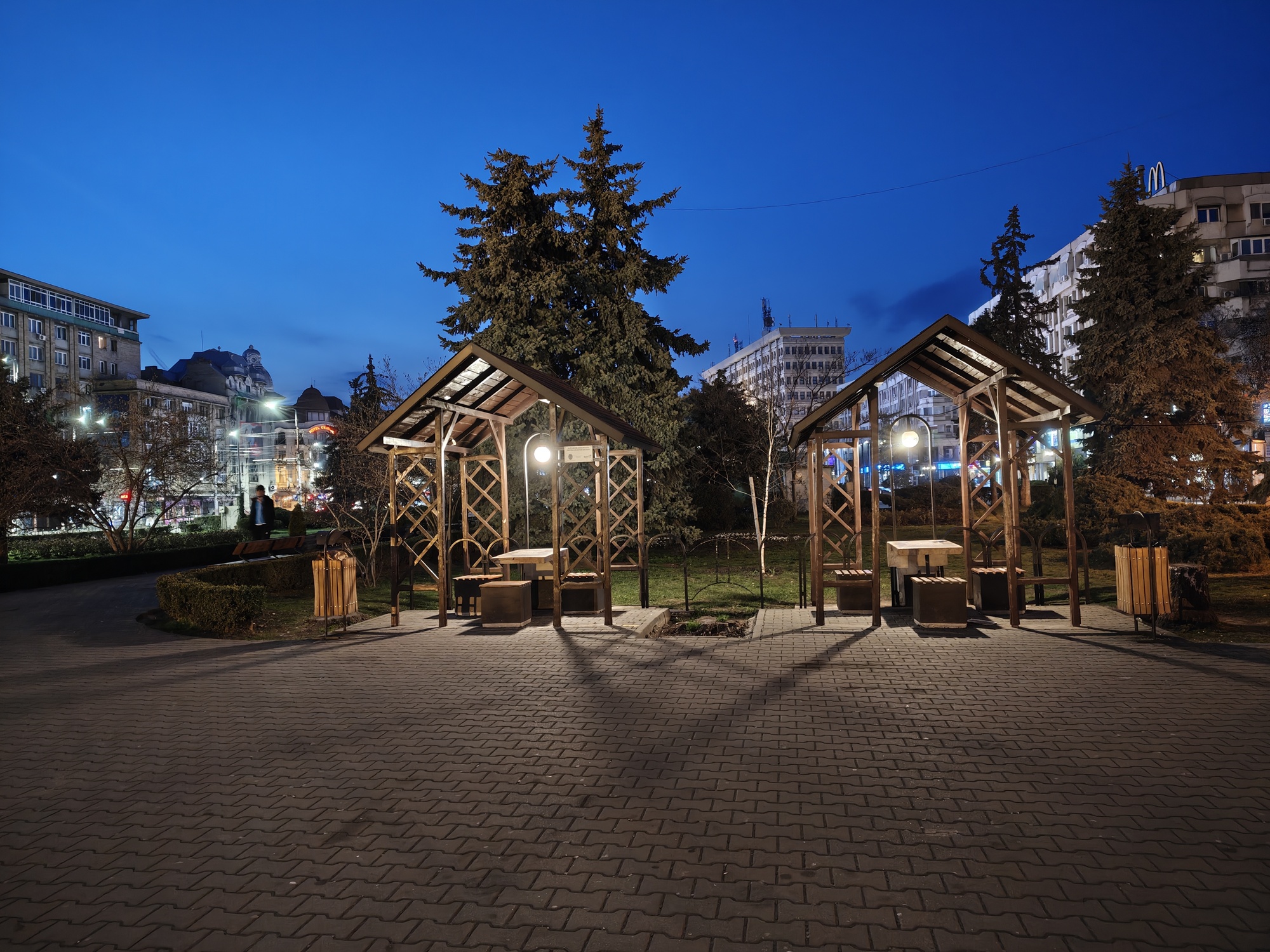 Pe timp de noapte lucrurile se schimbă puțin. Night Mode-ul nu e dus la extrem, dar am remacat că e mult mai rapid decât în cazul altor telefoane de buget. Trebuie să stai nemișcat doar 1-2 secunde până ce captura cu Night Mode e gata. În schimb, apar halo-uri în jurul surselor de iluminare și avem mult Lens Flare în special spre extremități (tot din cauza surselor excesive de iluminare).