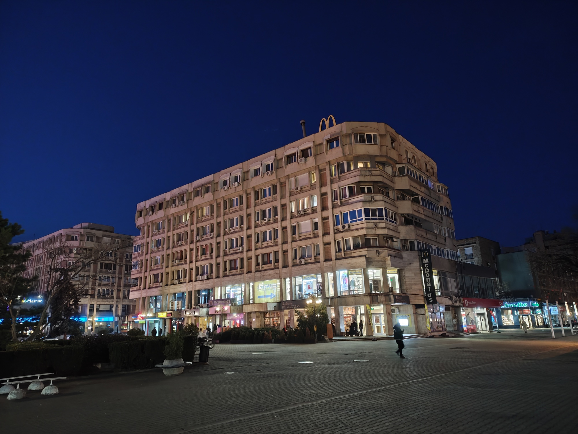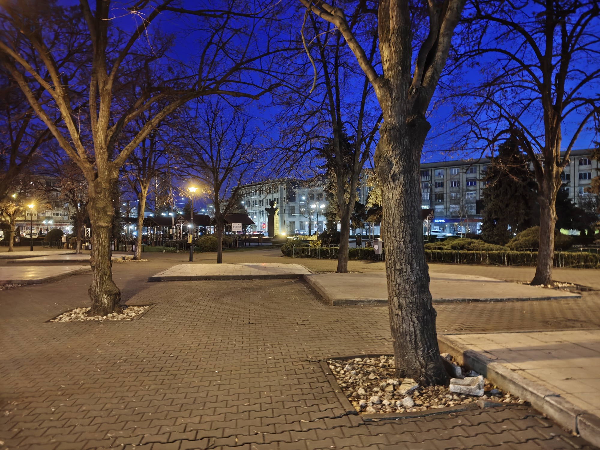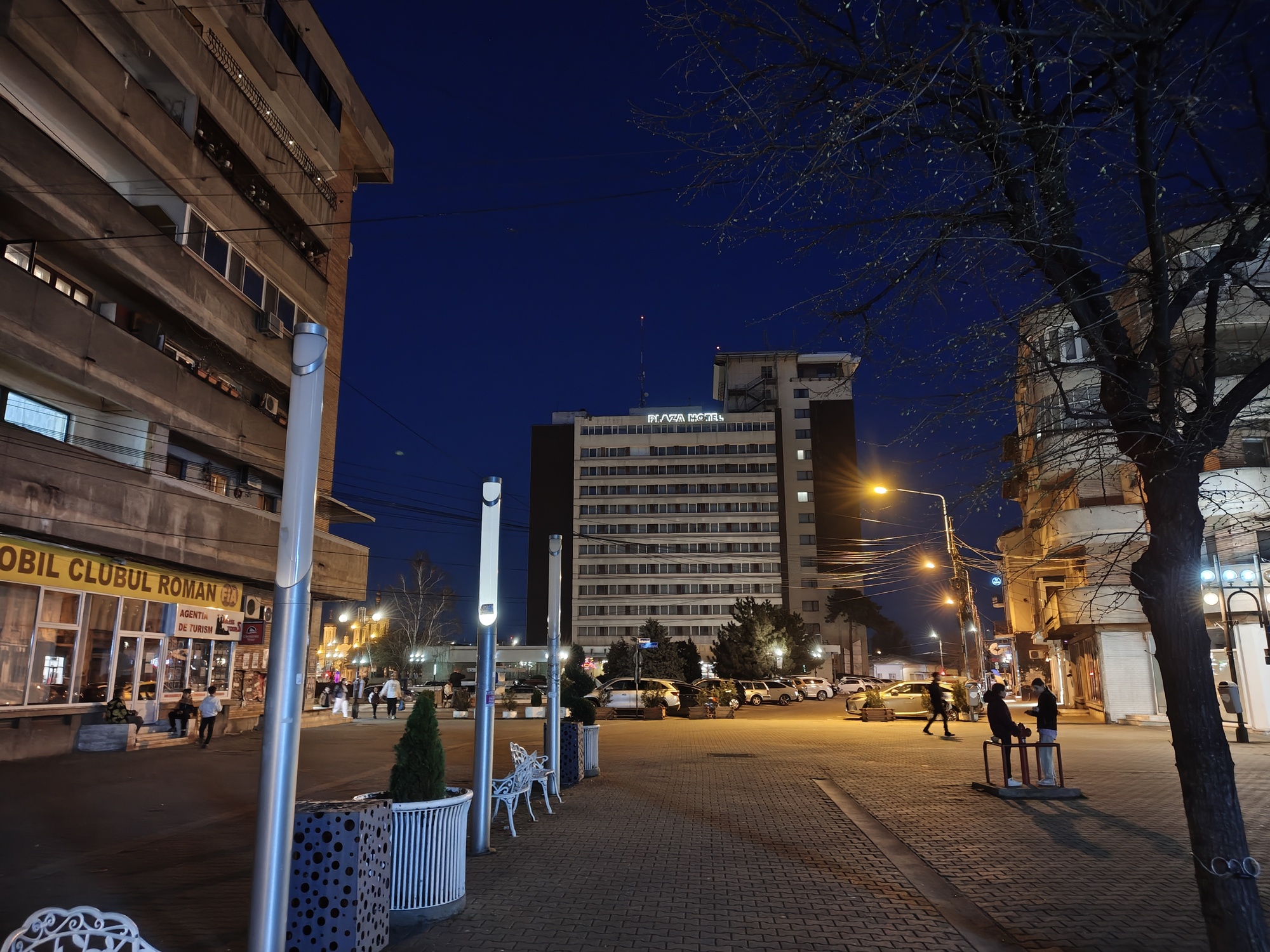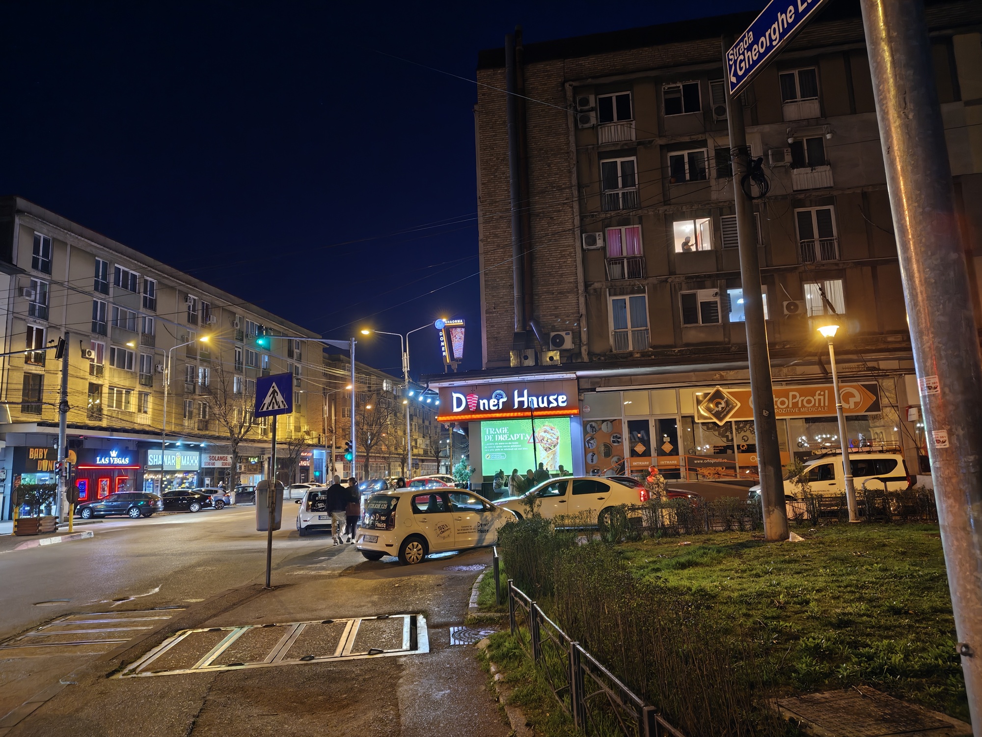 Telefonul se străduiește în continuare să livreze detalii și culori cât mai apropiate de realitate, în ciuda condițiilor dificile. Poza preferată din această categorie aș zice că e cea de pe Strada Teatrului unde avem un soi de perspectivă în două puncte, acolo unde sursele de iluminare sunt mult mai blânde, iar detaliile arhitecturale sunt clar conturate, fără Lens Flare sau alte artefacte vizuale.