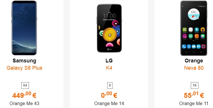 - Samsung Galaxy S8+ - 449 eur + abonament Orange ME 43