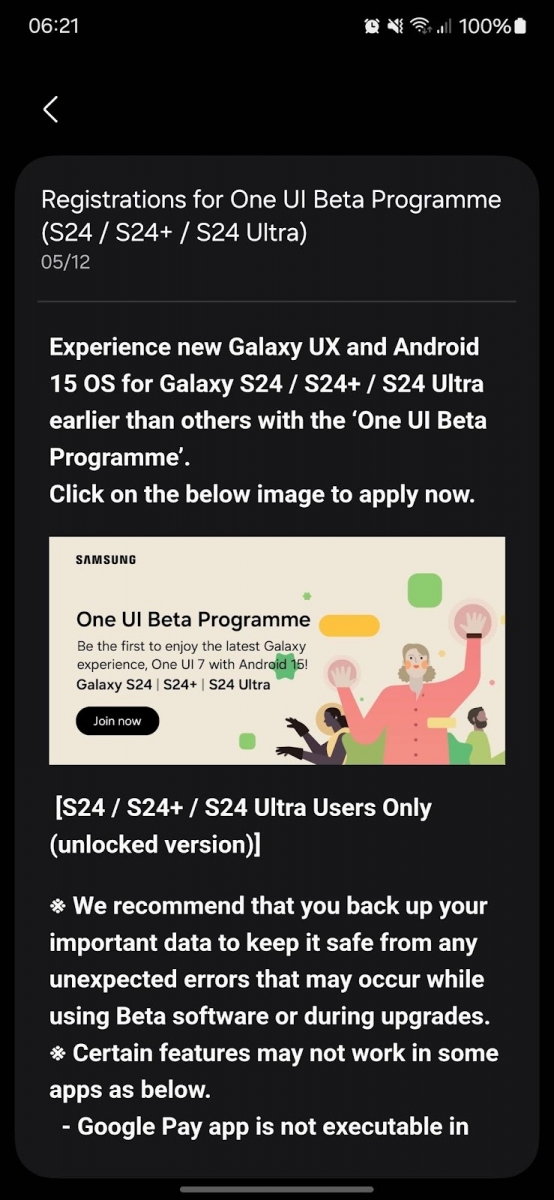 După nenumărate amânări Samsung a dat în sfârșit drumul la programul pentru testarea One UI 7, interfață bazată pe Android 15 în mai multe țări europene, printre care și Marea Britanie. După mai multe încercări de a mă înrola în program, pentru că eram întâmpinat de un mesaj care îmi spunea că numărul maxim de participanți a fost atins, am reușit să descarc actualizarea pe al meu Galaxy S24+. Vorbim de un update de aproape 4.5GB