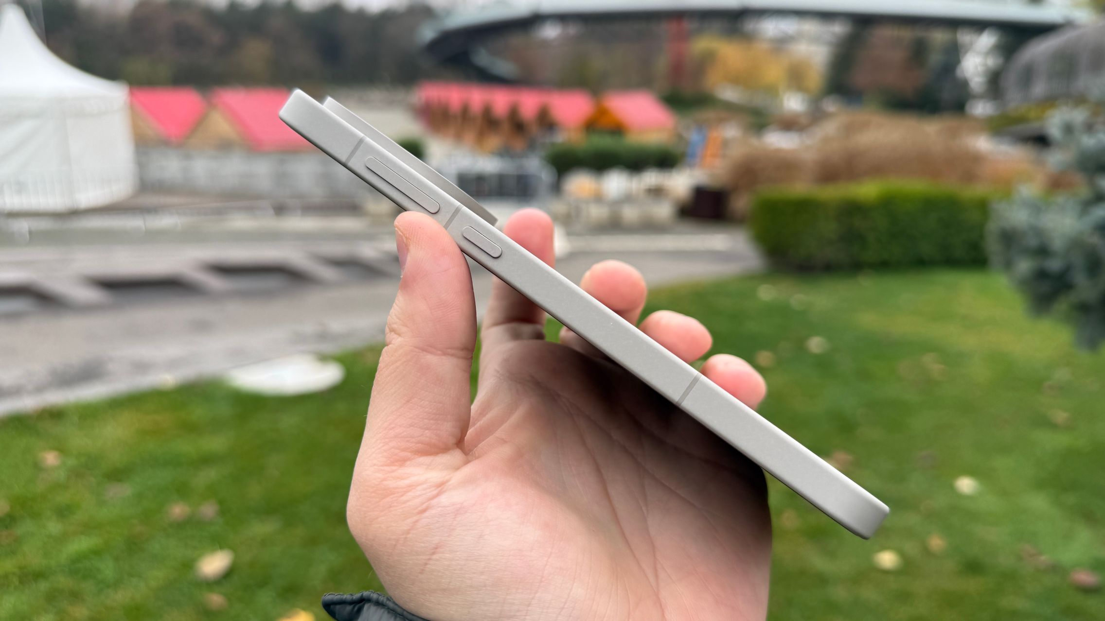 Rama este metalică și se simte la fel de smooth la atingere, grație unui proces numit MAO (micro-Arc Oxidation), aparent mai prietenos cu mediul versus procesul clasic de anodizare pentru aluminiu. Este și mai rezistent. Spatele din fibră de sticlă este acoperit cu un material precum ceramica, rece la atingere și este și motivul pentru care te poți trezi cu zgârieturi din buzunar.