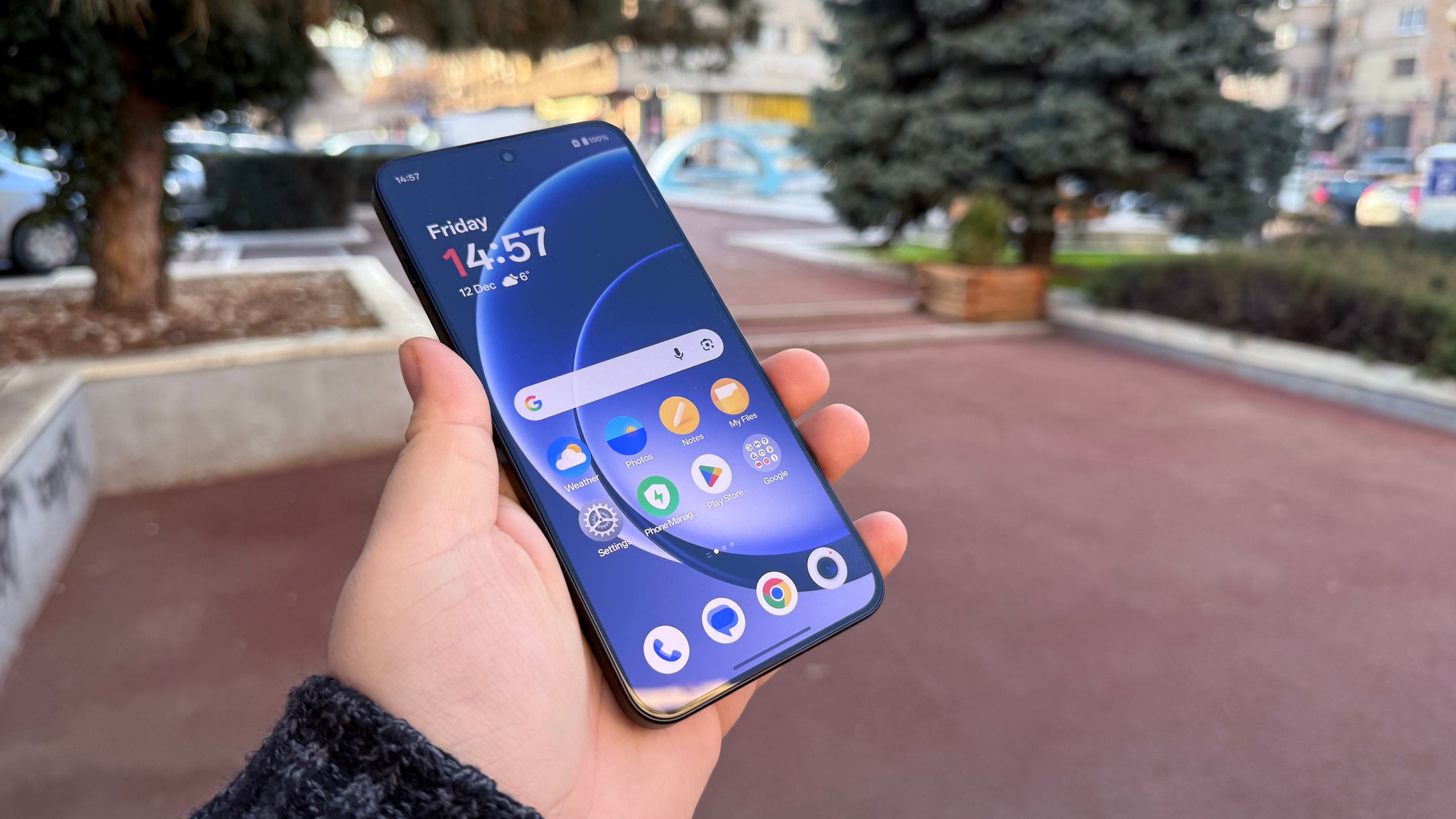 Cântărește 214 grame în varianta testată de noi (Charcoal Black), dar mai există și modelul verde (Mint Breeze) ce cântărește 215 grame. Are o talie de doar 8.3 mm și vine cu un display generos, cu muchii foarte înguste, de 6.83 inch în diagonală. Lateral, în partea dreaptă, găsim butoanele de volum + cel power on / off. În stânga se află noua tastă „Plus Key” ce poate fi personalizată după bunul plac.