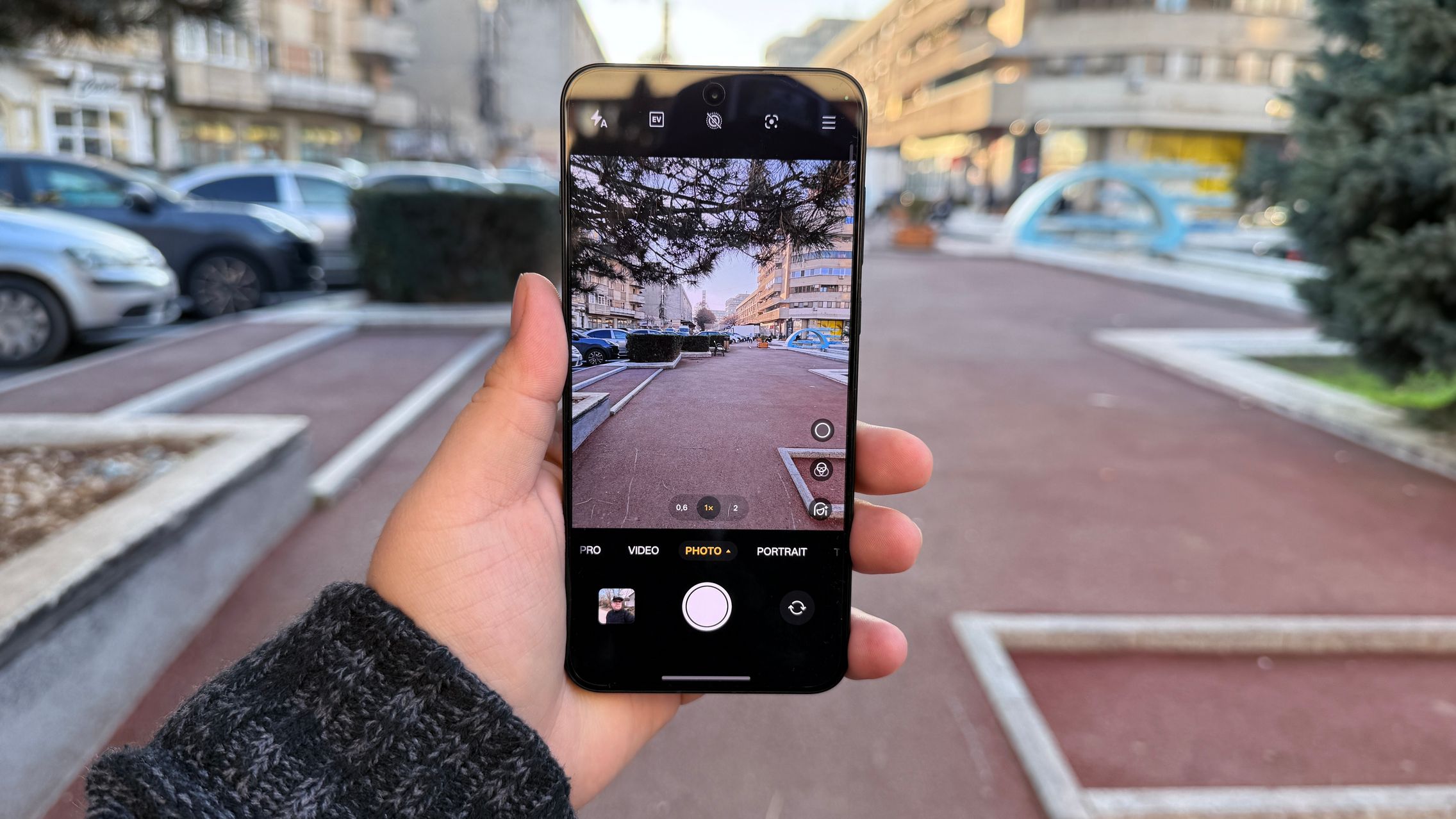 Frontal apare un senzor selfie integrat în decupaj bulină, dar și un senzor pentru amprente ultrasonic, precis. În cutie nu avem încărcător, deci acesta trebuie achiziționat separat.
