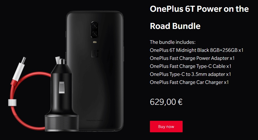 - OnePlus 6T (6 GB RAM + 128 GB stocare) + extra încărcător rapid și cablu USB-C cadou - 549 euro