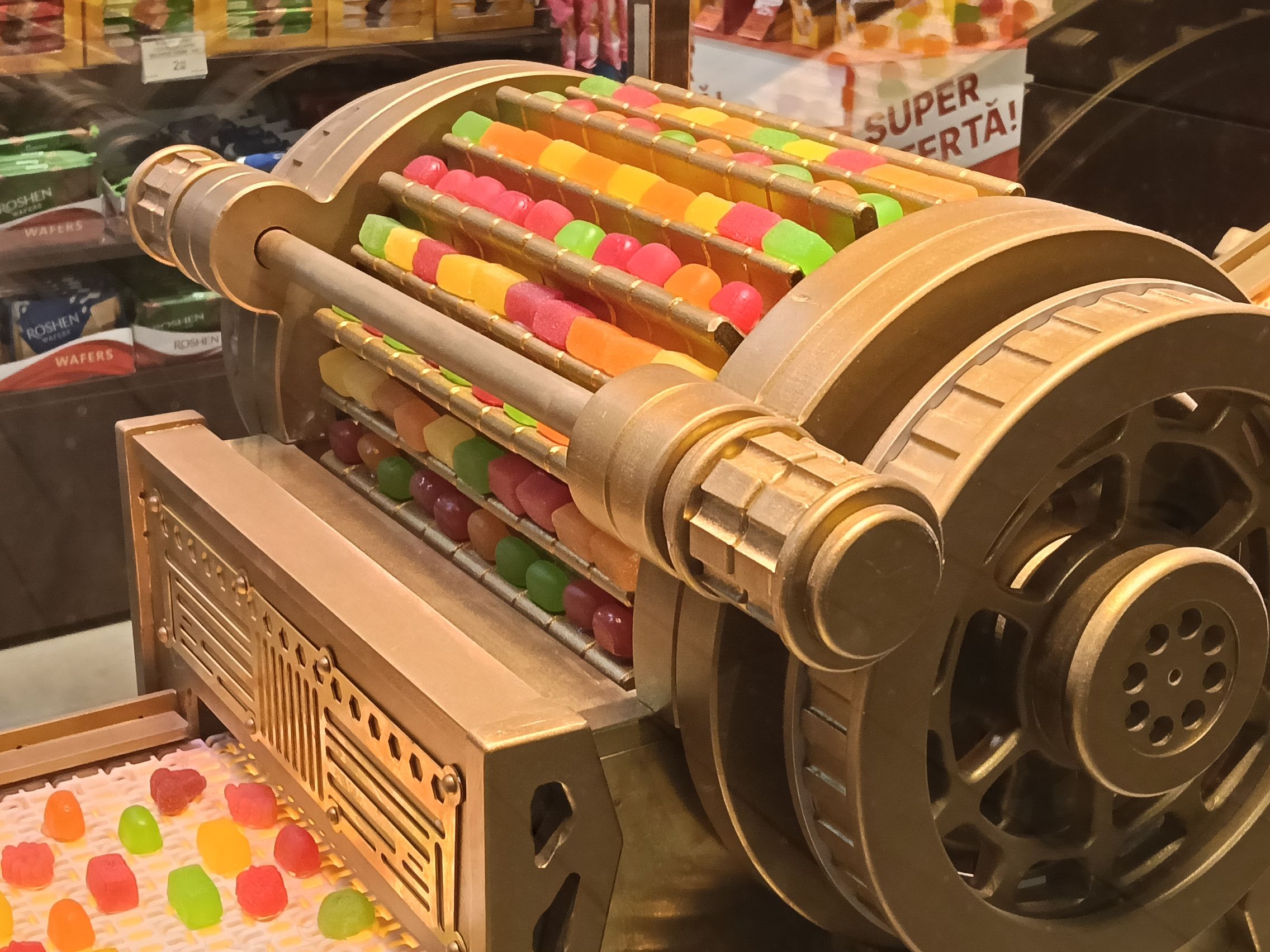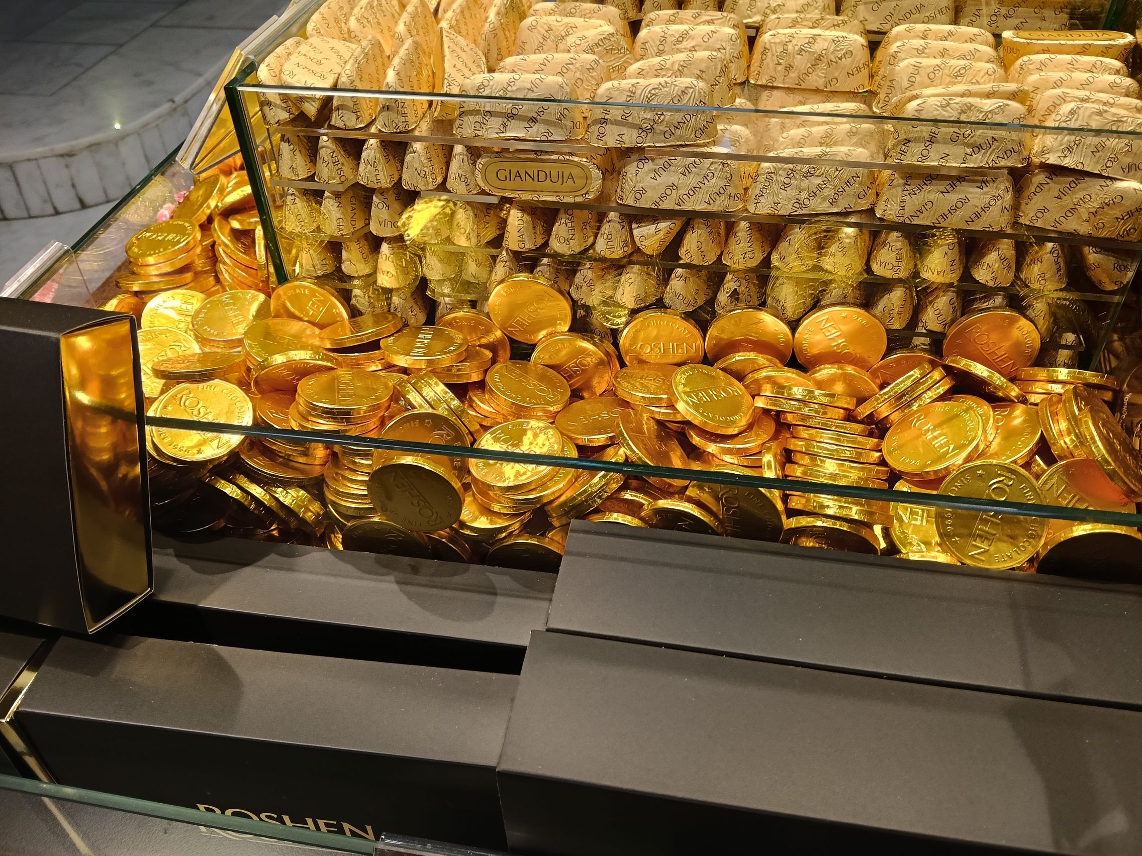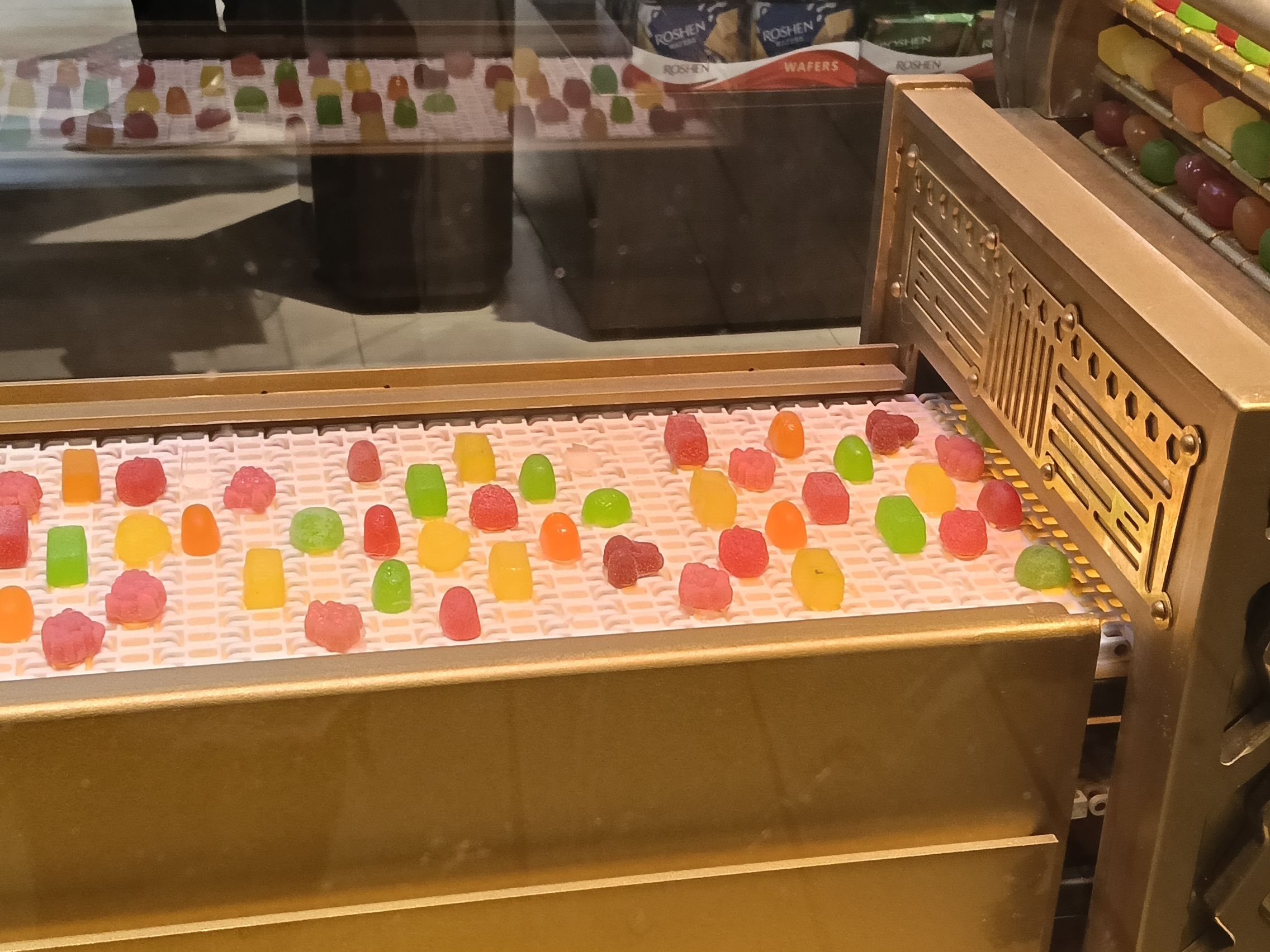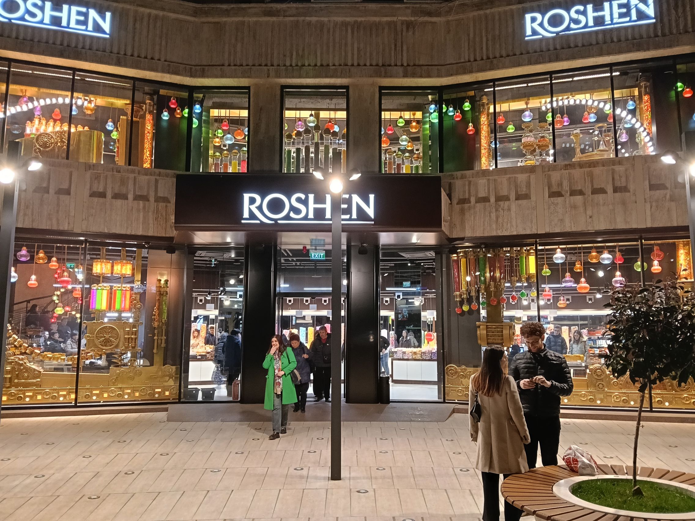 Când se lasa noaptea... mergem după dulciuri. Am fost nu în unul, ci două magazine de dulciuri Roshen. Spirale fabuloase de becuri colorate, tonomate cu bomboane şi drajeuri, un copac sfătos cu ratoni mişcători lângă. Era visul oricărui copil. Aici pot să zic că mă declar foarte mulţumit de culori, în situaţii de iluminare artificială puternică.