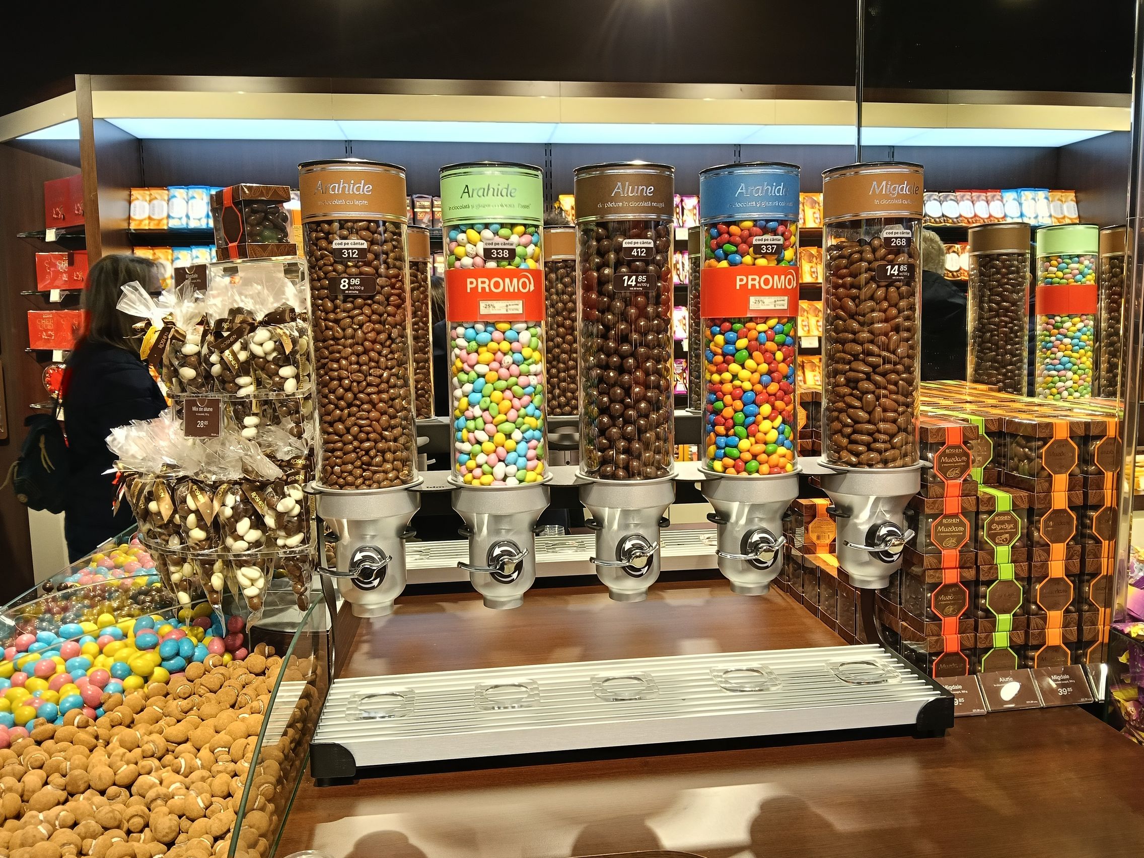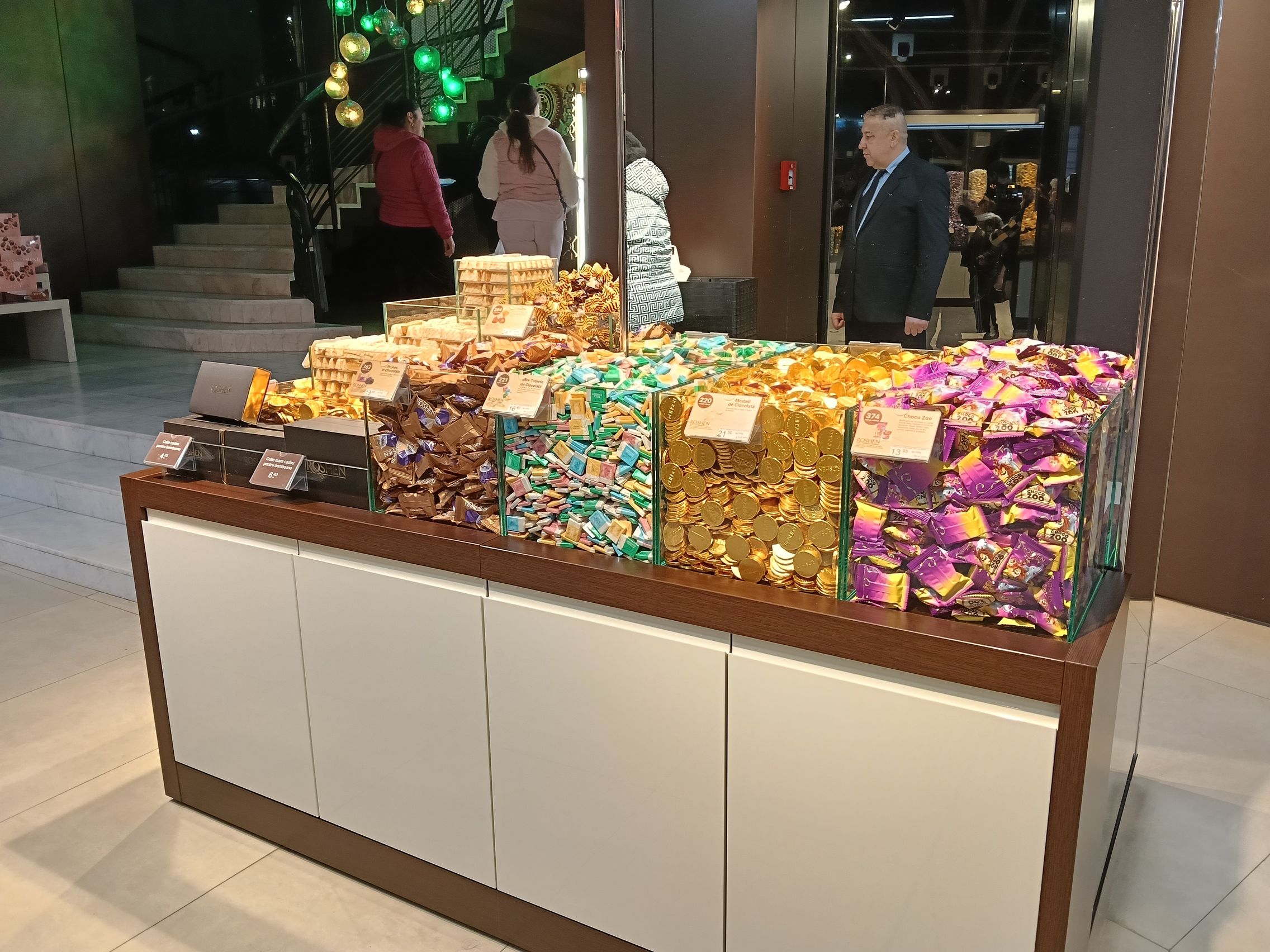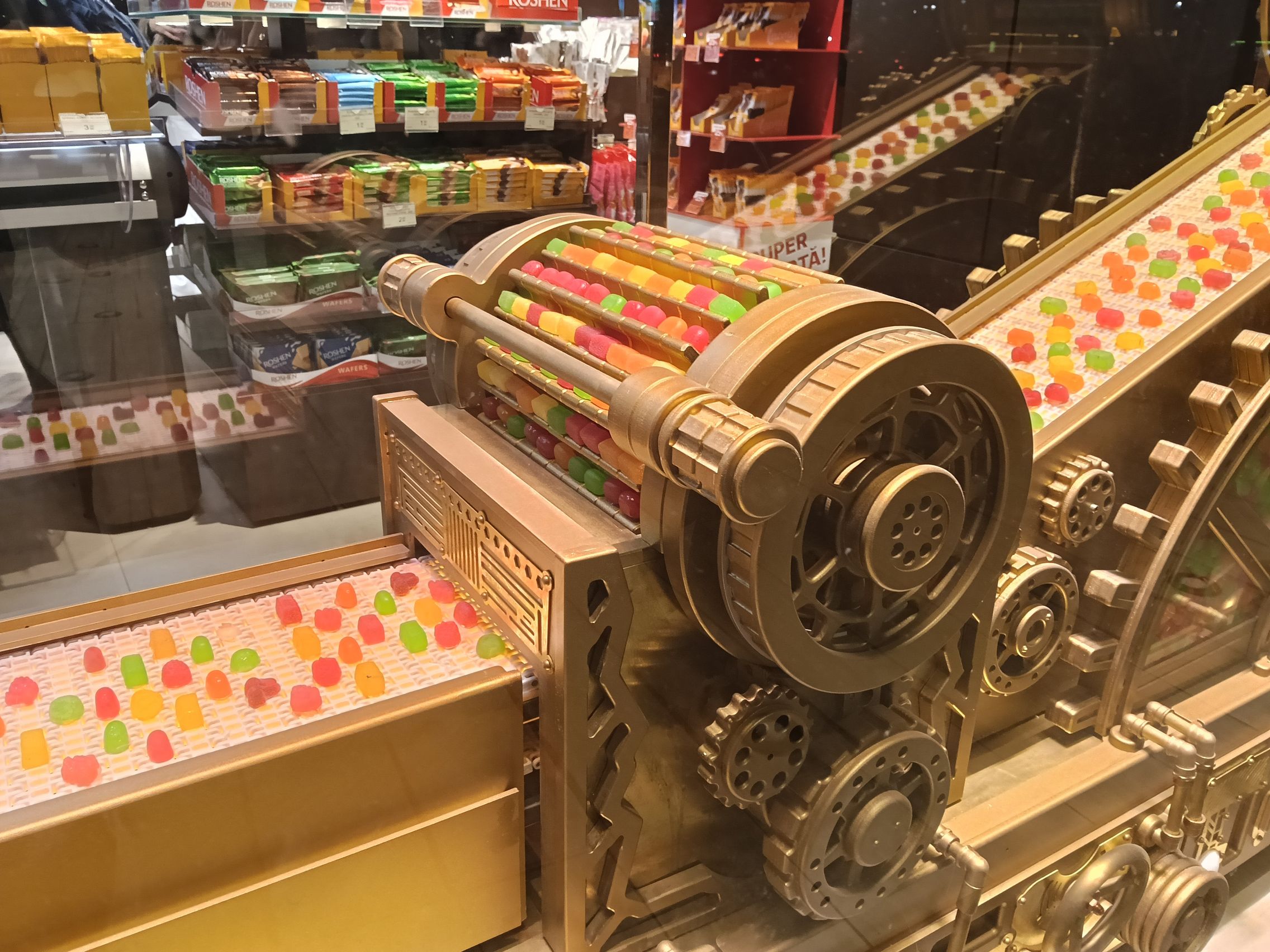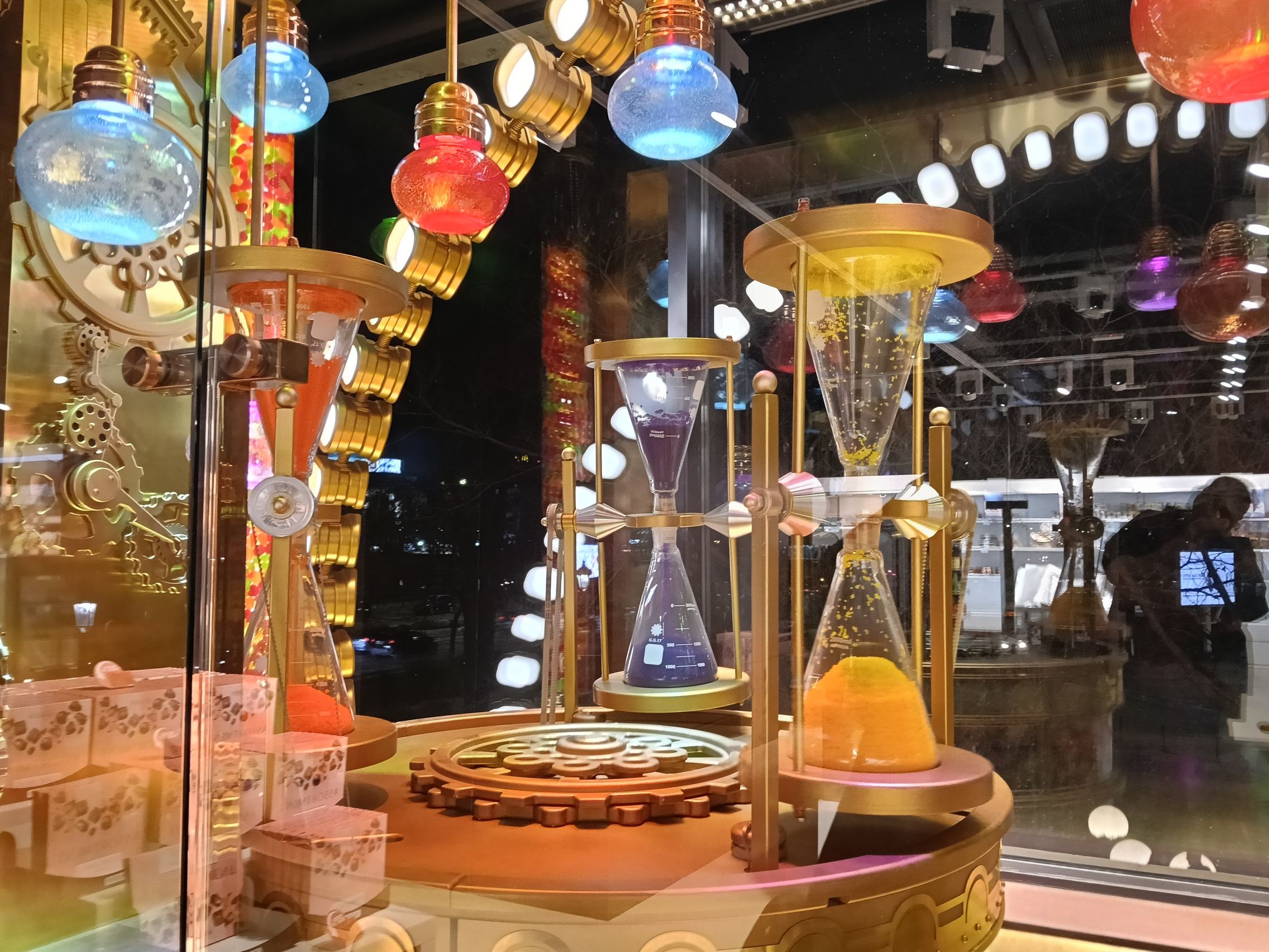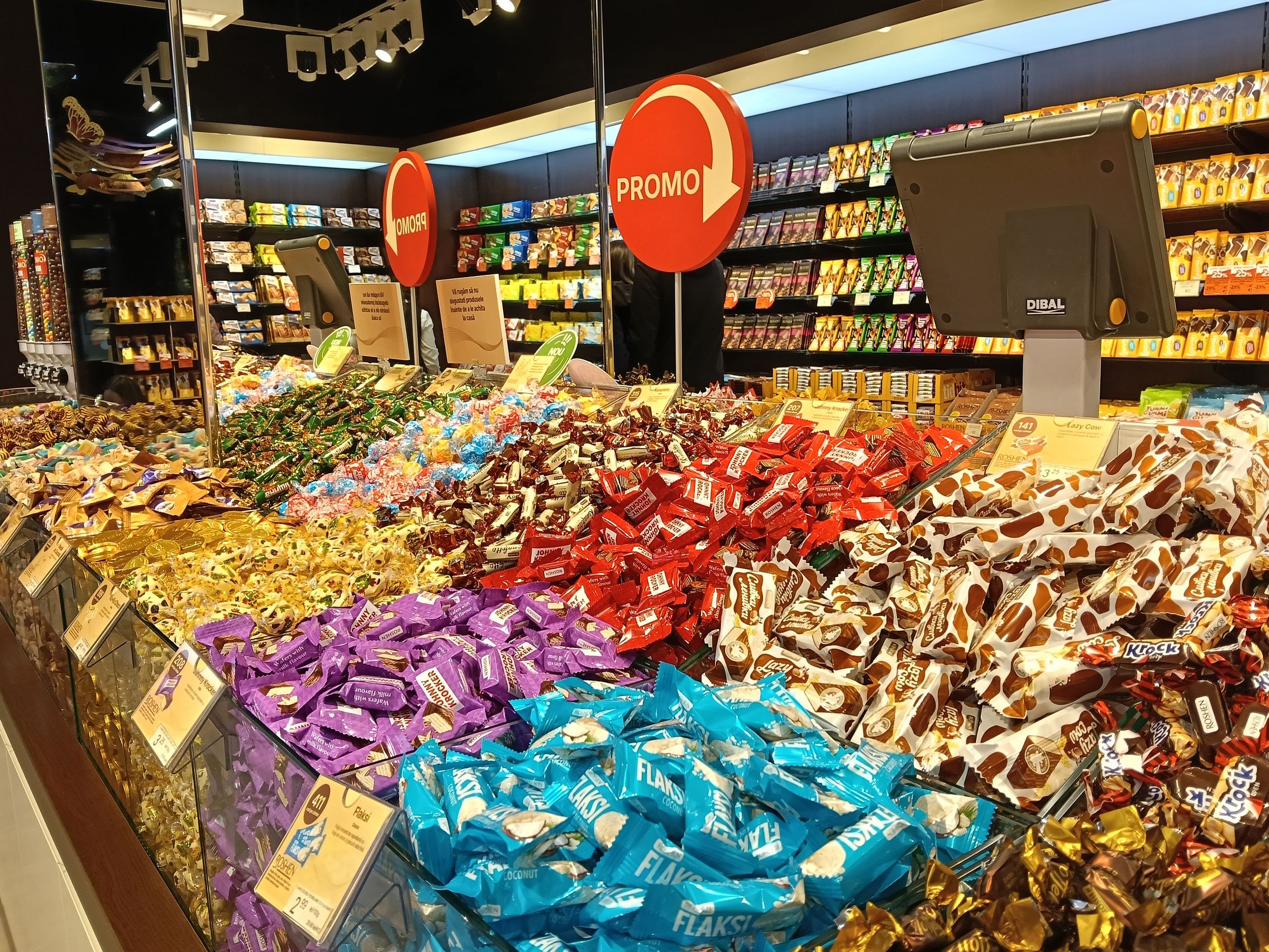 Când se lasa noaptea... mergem după dulciuri. Am fost nu în unul, ci două magazine de dulciuri Roshen. Spirale fabuloase de becuri colorate, tonomate cu bomboane şi drajeuri, un copac sfătos cu ratoni mişcători lângă. Era visul oricărui copil. Aici pot să zic că mă declar foarte mulţumit de culori, în situaţii de iluminare artificială puternică.