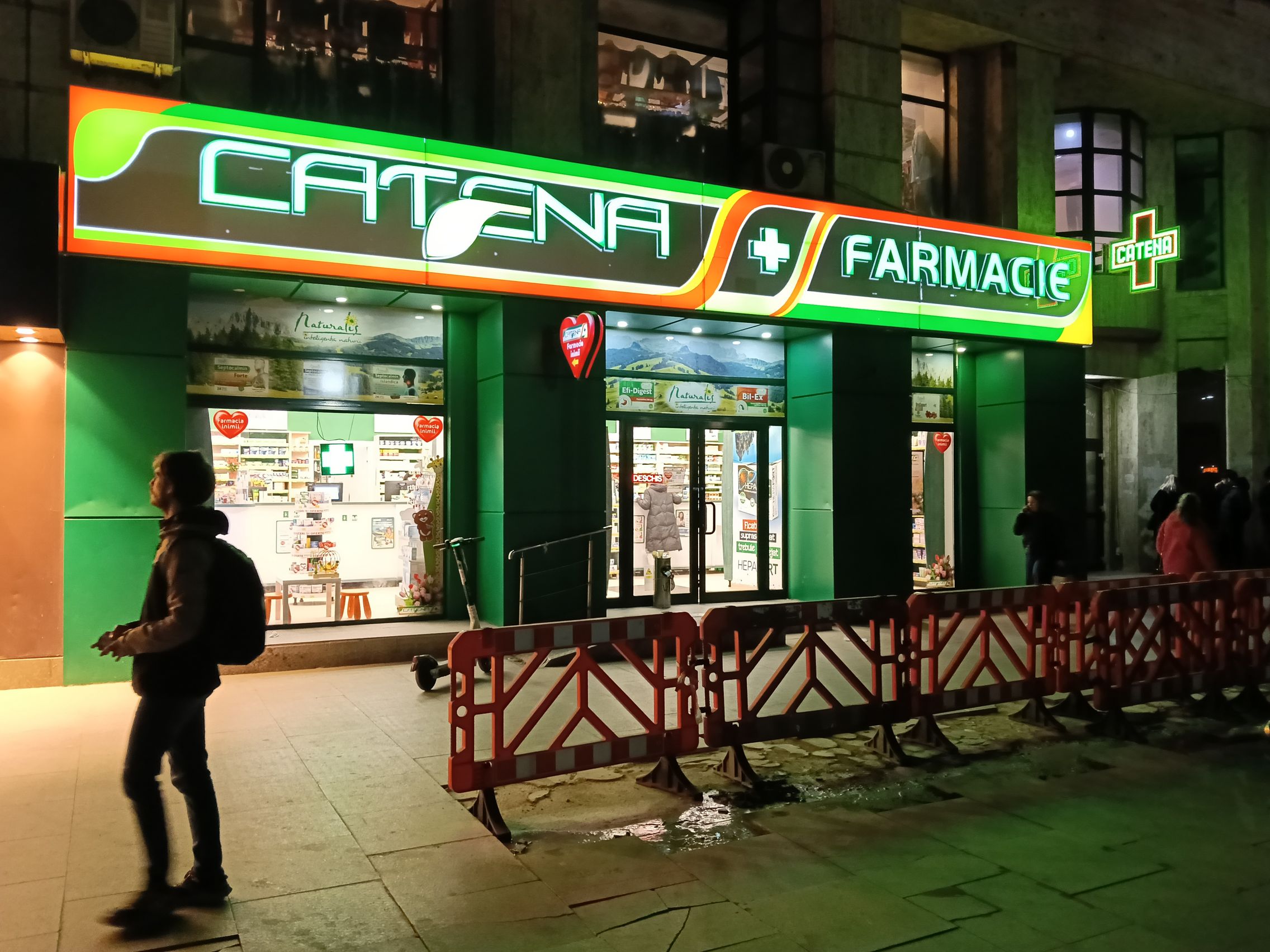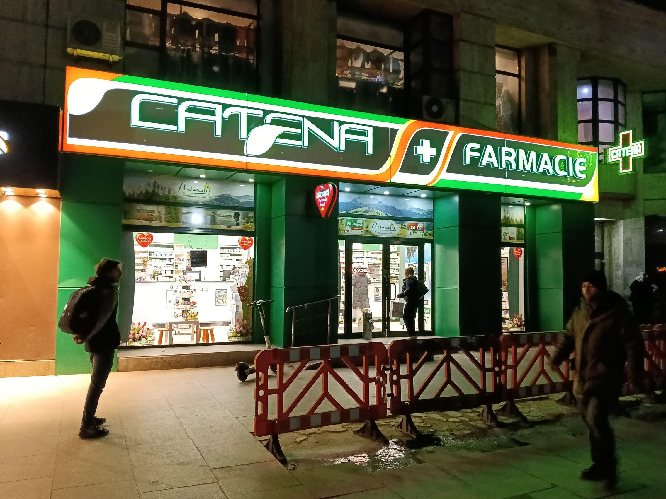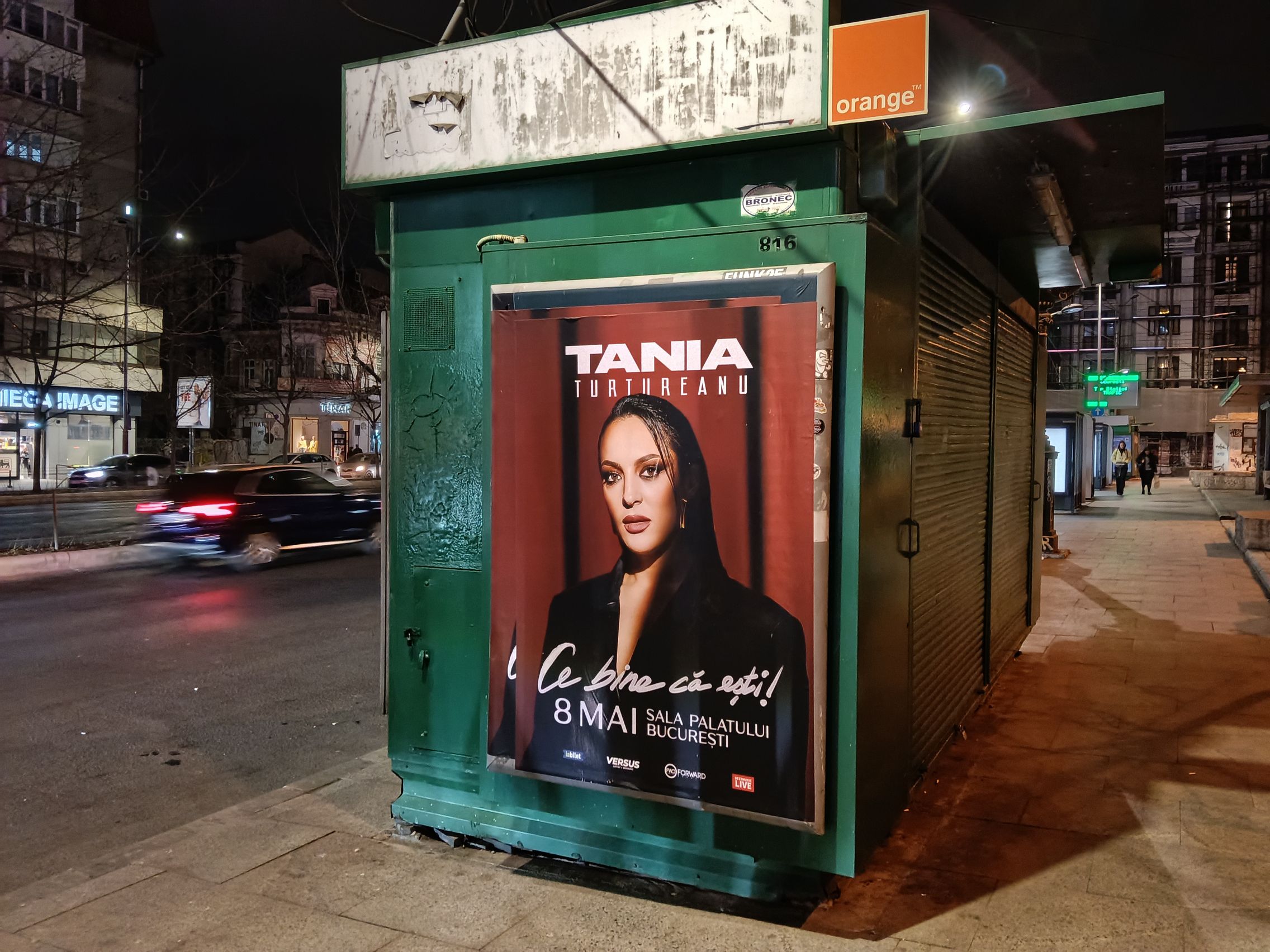 La exterior e posibil să tinzi spre un Night Mode, când luminile stradale sau cele ale restaurantelor din Centrul Vechi sunt prea puternice. Stâlpii de iluminat pot crea halouri, dar le remediază Night Mode. Zoom-ul e mai slab noaptea, era de aşteptat, când nu ai camera tele. Cadrele din zonele mai întunecate precum Catena la Unirii nu sunt chiar un succes, având în vedere că oamenii ies mişcaţi şi că nu captăm suficientă lumină, pentru a fenta zgomotul.