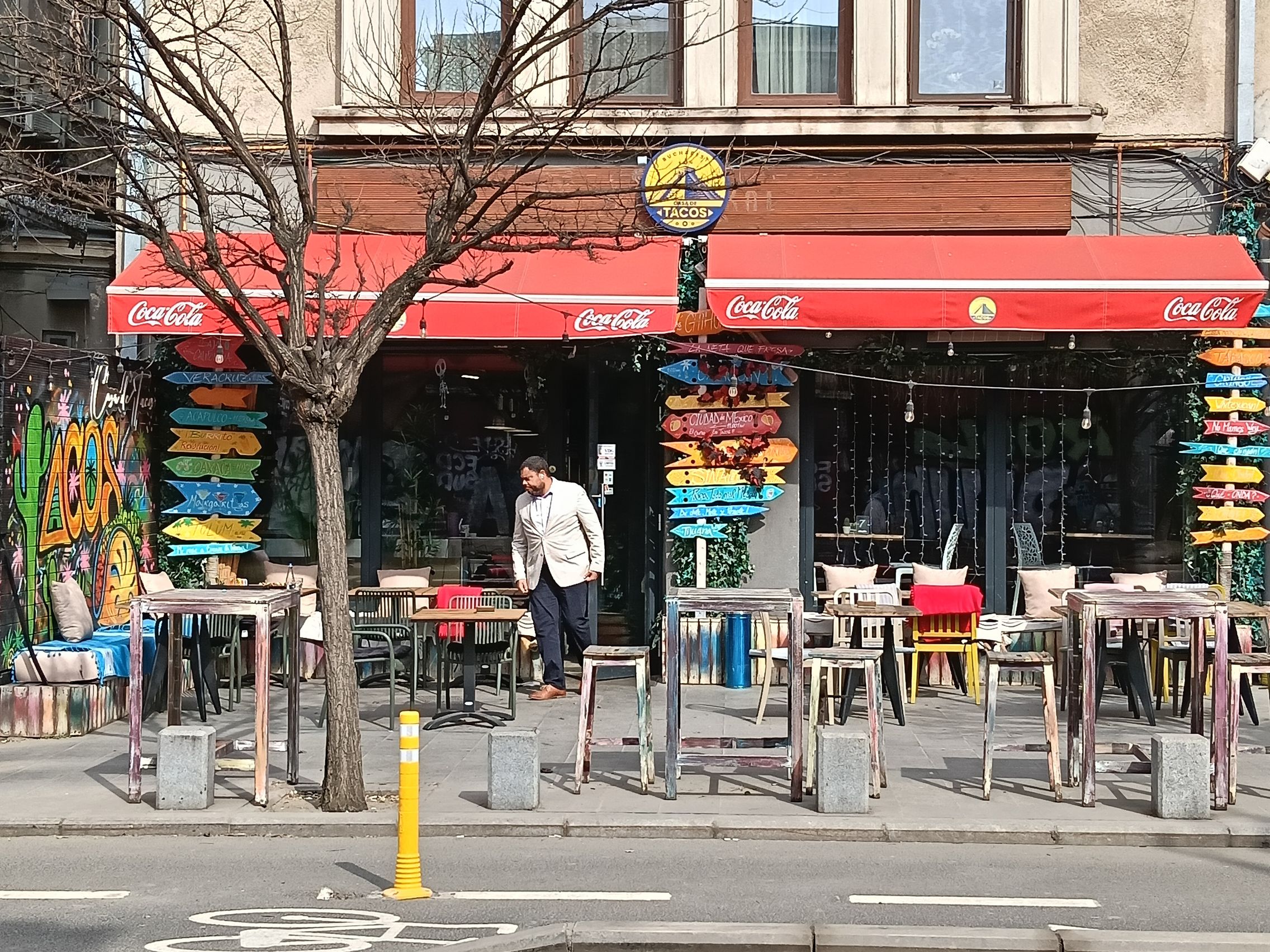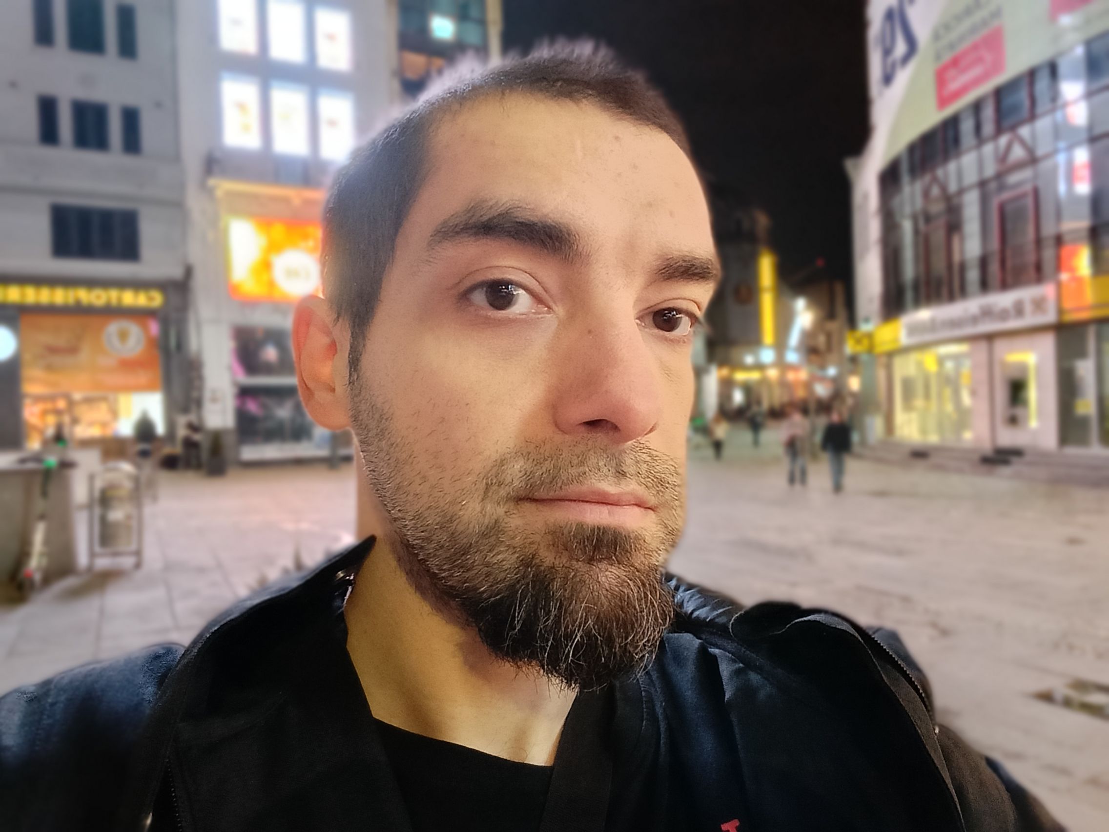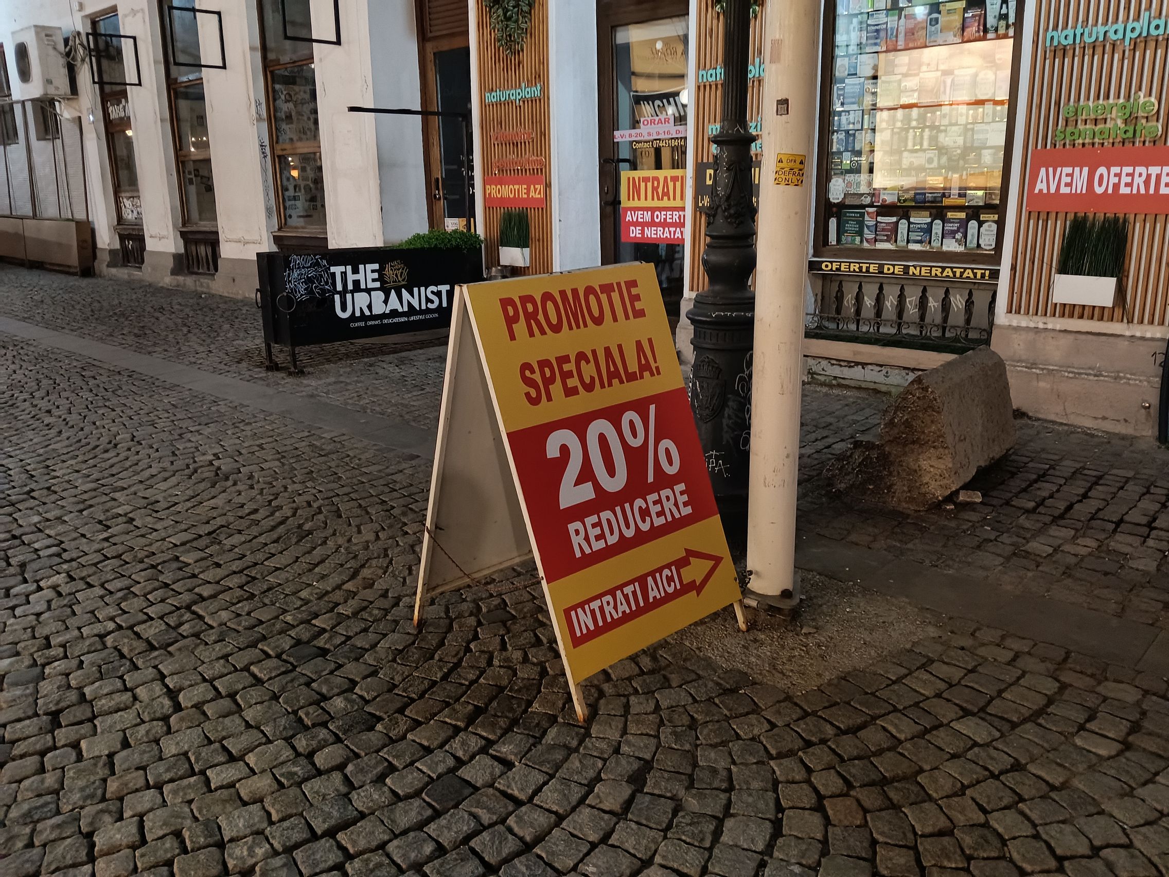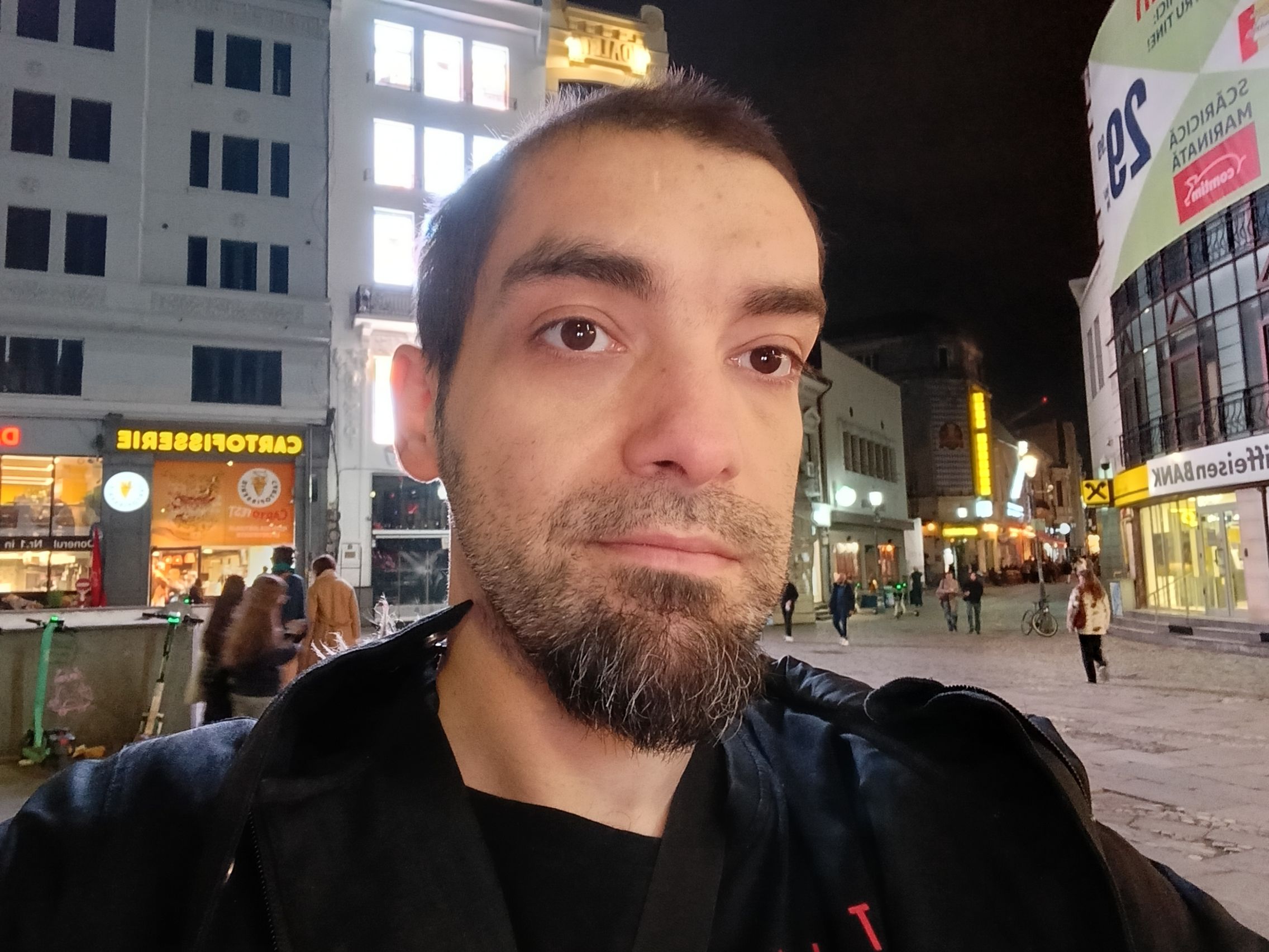 La exterior e posibil să tinzi spre un Night Mode, când luminile stradale sau cele ale restaurantelor din Centrul Vechi sunt prea puternice. Stâlpii de iluminat pot crea halouri, dar le remediază Night Mode. Zoom-ul e mai slab noaptea, era de aşteptat, când nu ai camera tele. Cadrele din zonele mai întunecate precum Catena la Unirii nu sunt chiar un succes, având în vedere că oamenii ies mişcaţi şi că nu captăm suficientă lumină, pentru a fenta zgomotul.