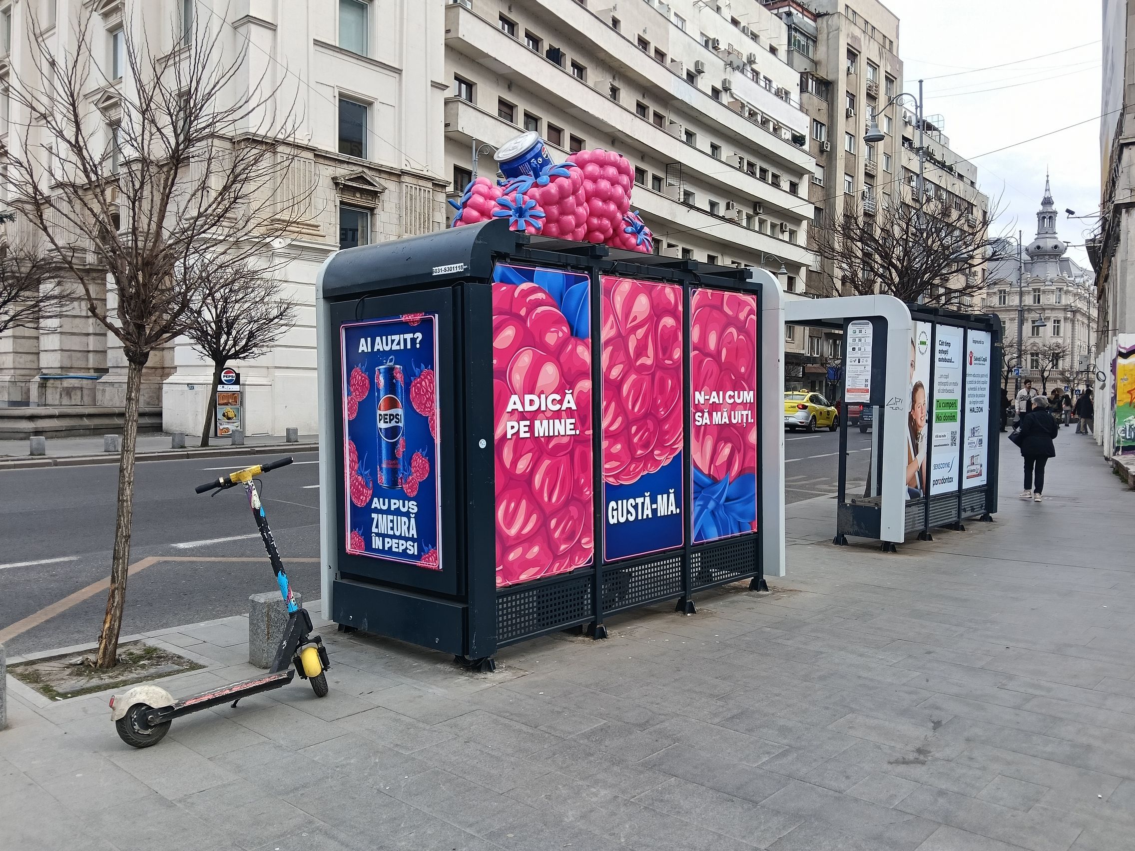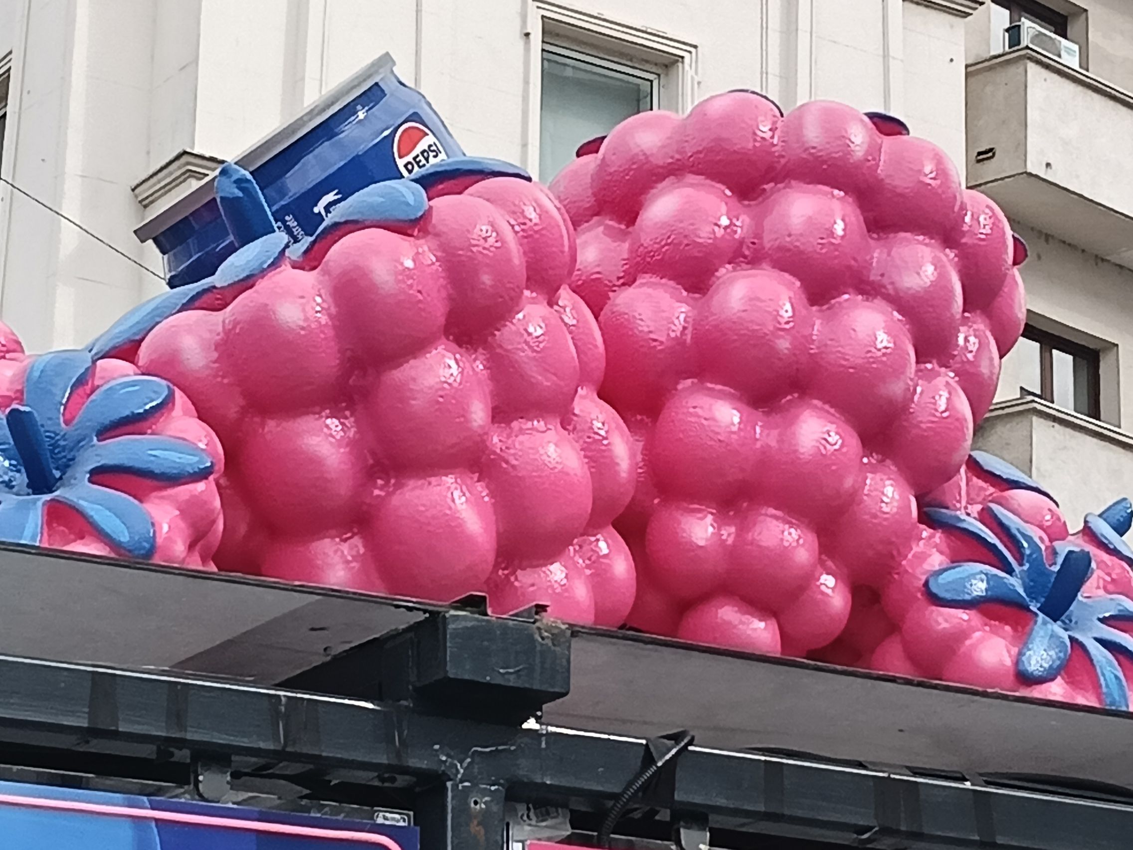 Încheiem şi cu nişte culori savuroase, la reclama Pepsi cu Zmeură, în acea staţie de autobuz decorată de-a lungul anilor de Stranger Things, Bridgerton, McDonald's şi alte nebunii. Şi Clădirea CEC-ului şi vecinii săi în reconstrucţie arată catchy pentru un album de turist. Şi la closeup am avut surprize plăcute, nu m-aş arunca să le numesc Macro, doar closeup-uri foarte corect focalizate.