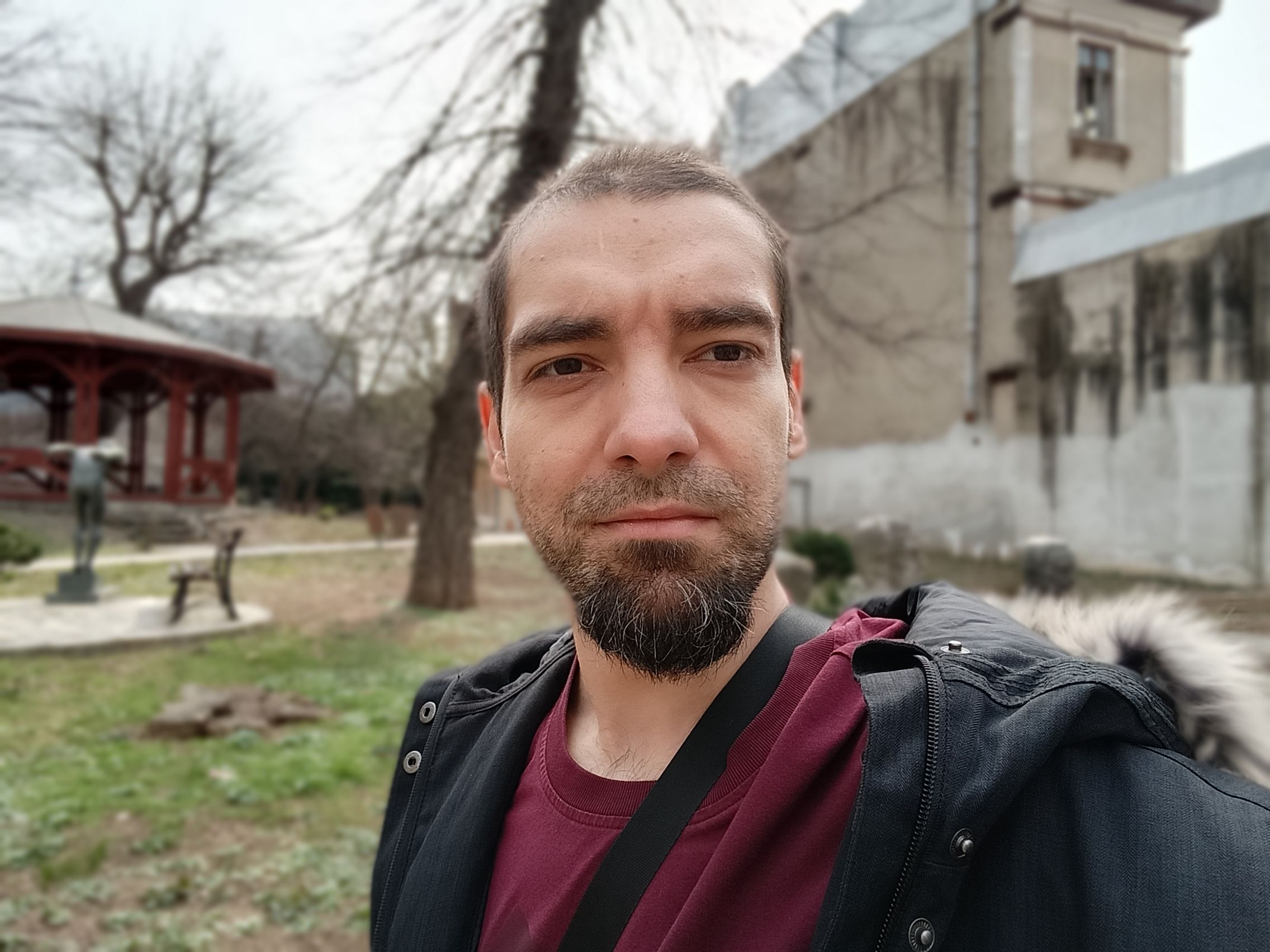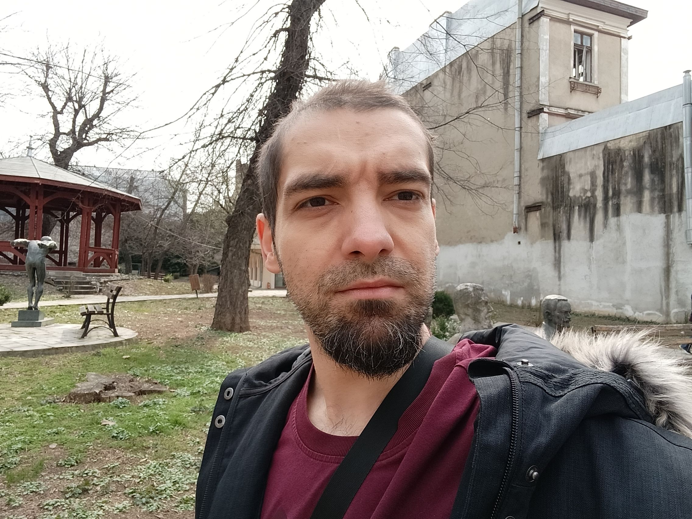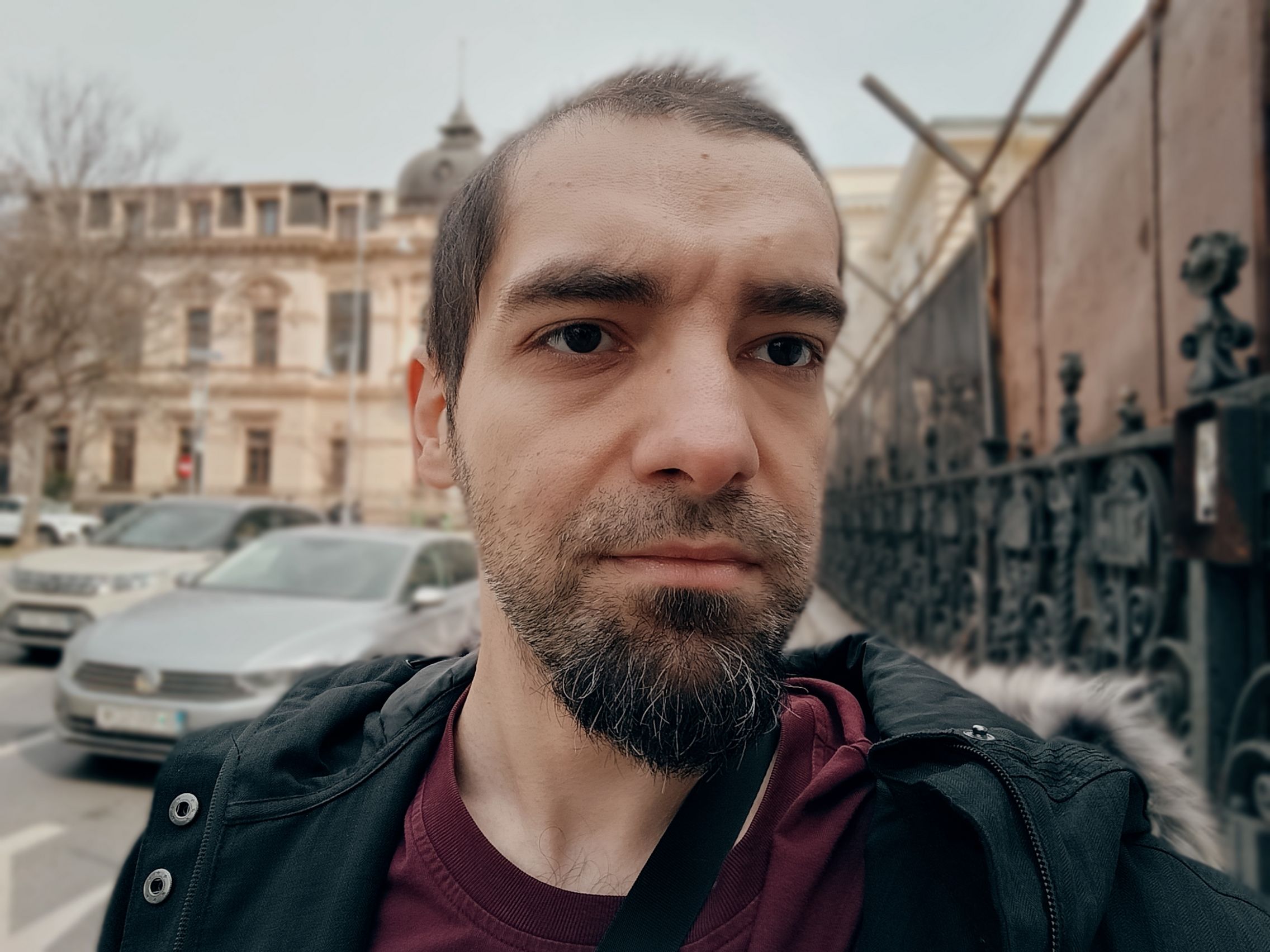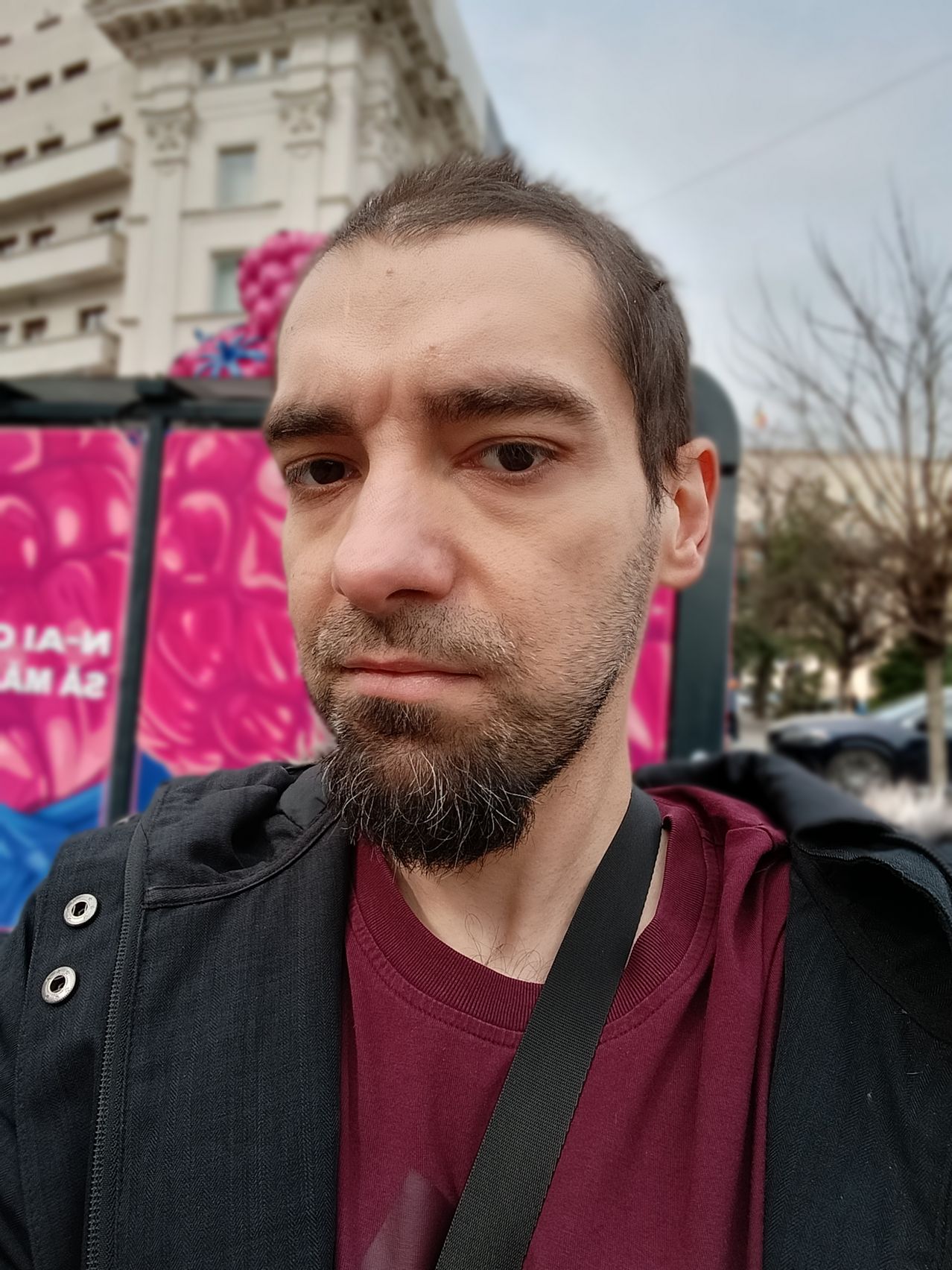 Selfie-urile? Expresive, focalizate decent, dar fără detalii prea multe în fundal. Bokeh corect aplicat, subliniind detaiile faciale, că gropiţe, dungi de expresie, riduri, încruntări sau zâmbete. Sunt şi multe efecte cu care să te joci, dar atenţie la expunerea fundalului. Luciul maşinilor de pe Calea Victoriei e veridic, nimic de rău de zis aici, dar obiectele de la distanţă, dacă nu ai ales captura Hi Res vor păli că detalii.