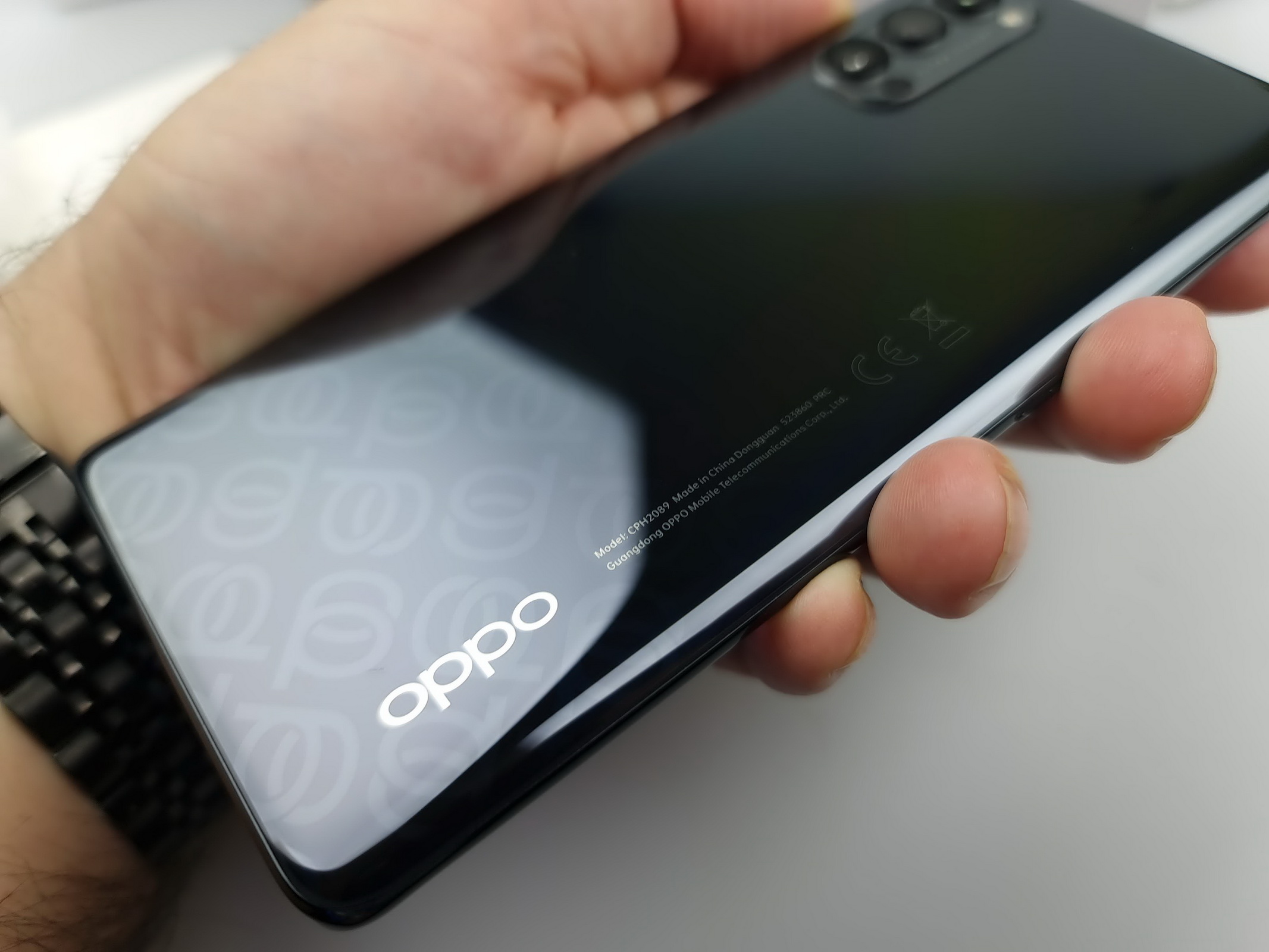 Formatul îmi aminteşte mult de OnePlus 8, ceea ce nu e neapărat o coincidenţă, Oppo şi OnePlus provenind de sub aceeaşi umbrelă a gigantului BBK. E totuşi mai mic, mai subţire şi mai cochet decât un OnePlus 8.