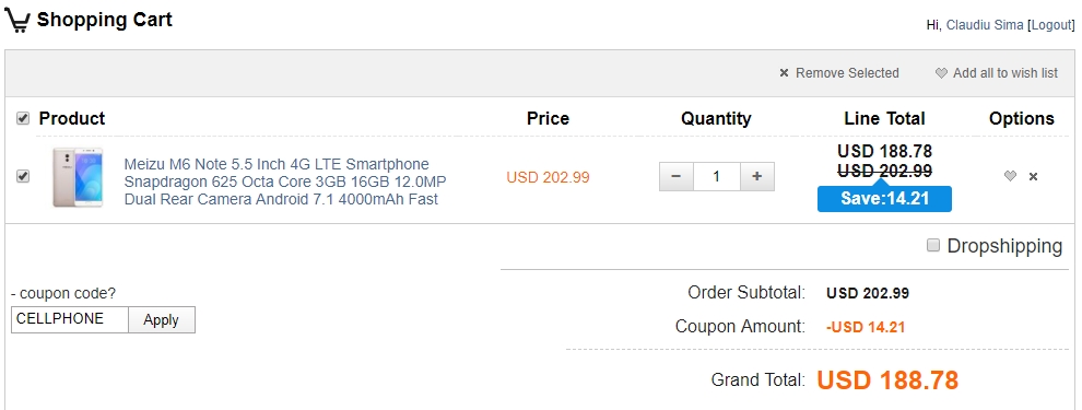 Telefonul este Meizu M6 Note și folosind codul promoțional CELLPHONE (valabil pentru toate smartphone-urile) îl puteți achiziționa la suma de 188.78 dolari. Ca dotări produsul de față se prezintă chiar bine, oferind un display Full HD de 5.5 inch, procesorul octa-core Qualcomm Snapdragon 625, 3 GB RAM, 16 GB spațiu intern de stocare și suport pentru atașarea unui card microSD de până la 256 GB.