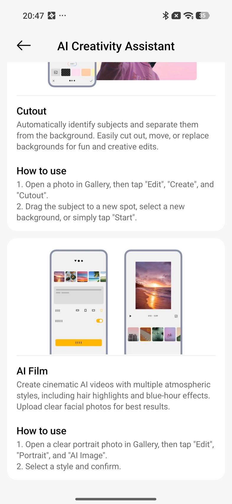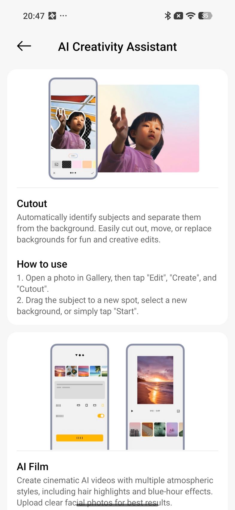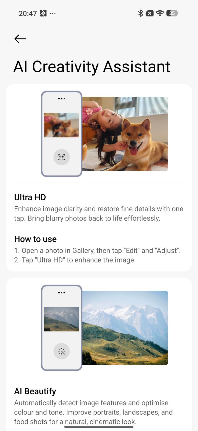 - AI Creativity Assistant (opțiuni Ultra HD, AI Beautify, AI Image Expansion, AI Erase Pro, Cutout, AI Film)