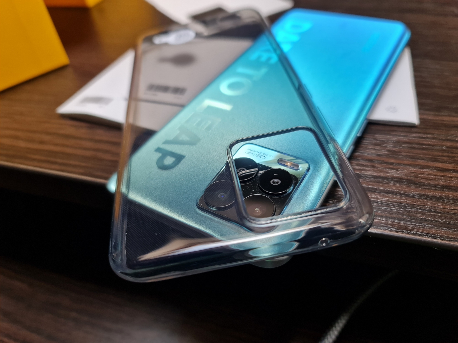 Ce primim în cutia lui Realme 8 Pro? O husă transparentă şi flexibilă, manual, cheiţa pentru sloturi, cablu USB-C la USB-A şi un încărcător (are nevoie de adaptor). Telefonul are o folie protectoare pre aplicată din fabrica pe ecran.