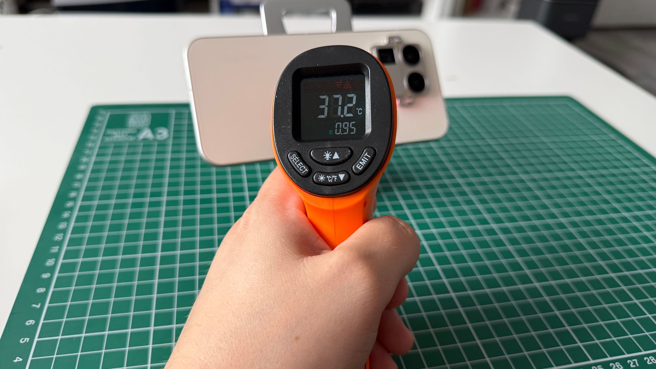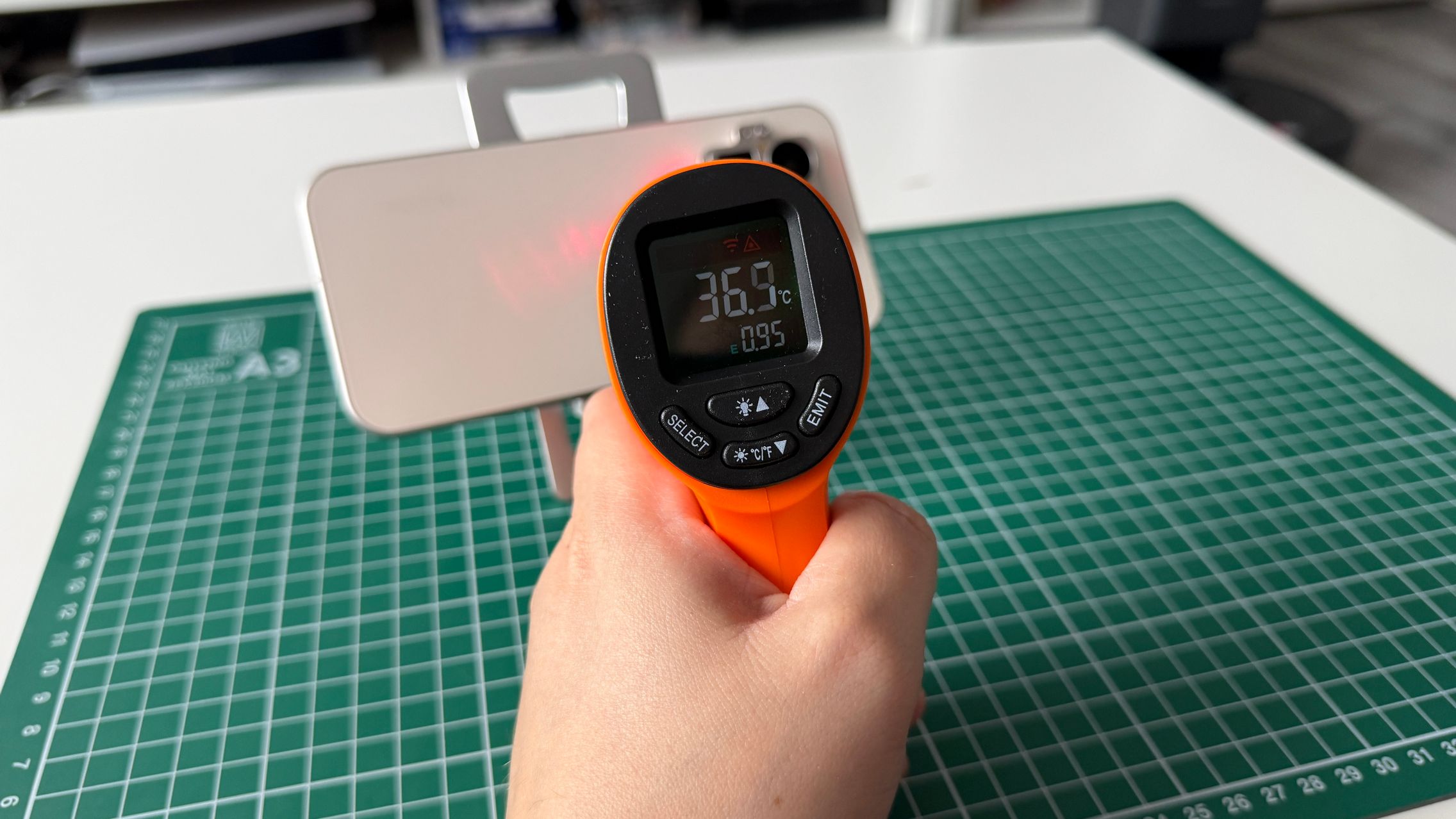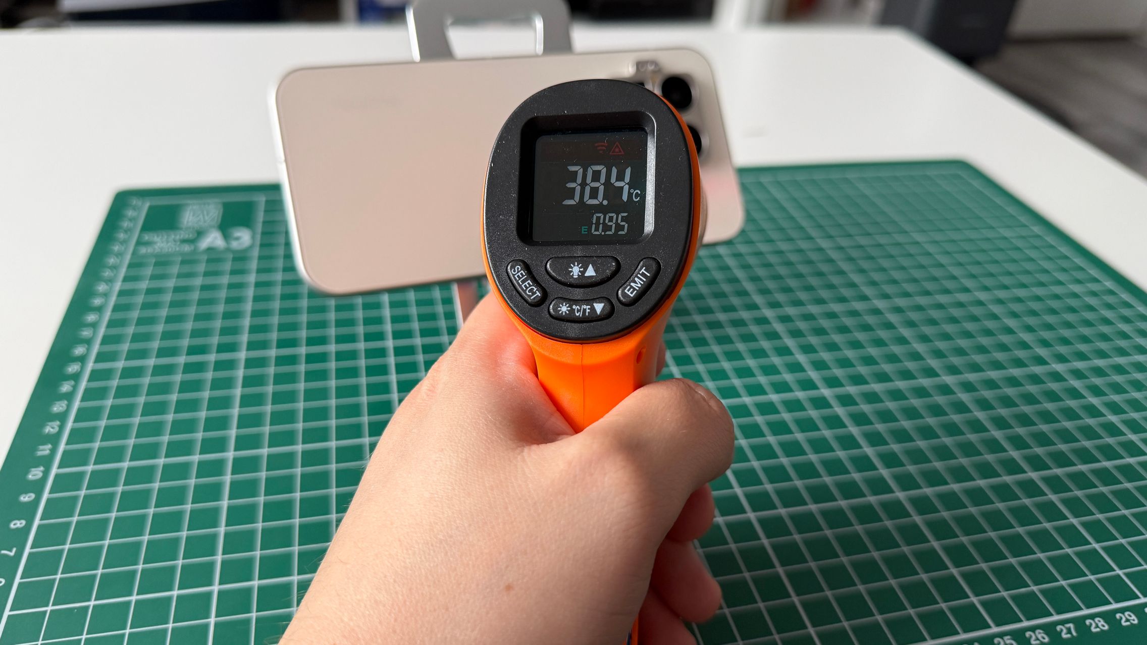 La testele noastre de temperatură am prins 38.4 grade Celsius în jocuri şi 35.6 în benchmark-uri, măsurate la exteriorul telefonului.