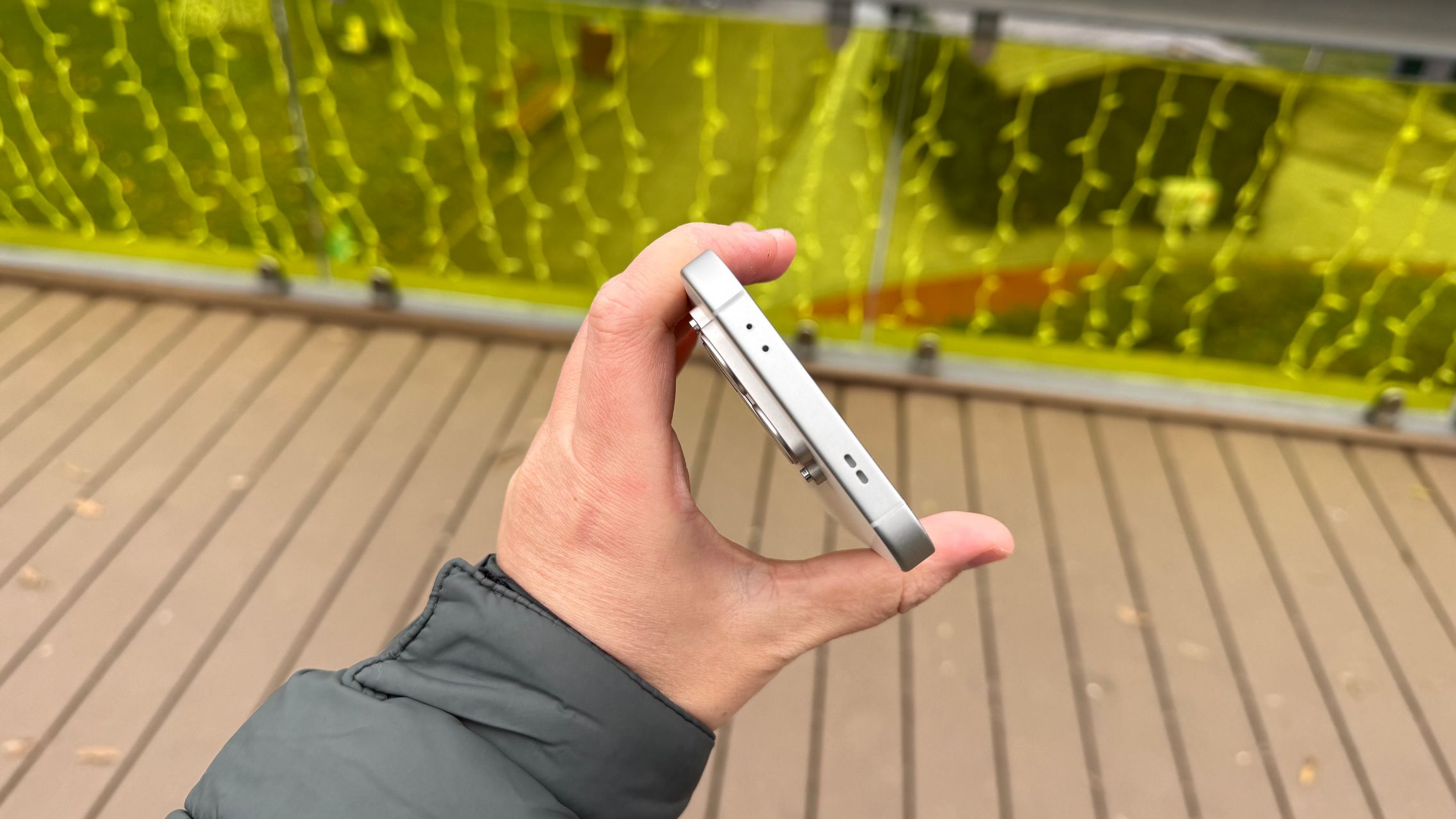 Maosară 8.2 mm în talie şi cântăreşte 214 grame, fiind masiv după accepţiunea modernă. E cu doar 1 mm mai scurt decât un S25 Ultra, la 161.8 mm, deşi are ecranul mai mic, la 6.79 inch versus 6.9 inch pe S25 Ultra. Micile şuruburi torx se pot scoate din spate şi poţi să îi aplici o mască nouă camerei. O faci din circulară pătrată şi mai există şi o versiune angulară transparentă.