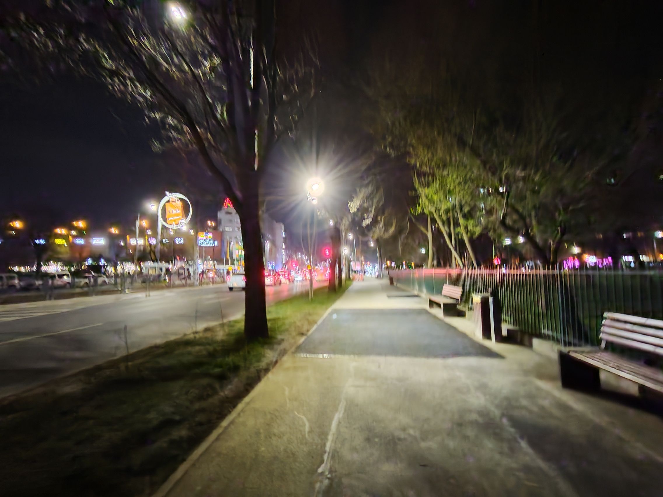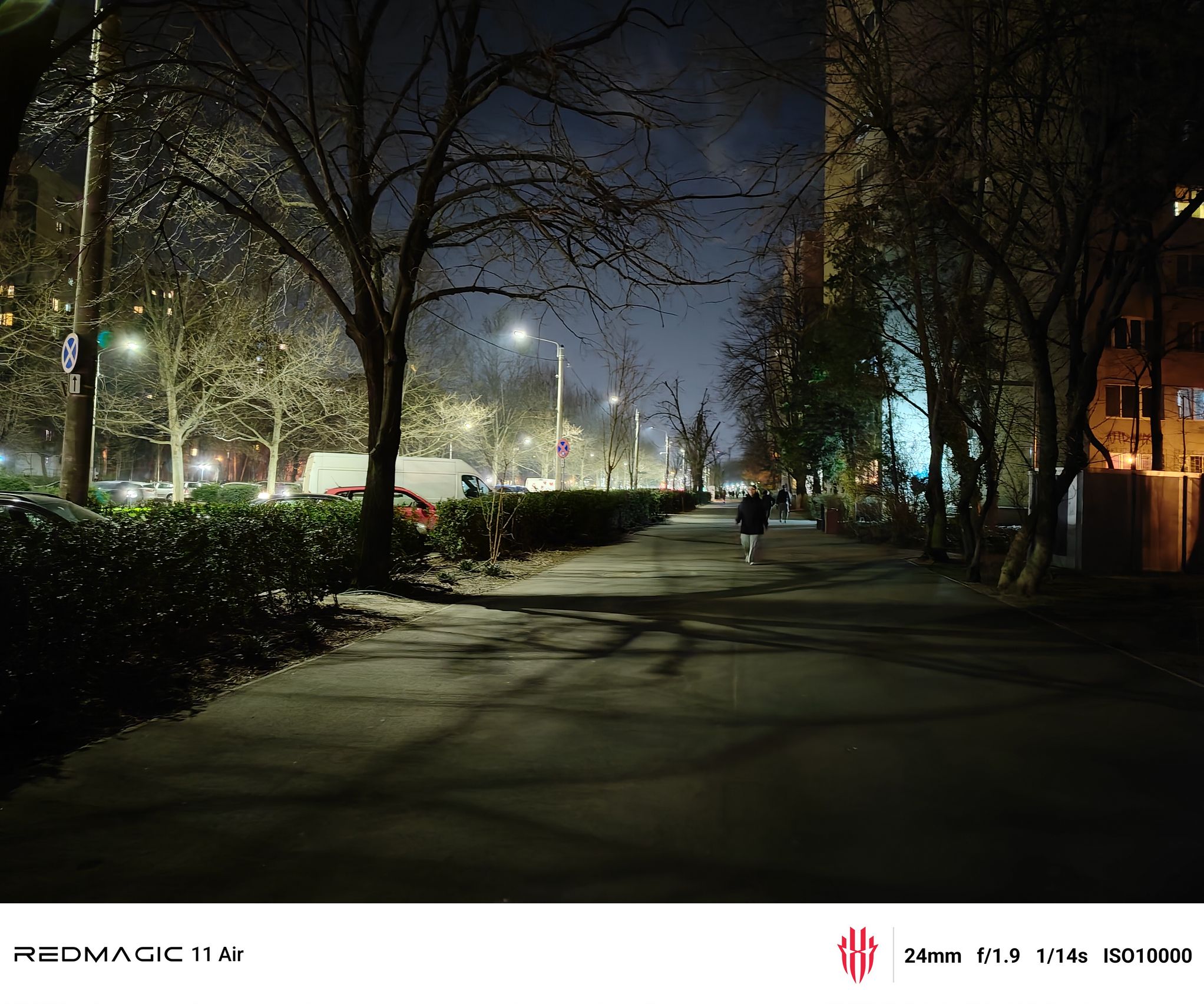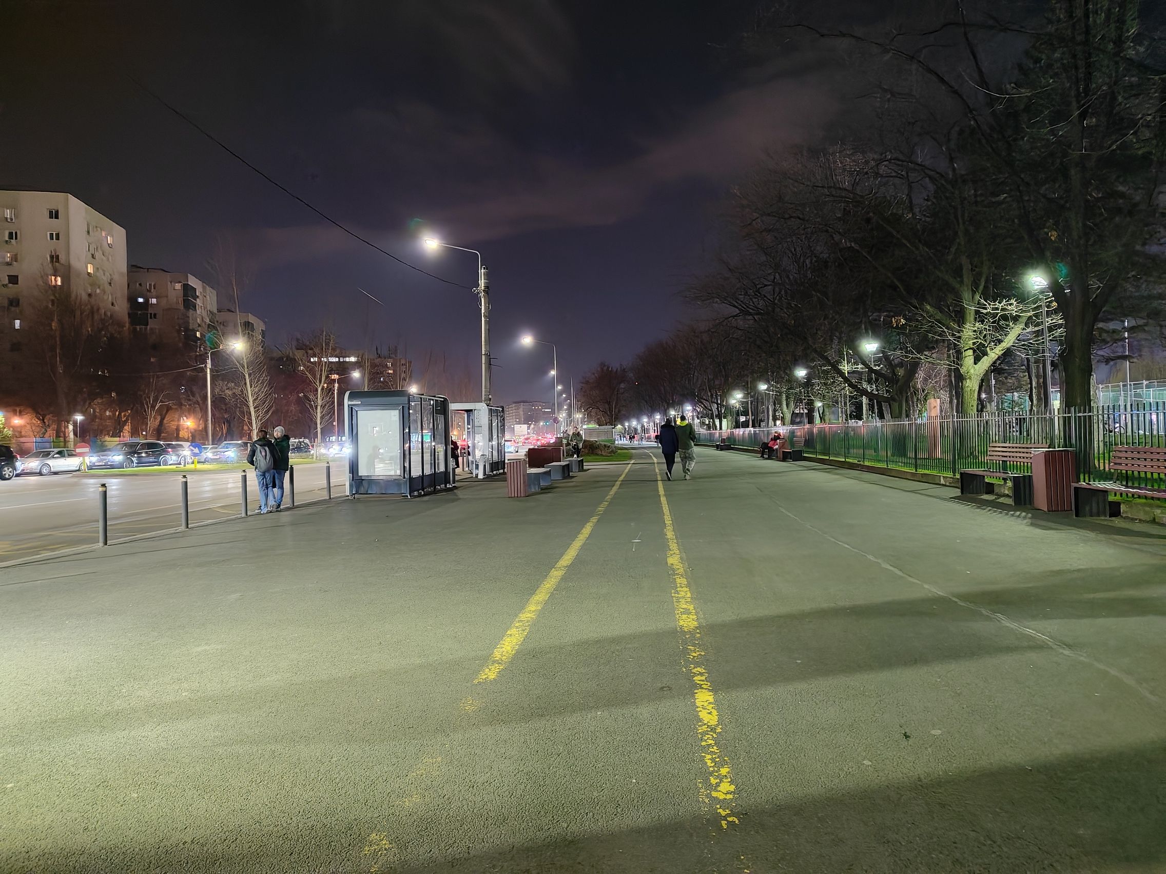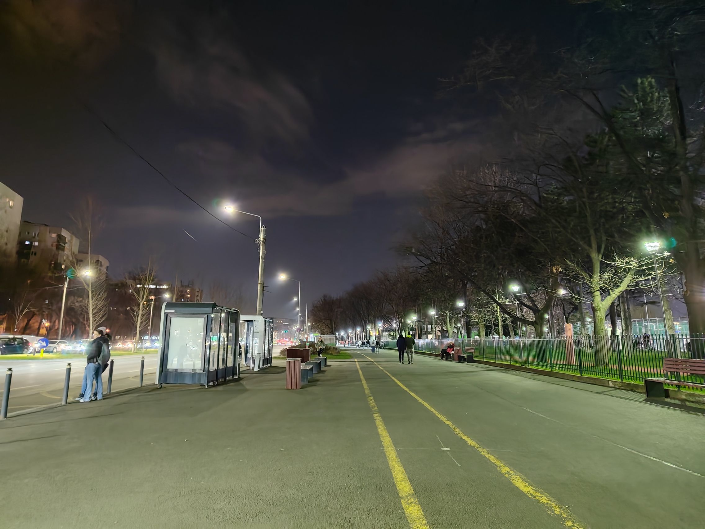 Panoramarea se mai îngâtuie, iar pe alocuri HDR-ul e bulversat și lasă zone în beznă. Focalizarea e chiar ok în comparație cu restul. Noaptea cadrul tremură masiv la întuneric, e zgomot, reflexii și nu m-aș vedea folosind camera nici de pe loc. La nivel de entry-level 2026 pe timp de noapte din păcate...