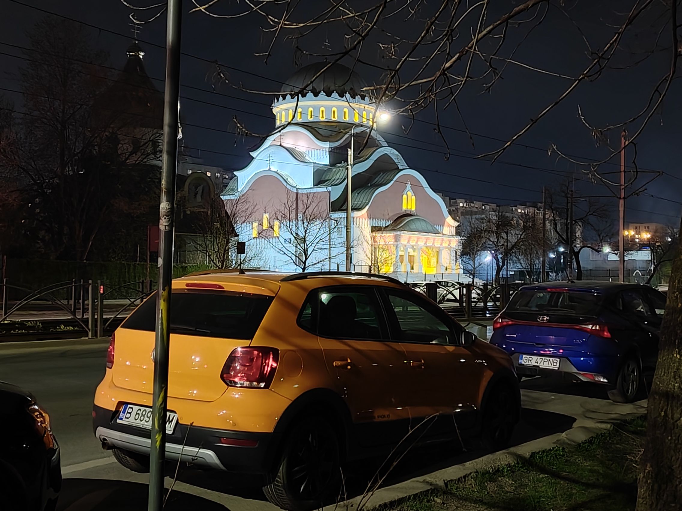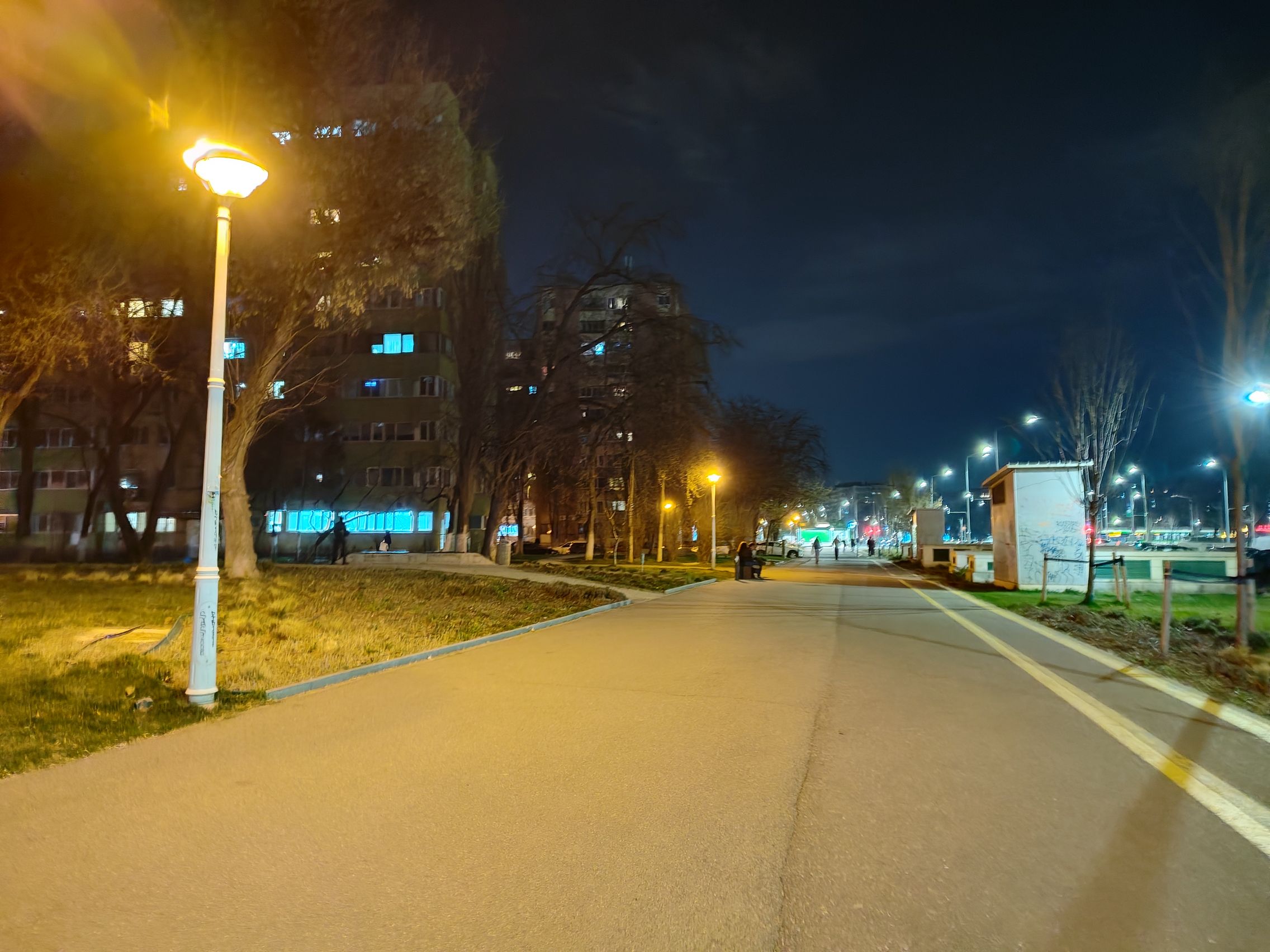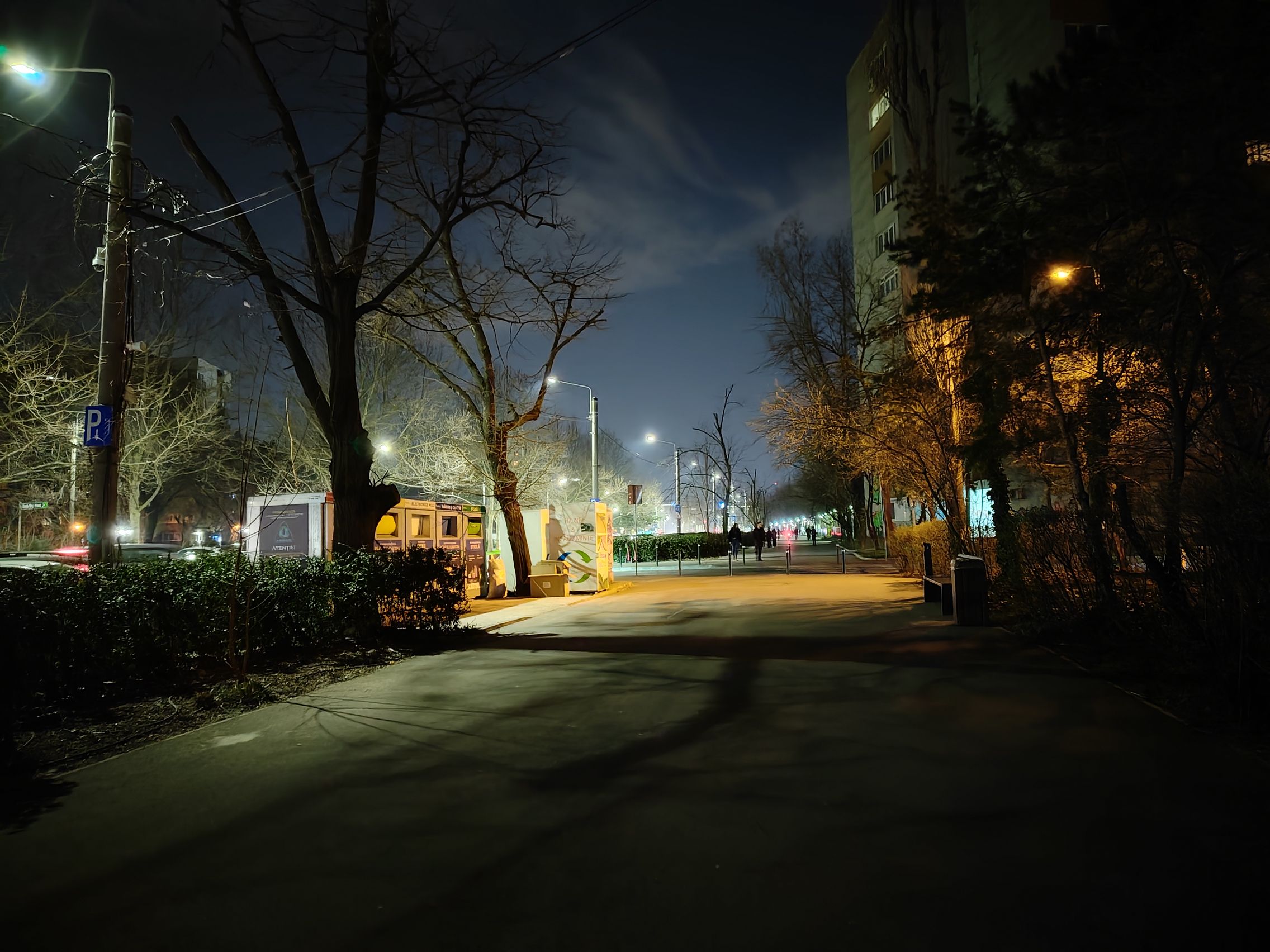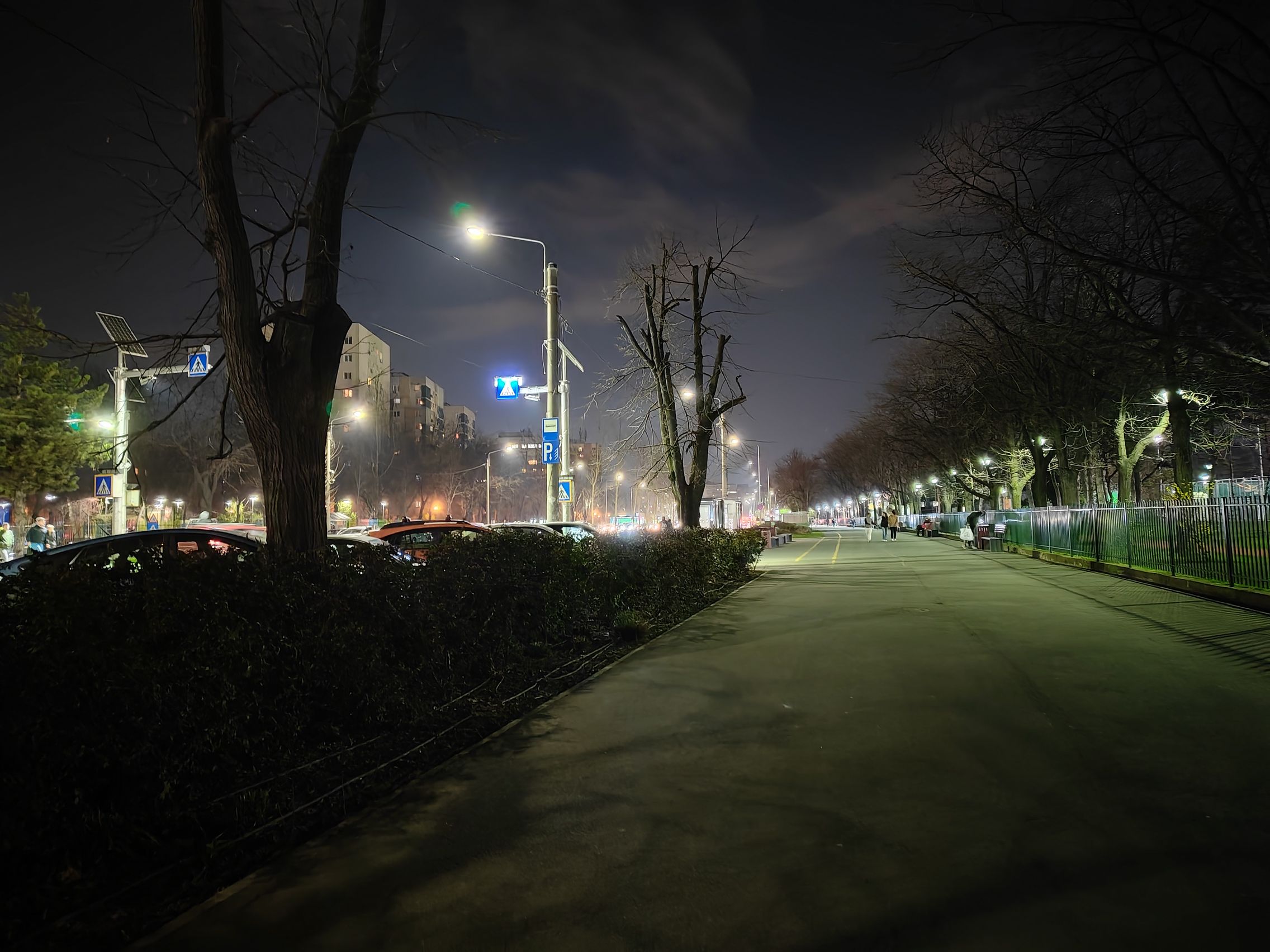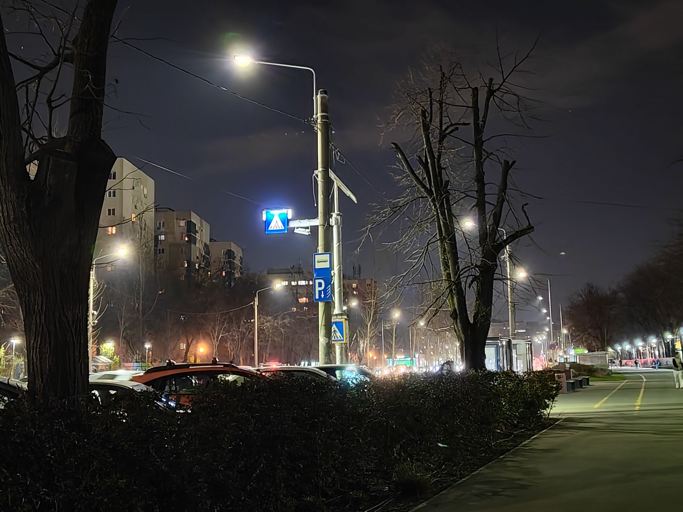 Fotografiile făcute noaptea sunt decente, dar trebuie să ai răbdare și o mână stabilă până când Night Mode-ul își face treaba. Ultrawide-ul e fantomatic totuși, ca o noapte de Halloween. De selfie-uri nu prea se pune problema și mai bine renunți la idee. Sunt și halouri mari uneori, exagerate. O cameră doar bunicică de pe loc noaptea și musai să nu te grăbești.