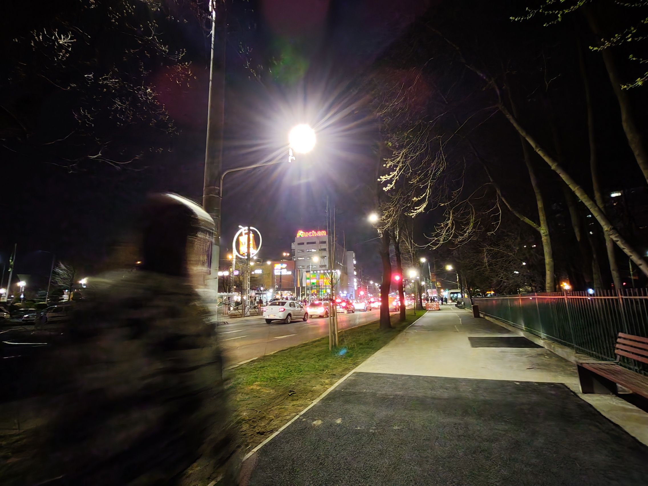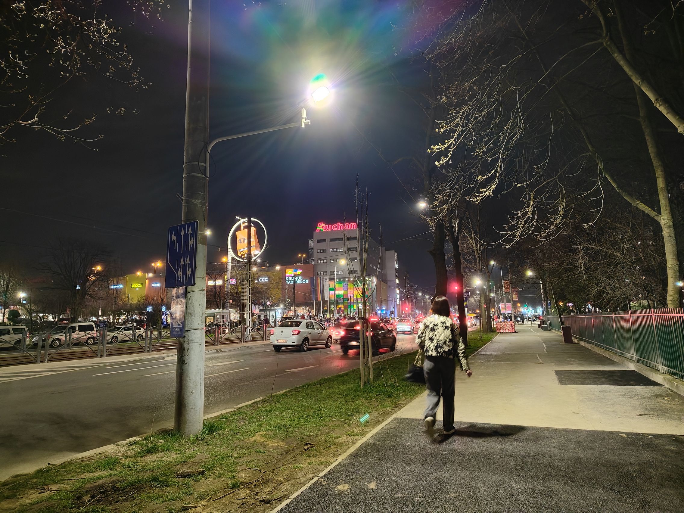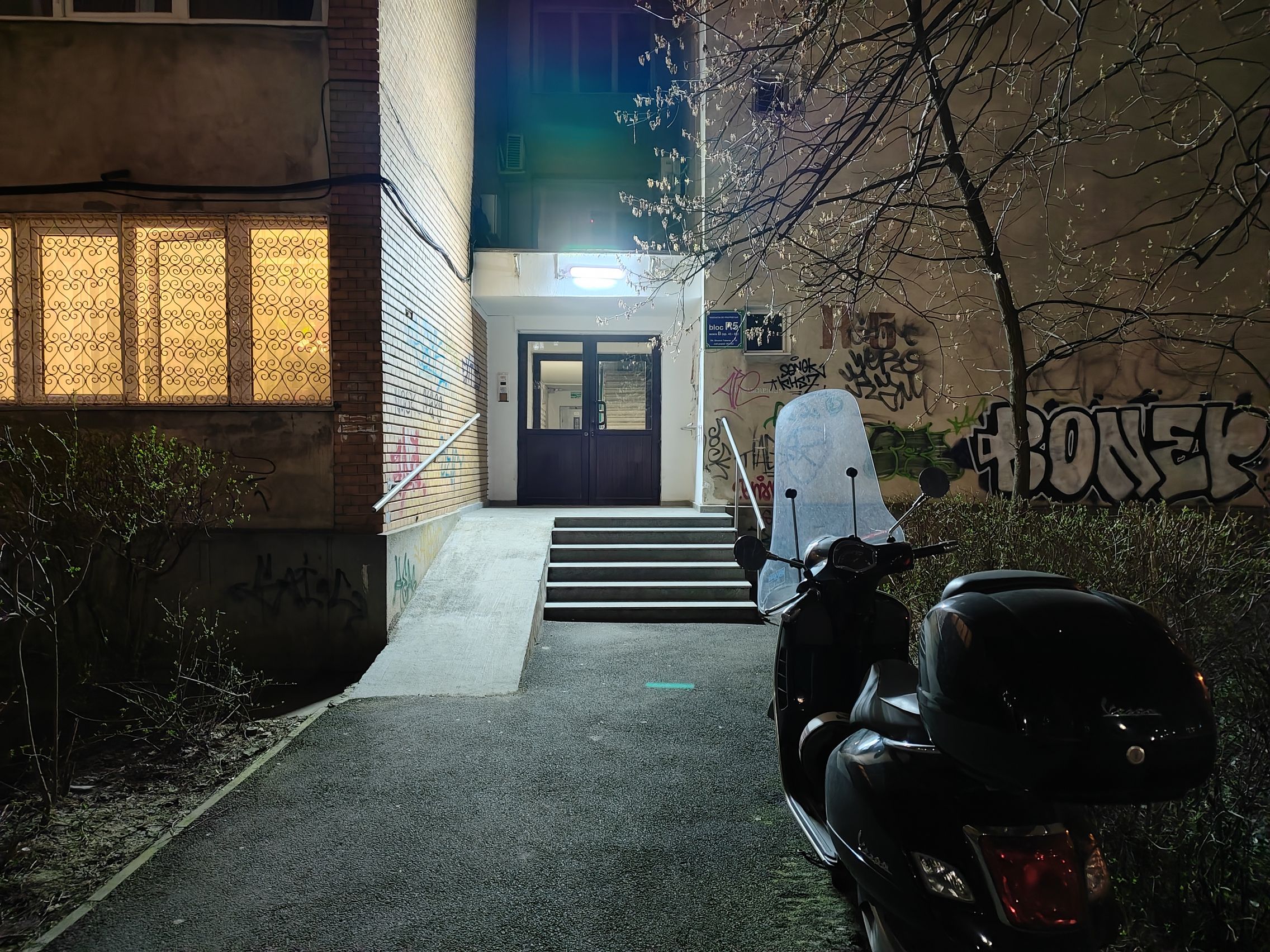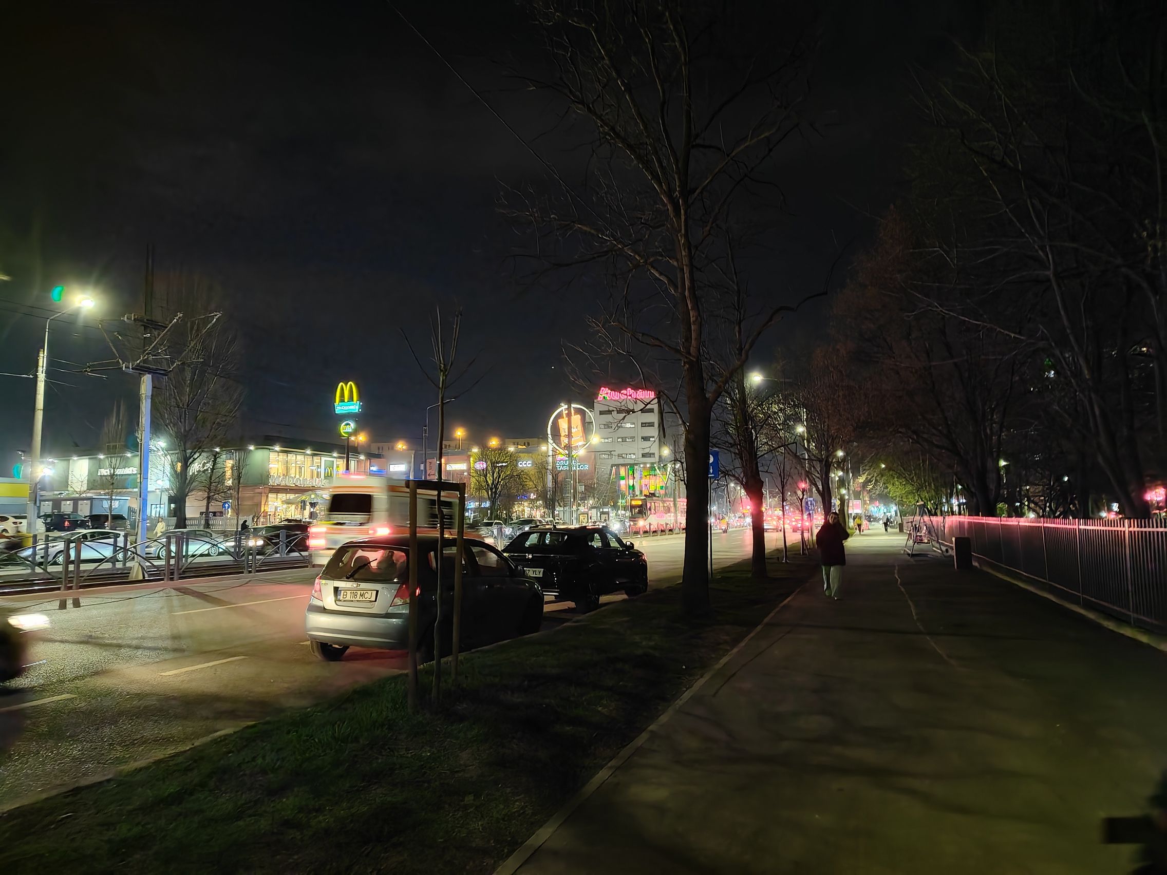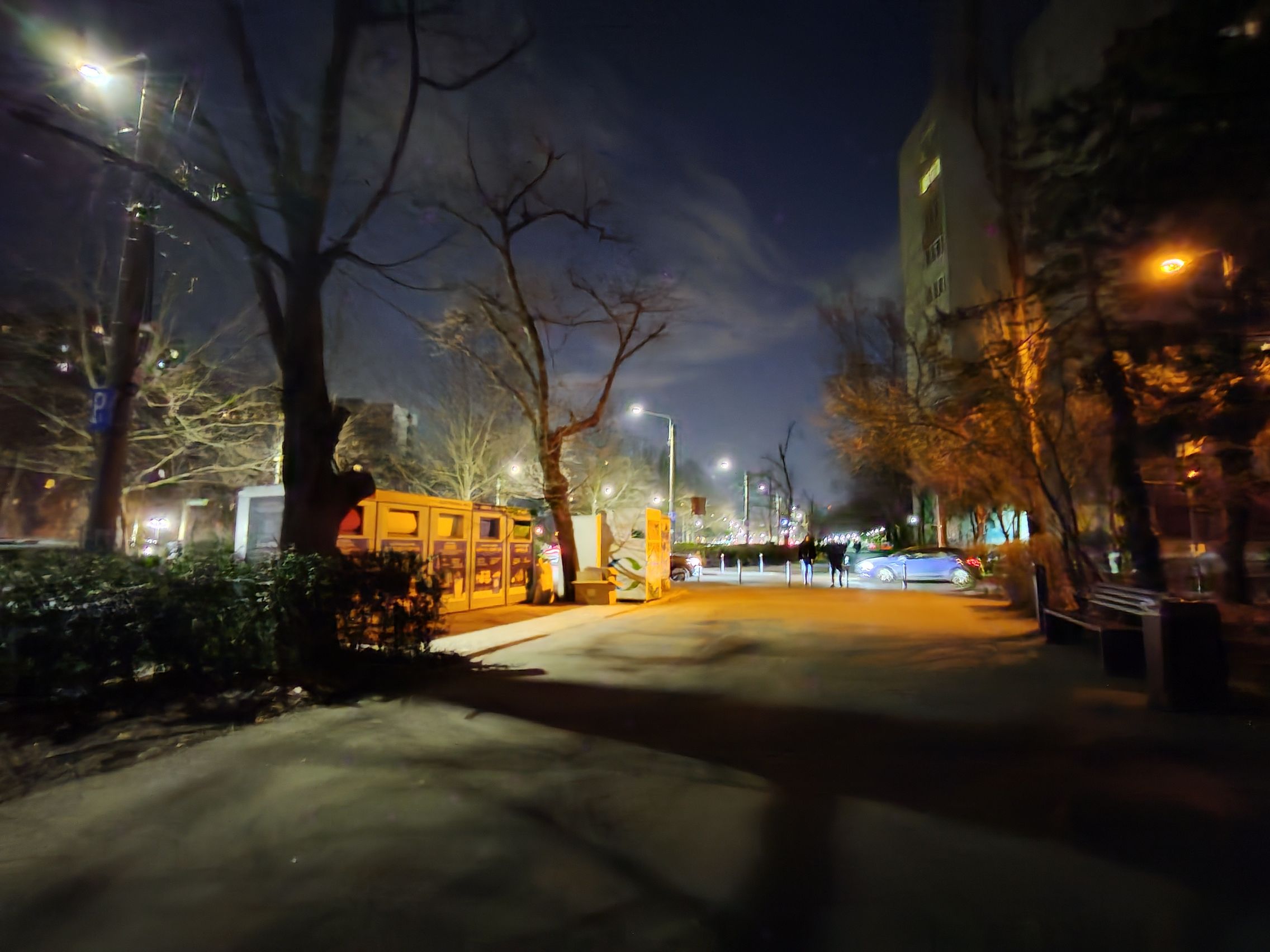Fotografiile făcute noaptea sunt decente, dar trebuie să ai răbdare și o mână stabilă până când Night Mode-ul își face treaba. Ultrawide-ul e fantomatic totuși, ca o noapte de Halloween. De selfie-uri nu prea se pune problema și mai bine renunți la idee. Sunt și halouri mari uneori, exagerate. O cameră doar bunicică de pe loc noaptea și musai să nu te grăbești.