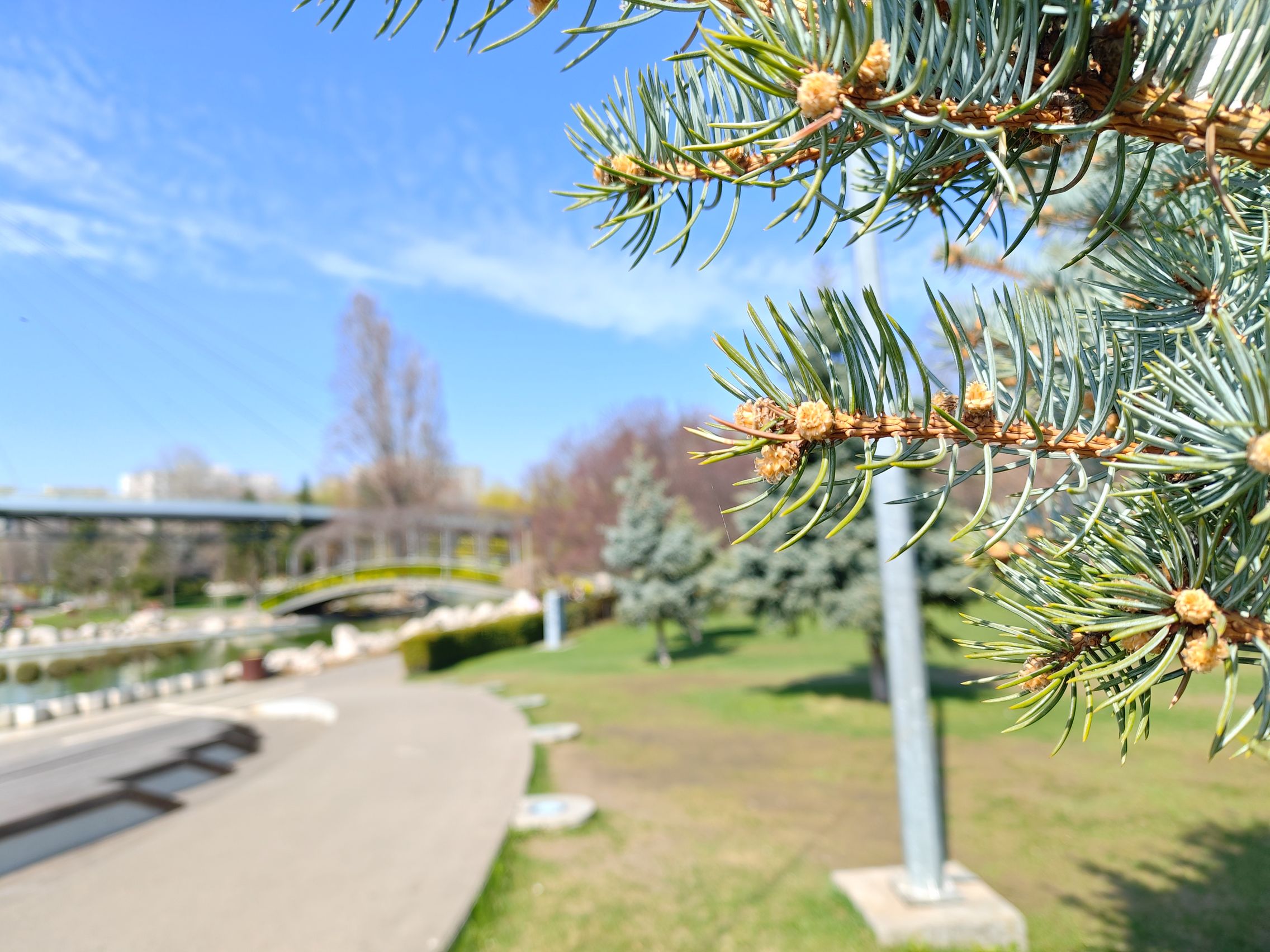 Văd acele flori galbene foarte țipătoare, iar pe ultra-wide sunt mai calme mai realiste și poate că mă înșelam când numeam mai sus aceste cadre UW drept albicioase. Îmi place cum este redat cerul, HDR-ul se mai chinuie pe alocuri, dar fotografiile generale arată bine. Bokeh-ul nu e precis, dar compensăm printr-un closeup mai de calitate.