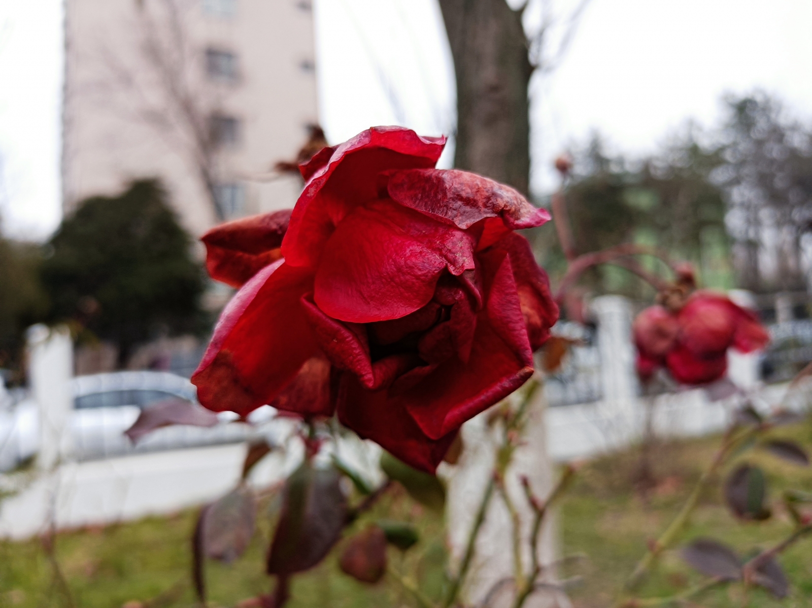 Din start am văzut ceva mai multă definiţie a culorilor aici decât la POCO M3. Pe de altă parte HDR-ul e prea zelos şi albeşte prea mult tot. În general culorile au fost temperate, mai degrabă reci, e o cameră pragmatică la acest capitol. Am fost şocat şi să prind trandafiri încă fotografiabili în februarie după o iarnă destul de rece, dar fără zăpadă prea multă totuşi.